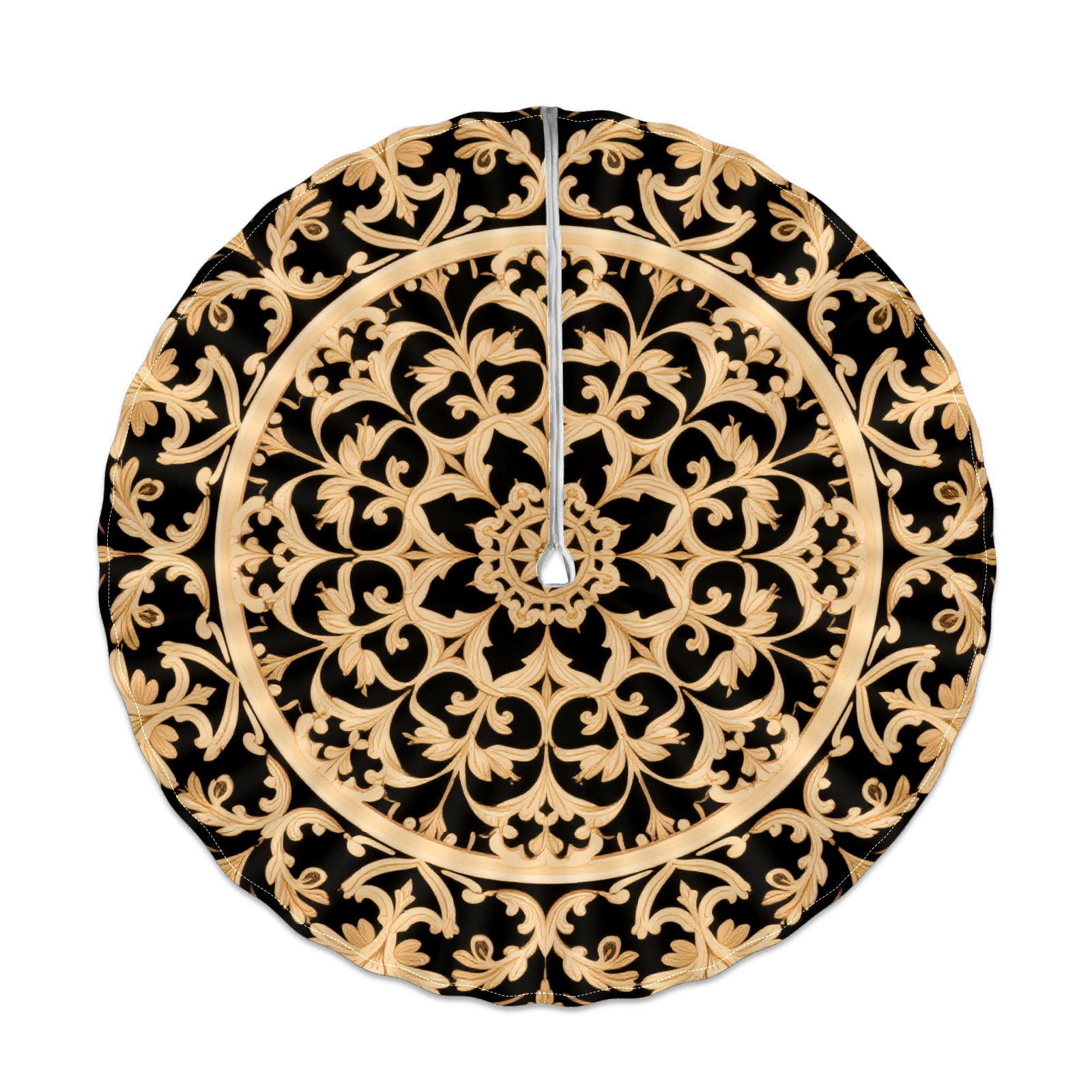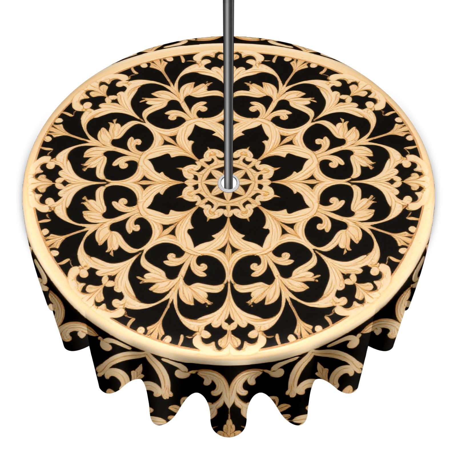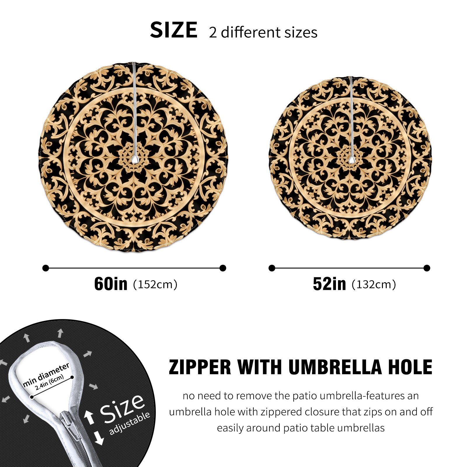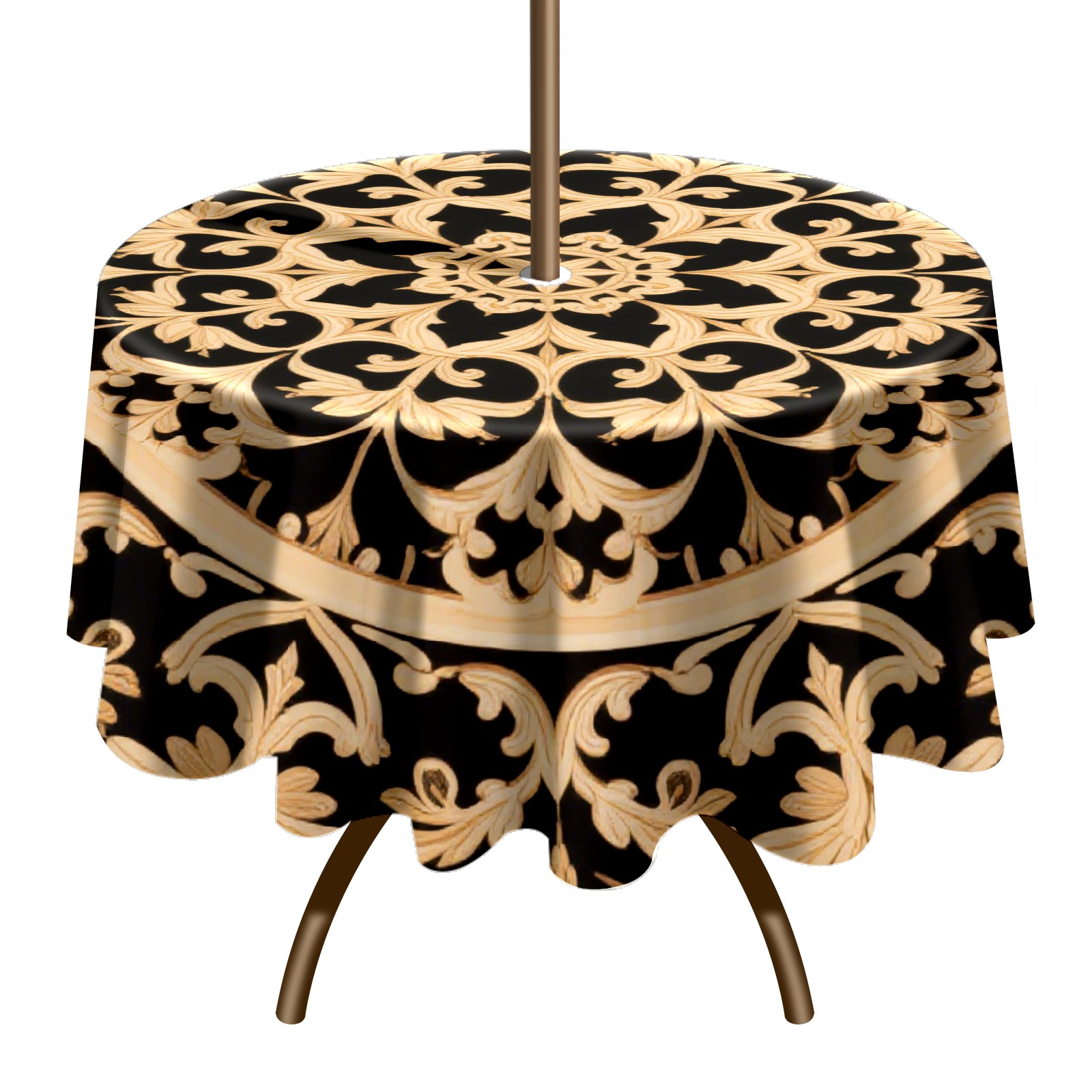 Round Tablecloth with Adjustable Zippered Hole - Durable Polyester for Patio, Restaurant & Outdoor Dining Black Gold Wing Pattern (60in)
