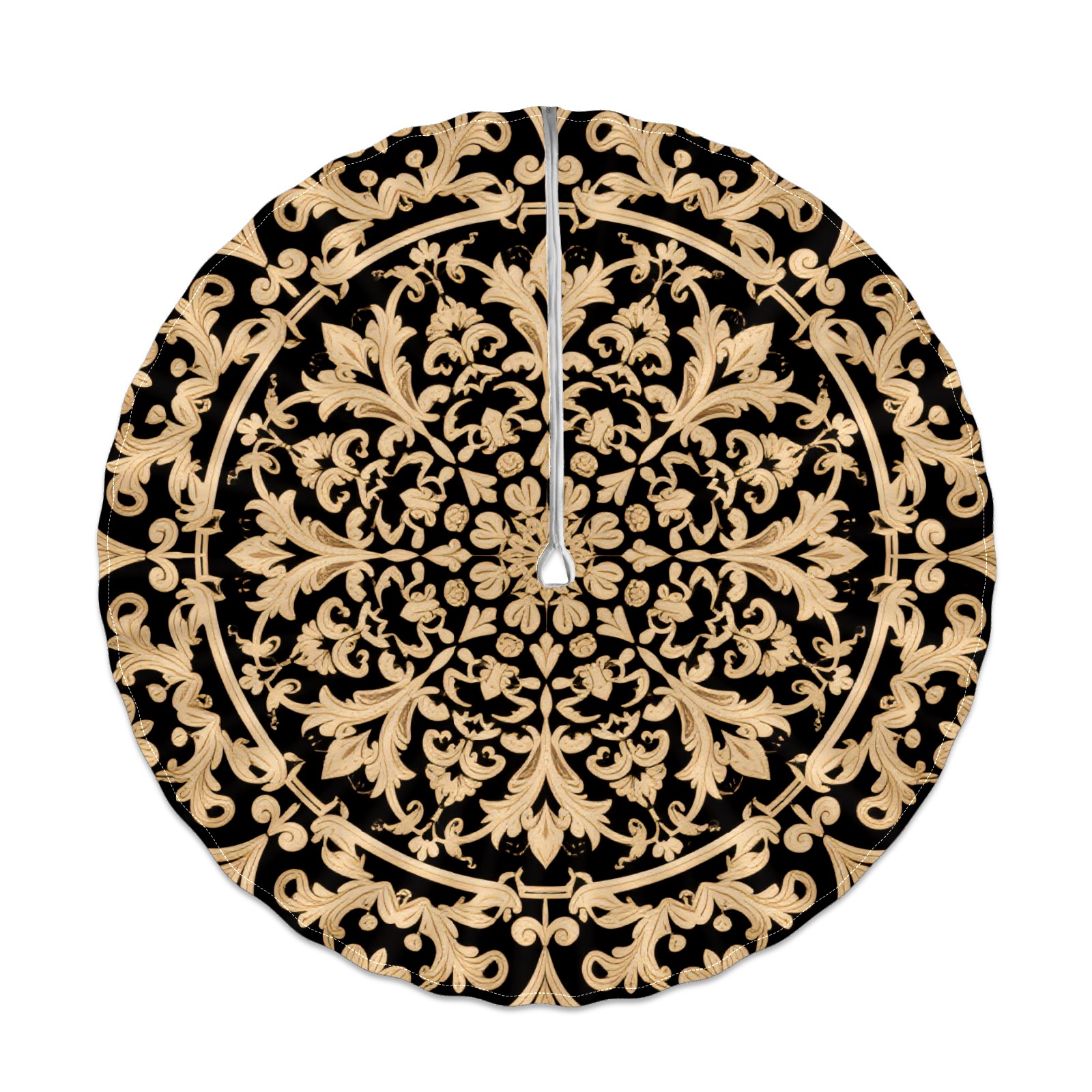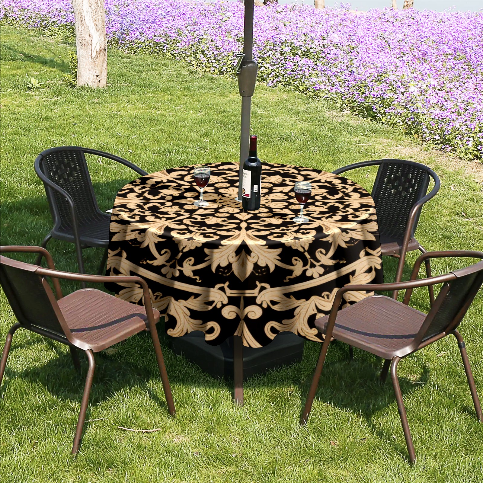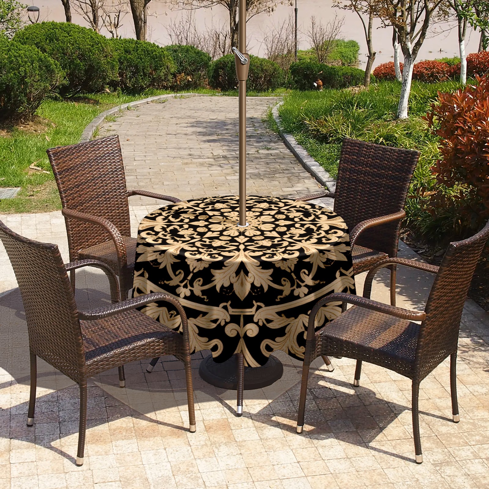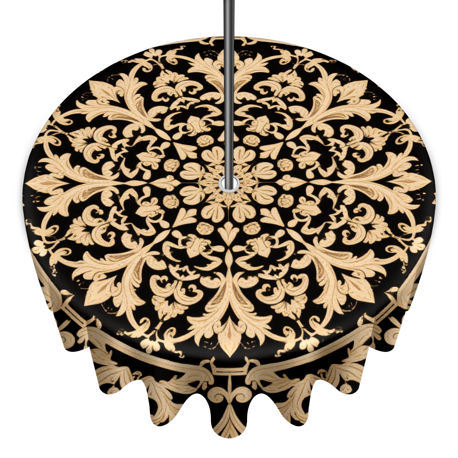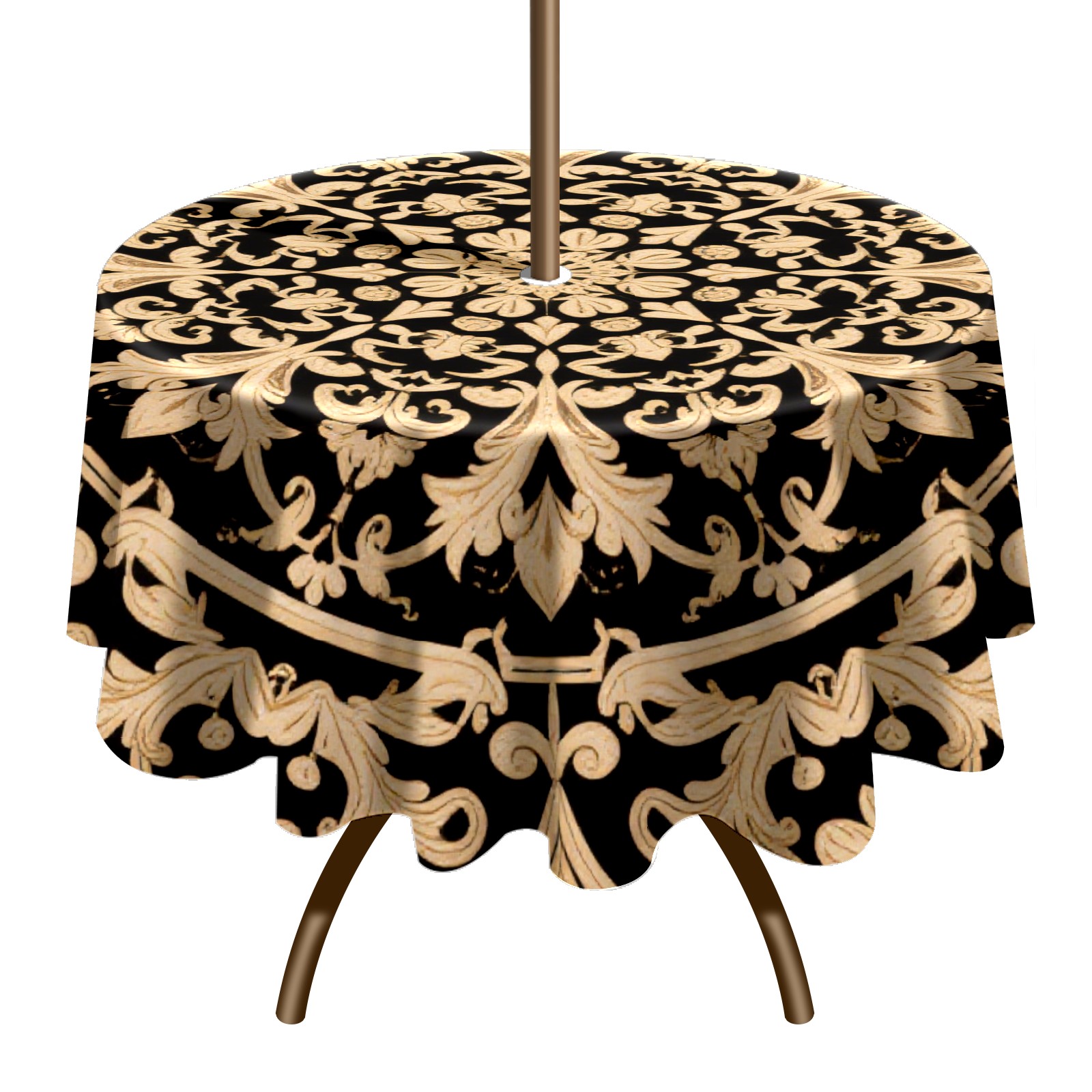 Round Tablecloth with Adjustable Zippered Hole - Durable Polyester for Patio, Restaurant & Outdoor Dining Black Gold Surround Pattern (60in)