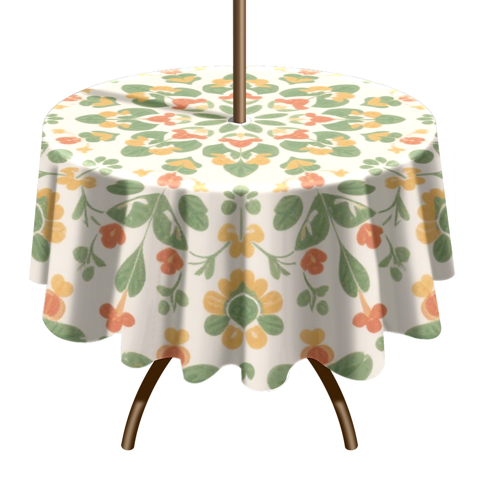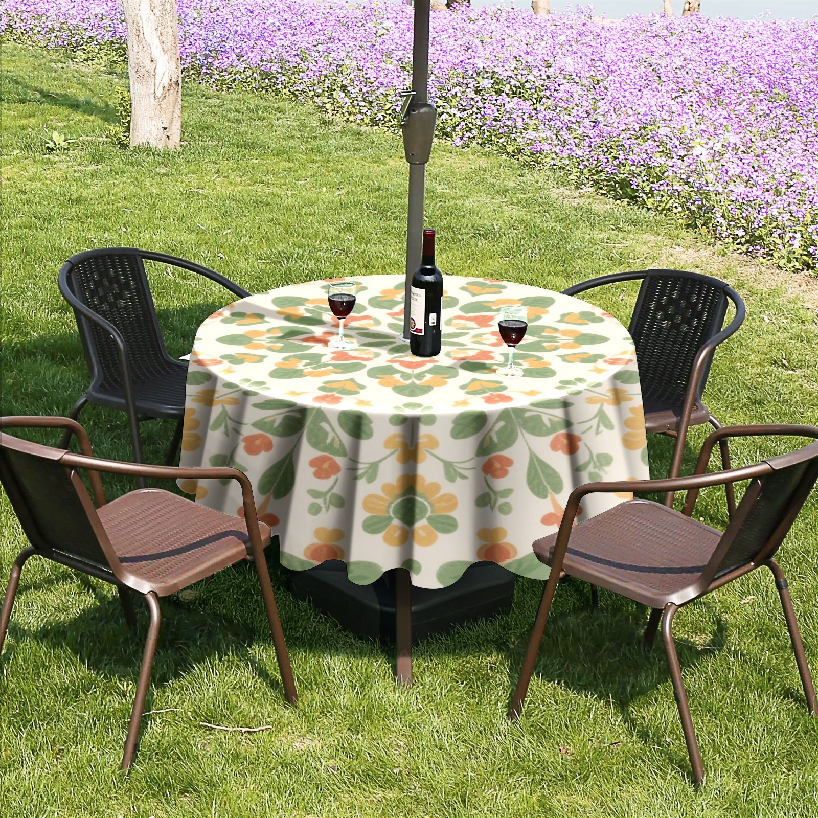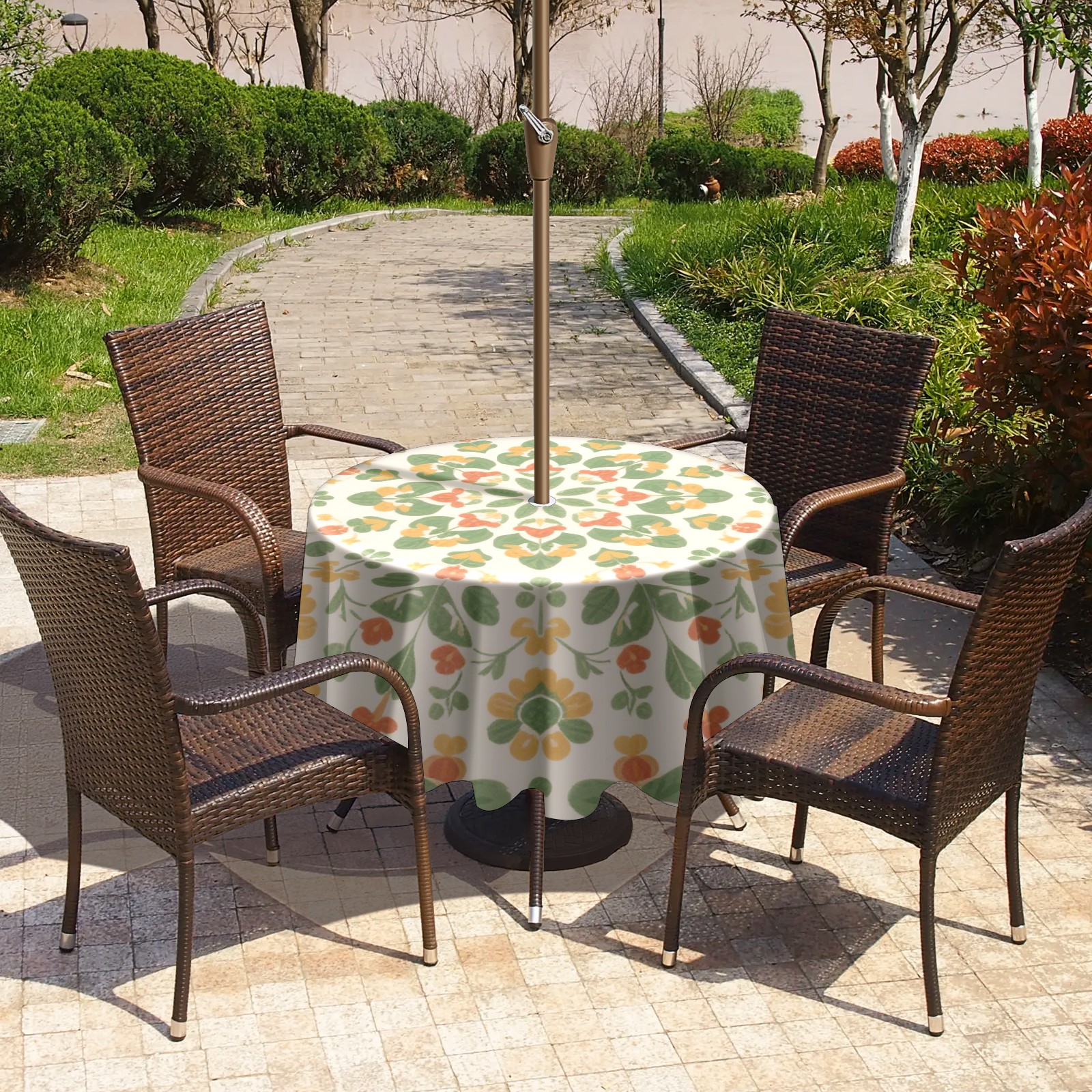• <p>Constructed with heavy-duty polyester fabric, this tablecloth withstands outdoor wear while maintaining a clean appearance. The adjustable zipper hole accommodates umbrella poles of varying thickness, allowing installation without disassembling the umbrella stand.</p> <p>Ideal for backyard BBQs or cafe patios, this tablecloth elevates table presentation instantly. Available in two classic sizes, the precision circular cut ensures full table coverage. </p> <p>Machine washable in cold water without color fading or shape distortion. The lightweight fabric folds compactly for space-efficient storage between uses.</p>