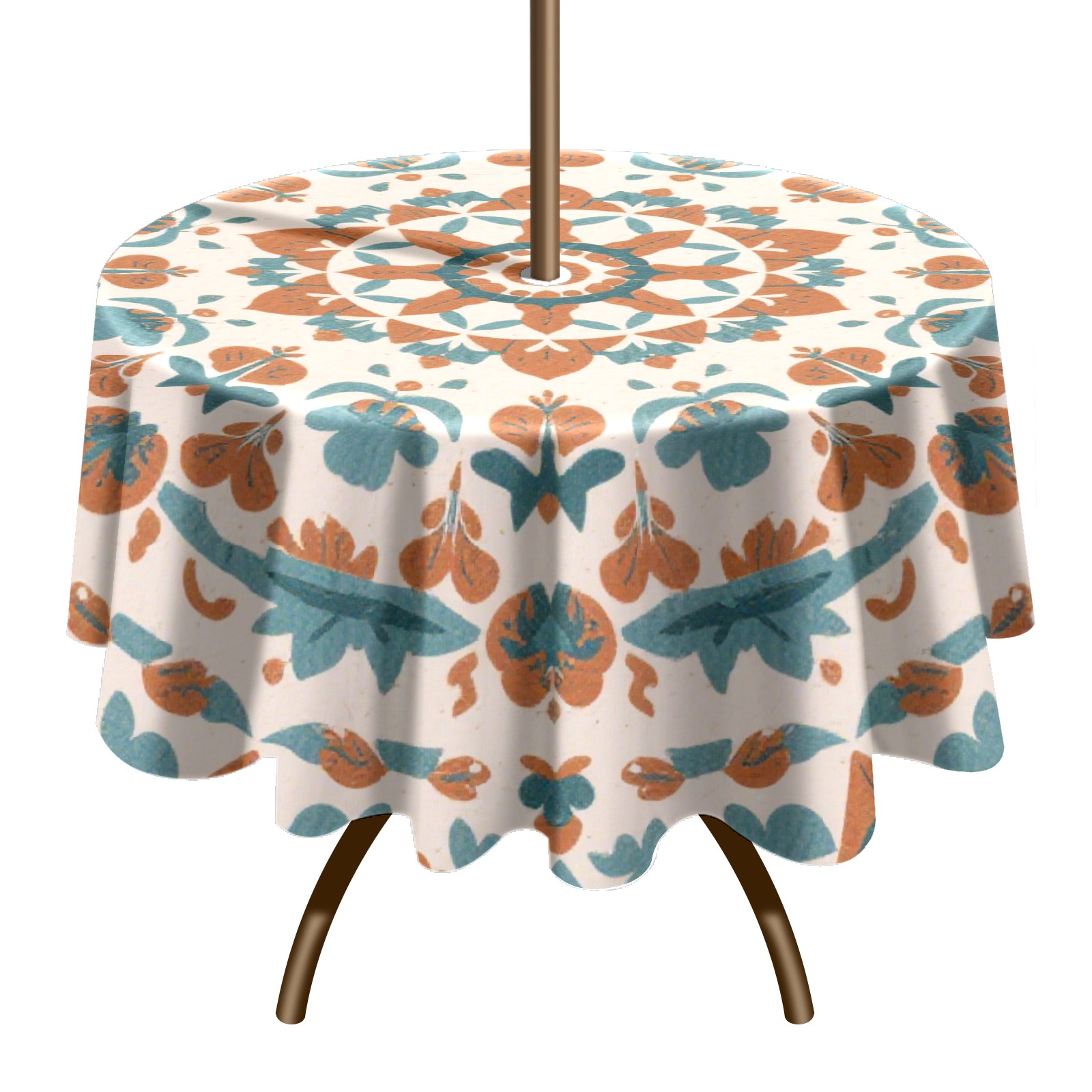 • <p>Constructed with heavy-duty polyester fabric, this tablecloth withstands outdoor wear while maintaining a clean appearance. The adjustable zipper hole accommodates umbrella poles of varying thickness, allowing installation without disassembling the umbrella stand.</p> <p>Ideal for backyard BBQs or cafe patios, this tablecloth elevates table presentation instantly. Available in two classic sizes, the precision circular cut ensures full table coverage. </p> <p>Machine washable in cold water without color fading or shape distortion. The lightweight fabric folds compactly for space-efficient storage between uses.</p>