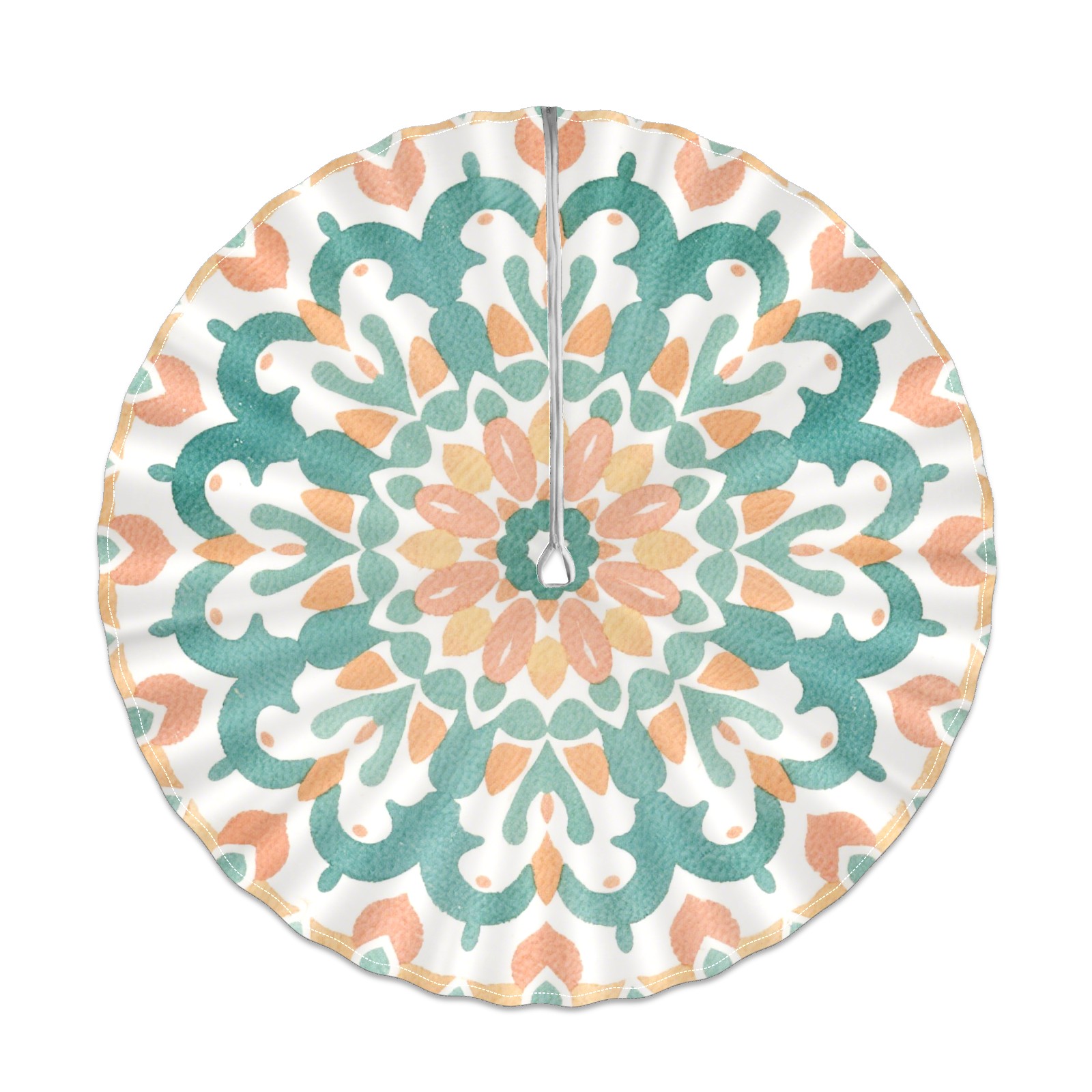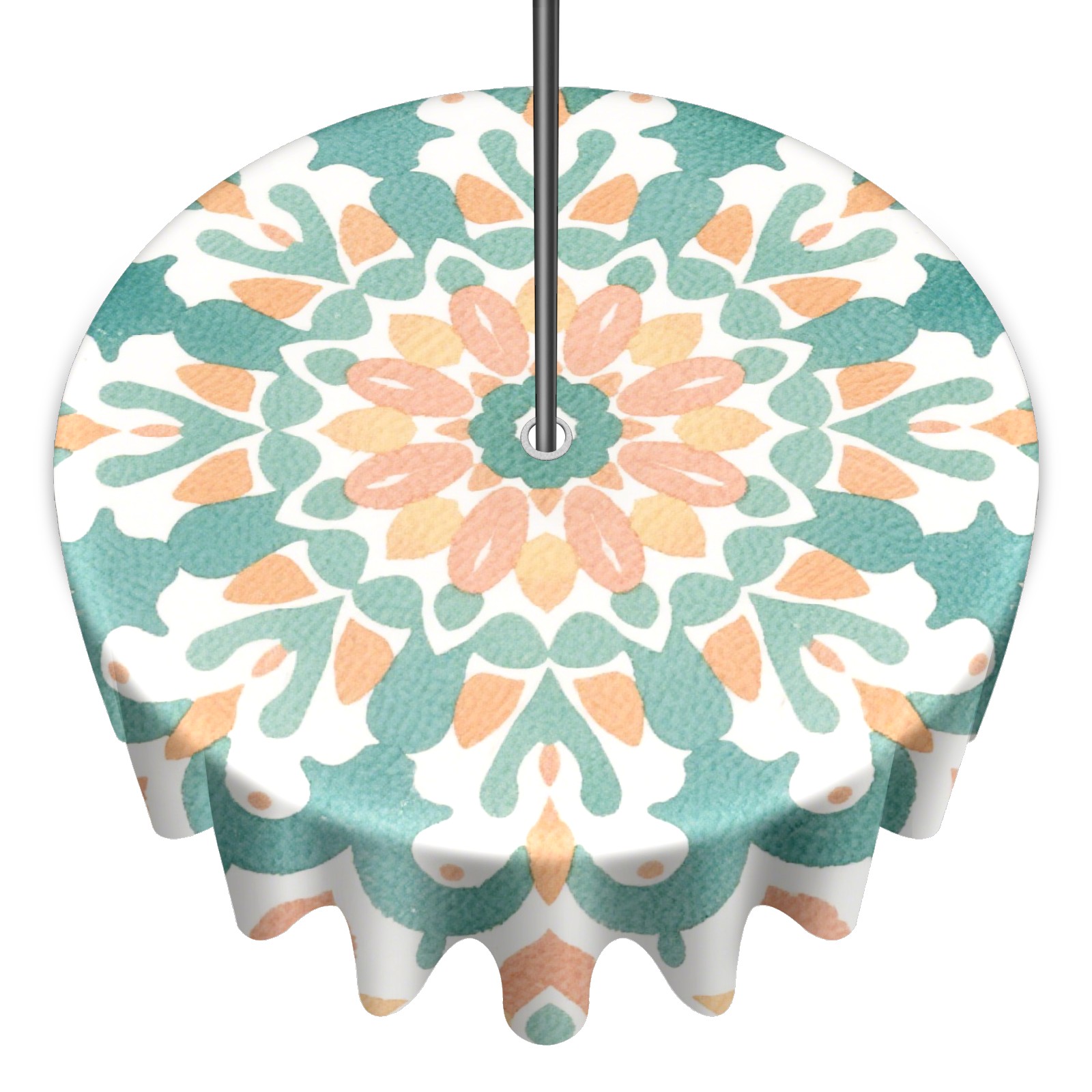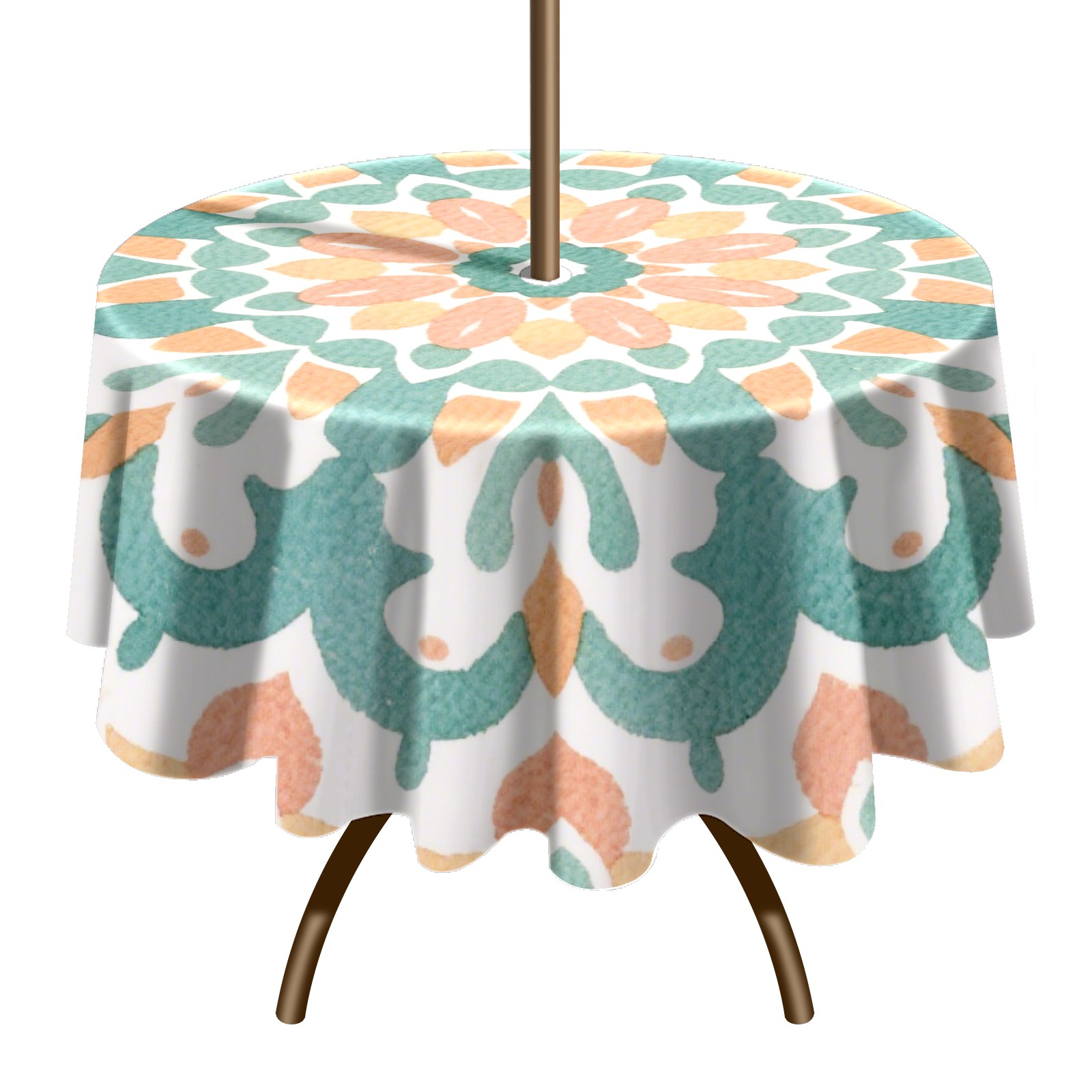 Round Tablecloth with Adjustable Zippered Hole - Durable Polyester for Patio, Restaurant & Outdoor Dining Green Watercolor Pattern (60in)