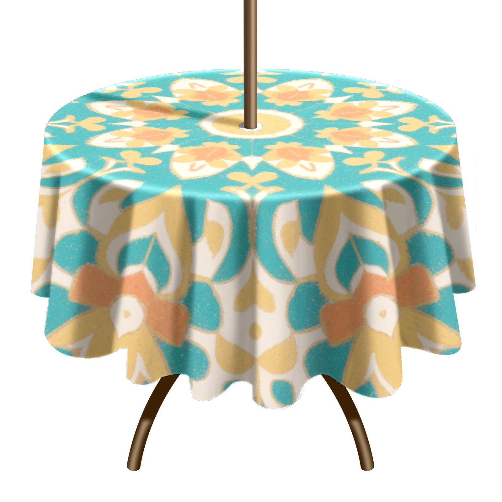 Round Tablecloth with Adjustable Zippered Hole - Durable Polyester for Patio, Restaurant & Outdoor Dining Blue And Yellow Fresh Patterns (60in)