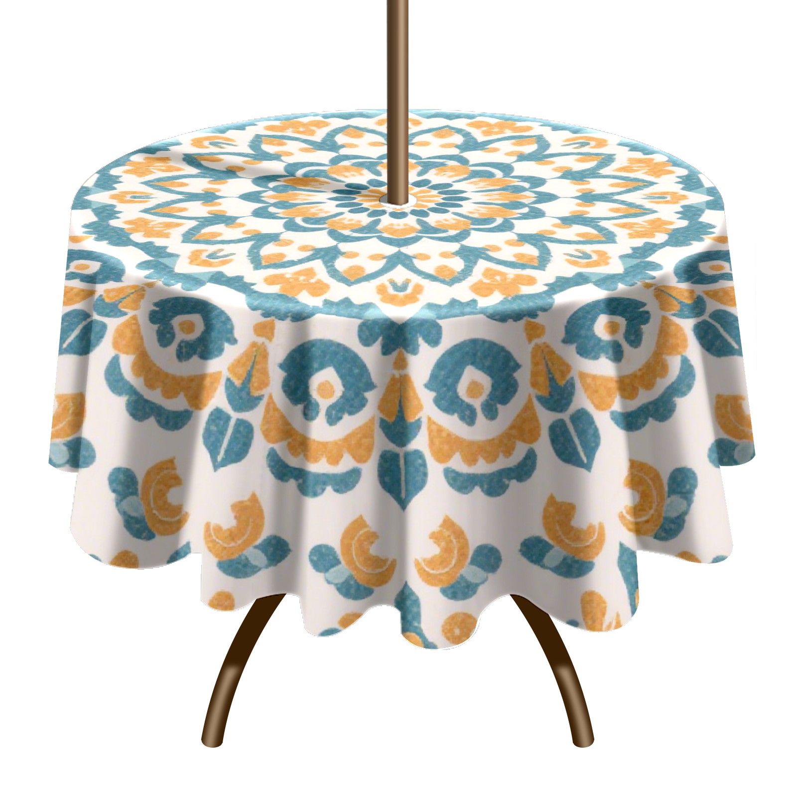 Round Tablecloth with Adjustable Zippered Hole - Durable Polyester for Patio, Restaurant & Outdoor Dining Circular Yellow Flower Pattern (60in)