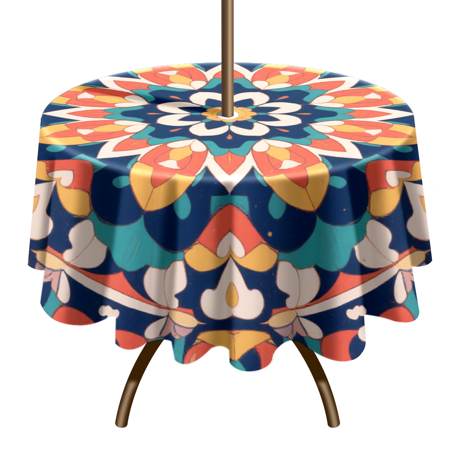 • <p>Constructed with heavy-duty polyester fabric, this tablecloth withstands outdoor wear while maintaining a clean appearance. The adjustable zipper hole accommodates umbrella poles of varying thickness, allowing installation without disassembling the umbrella stand.</p> <p>Ideal for backyard BBQs or cafe patios, this tablecloth elevates table presentation instantly. Available in two classic sizes, the precision circular cut ensures full table coverage. </p> <p>Machine washable in cold water without color fading or shape distortion. The lightweight fabric folds compactly for space-efficient storage between uses.</p>
