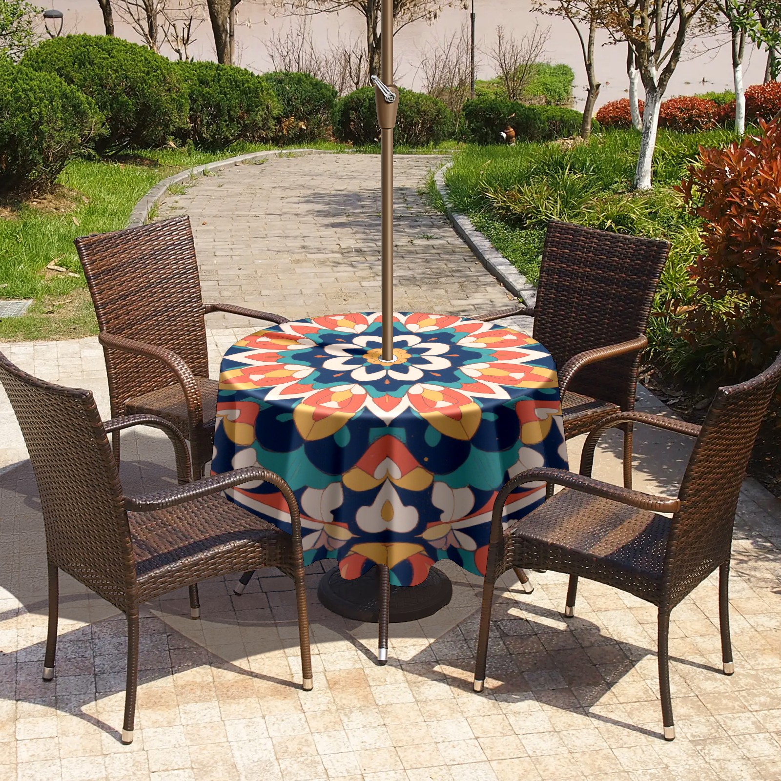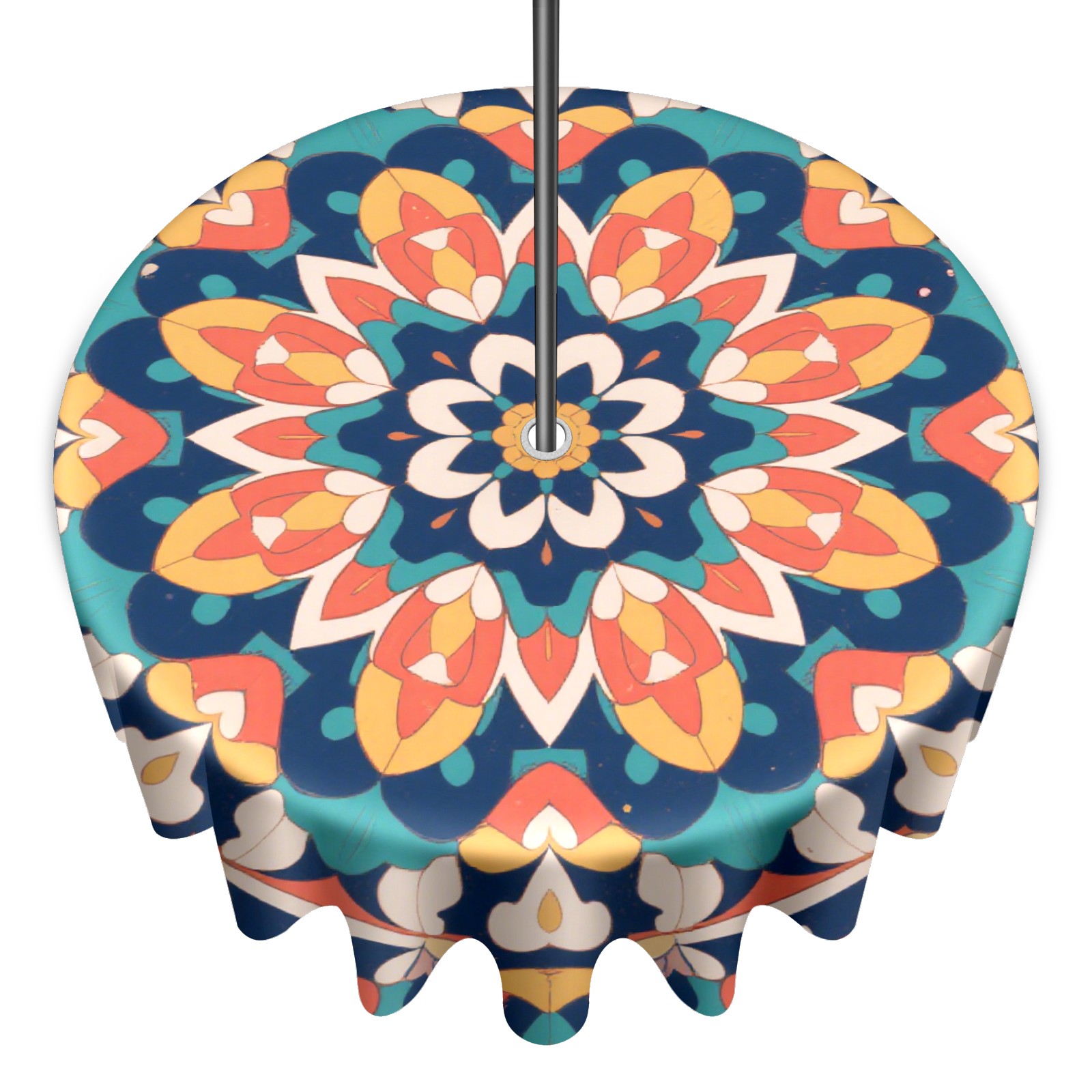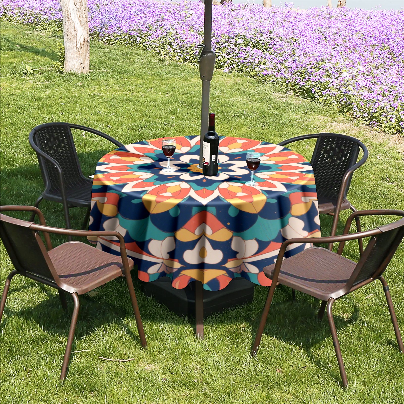 Round Tablecloth with Adjustable Zippered Hole - Durable Polyester for Patio, Restaurant & Outdoor Dining Orange Yellow Regular Pattern (60in)