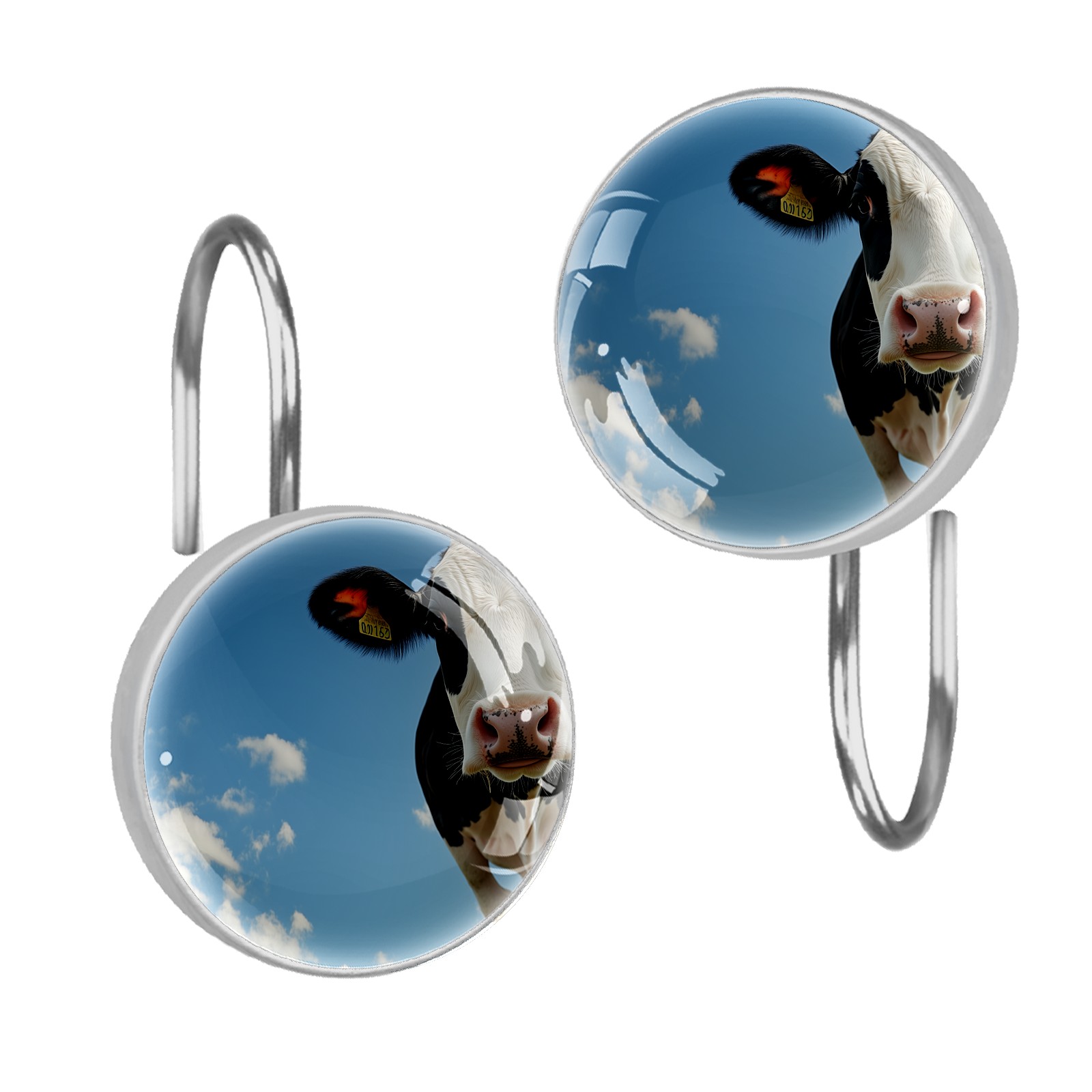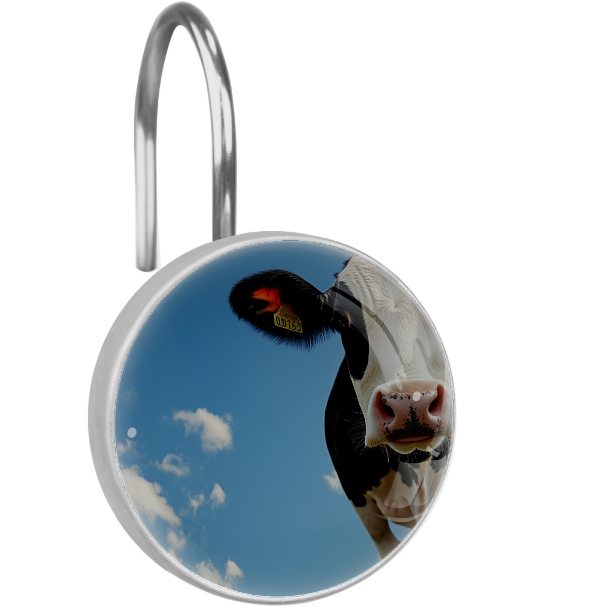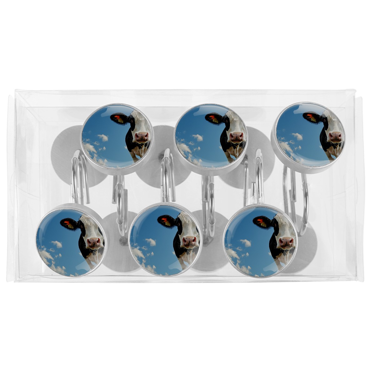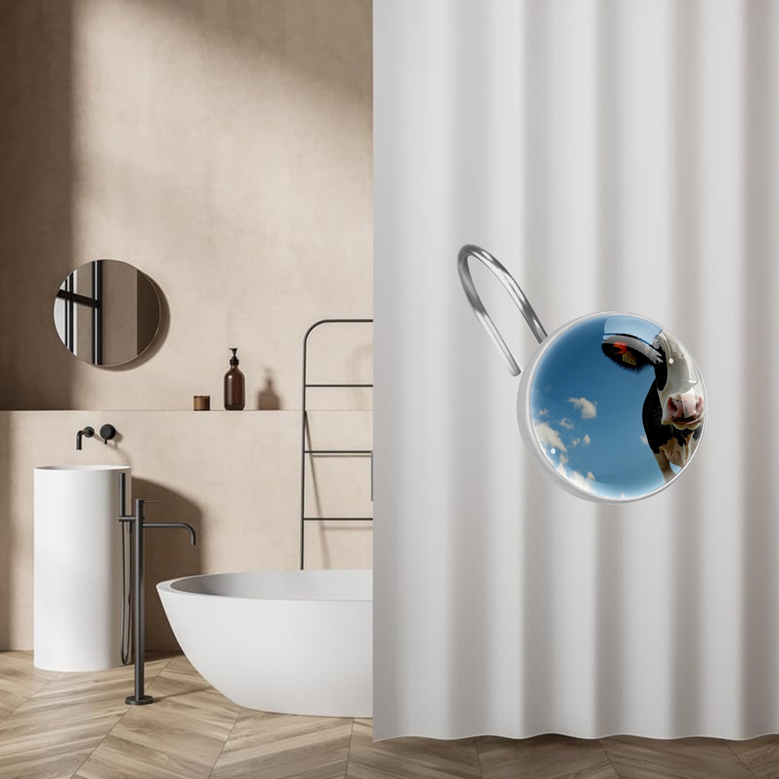 Decorative Black White Cow Shower Curtain Hooks 12pcs Crystal Glass Rustproof Shower Hooks for Bathroom Home Decor Stainless Steel Resin Shower Curtain Rings