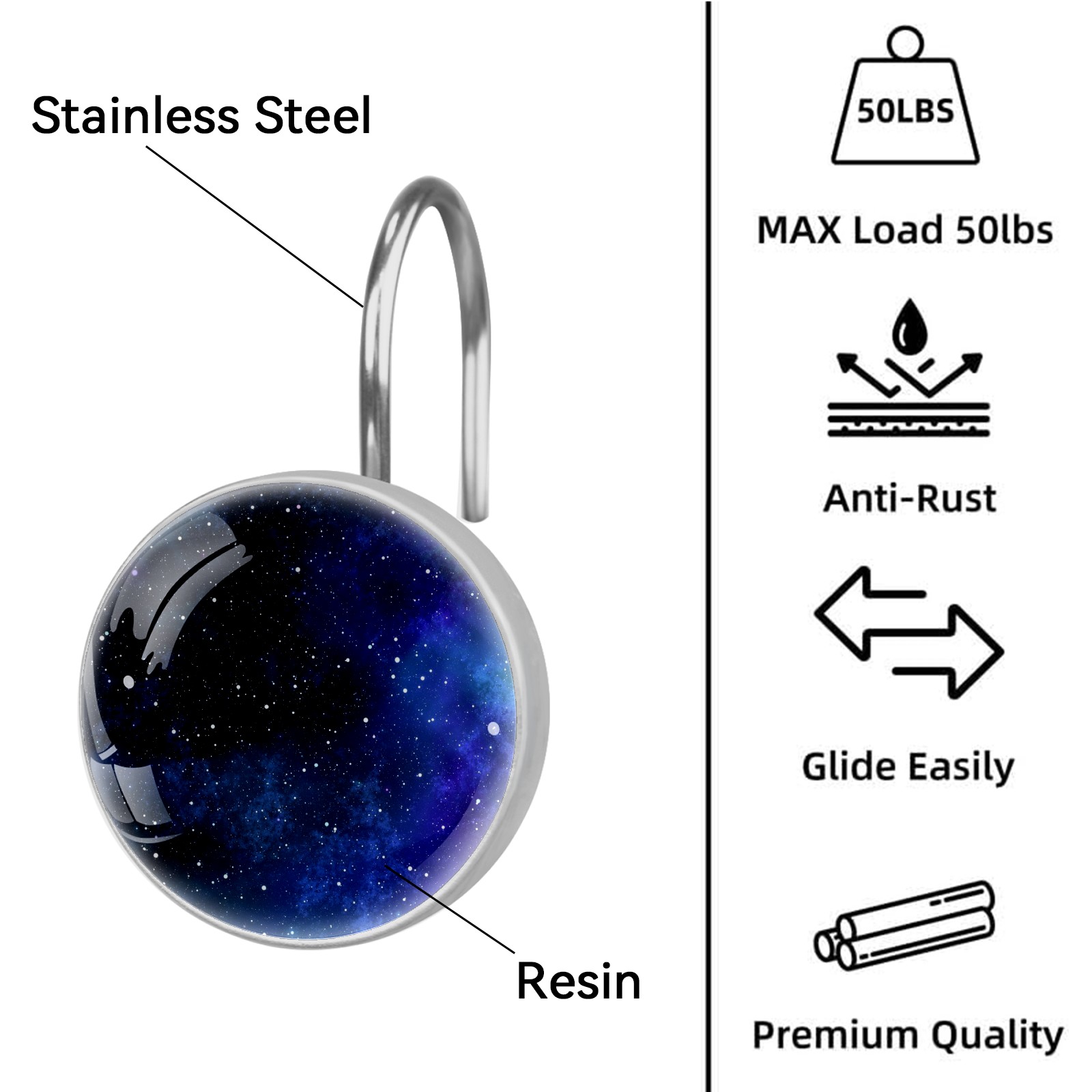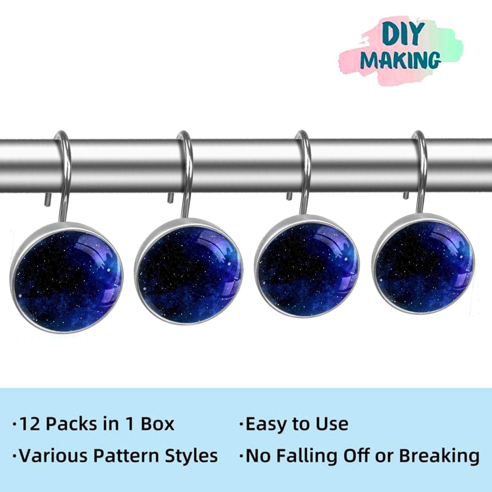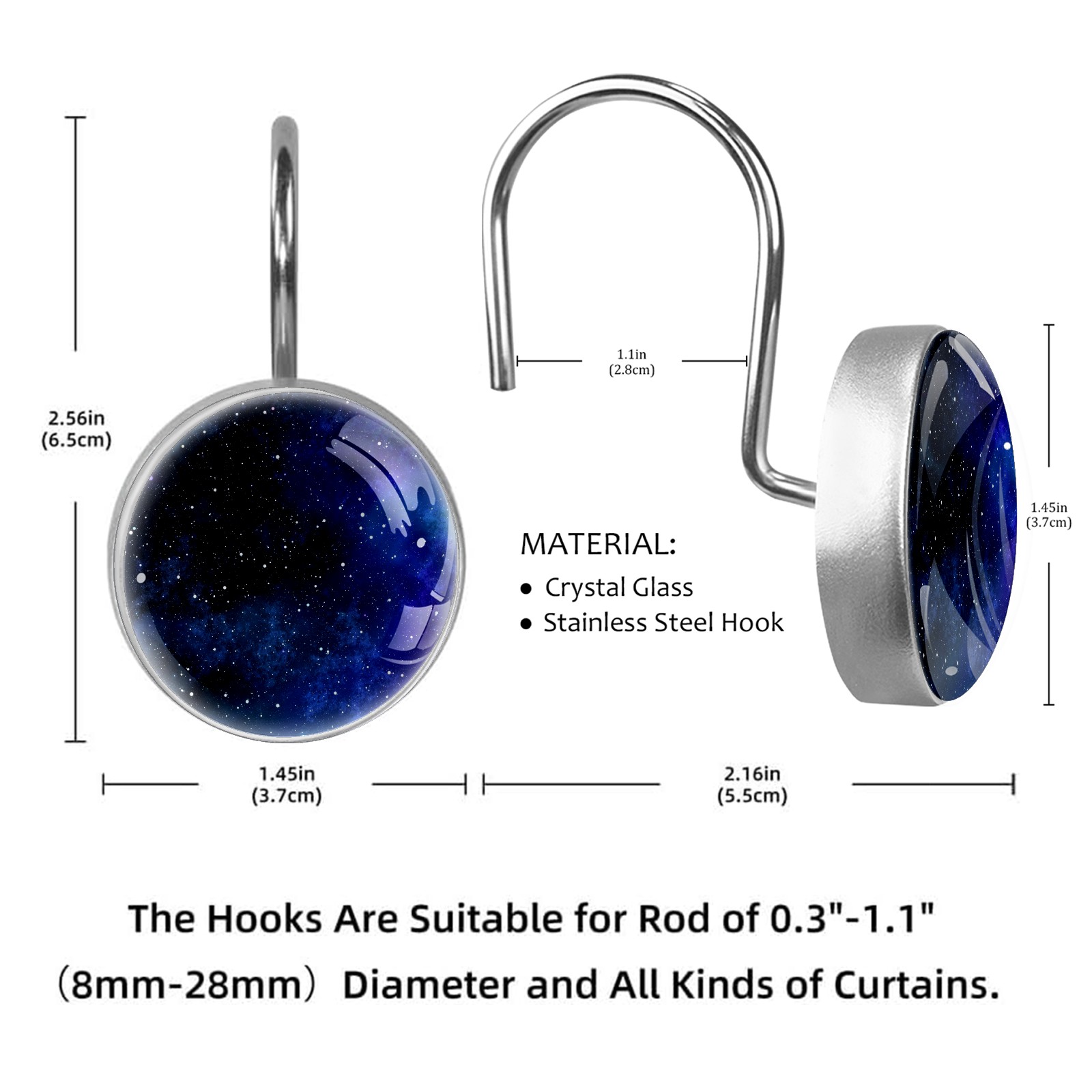 Decorative Purple Blue Night Stars Sky Universe Shower Curtain Hooks 12pcs Crystal Glass Rustproof Shower Hooks for Bathroom Home Decor Stainless Steel Resin Shower Curtain Rings