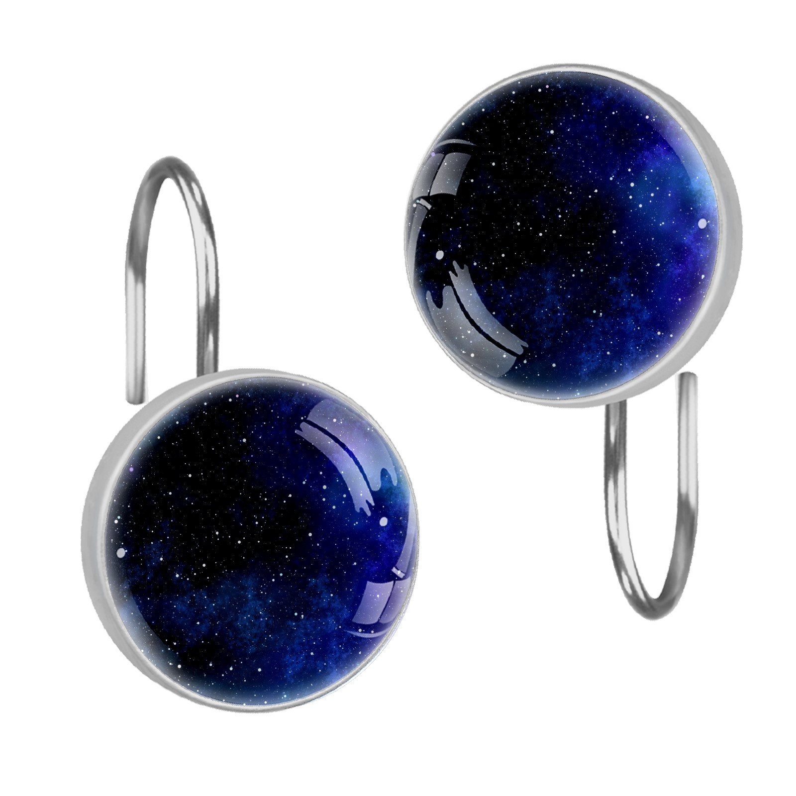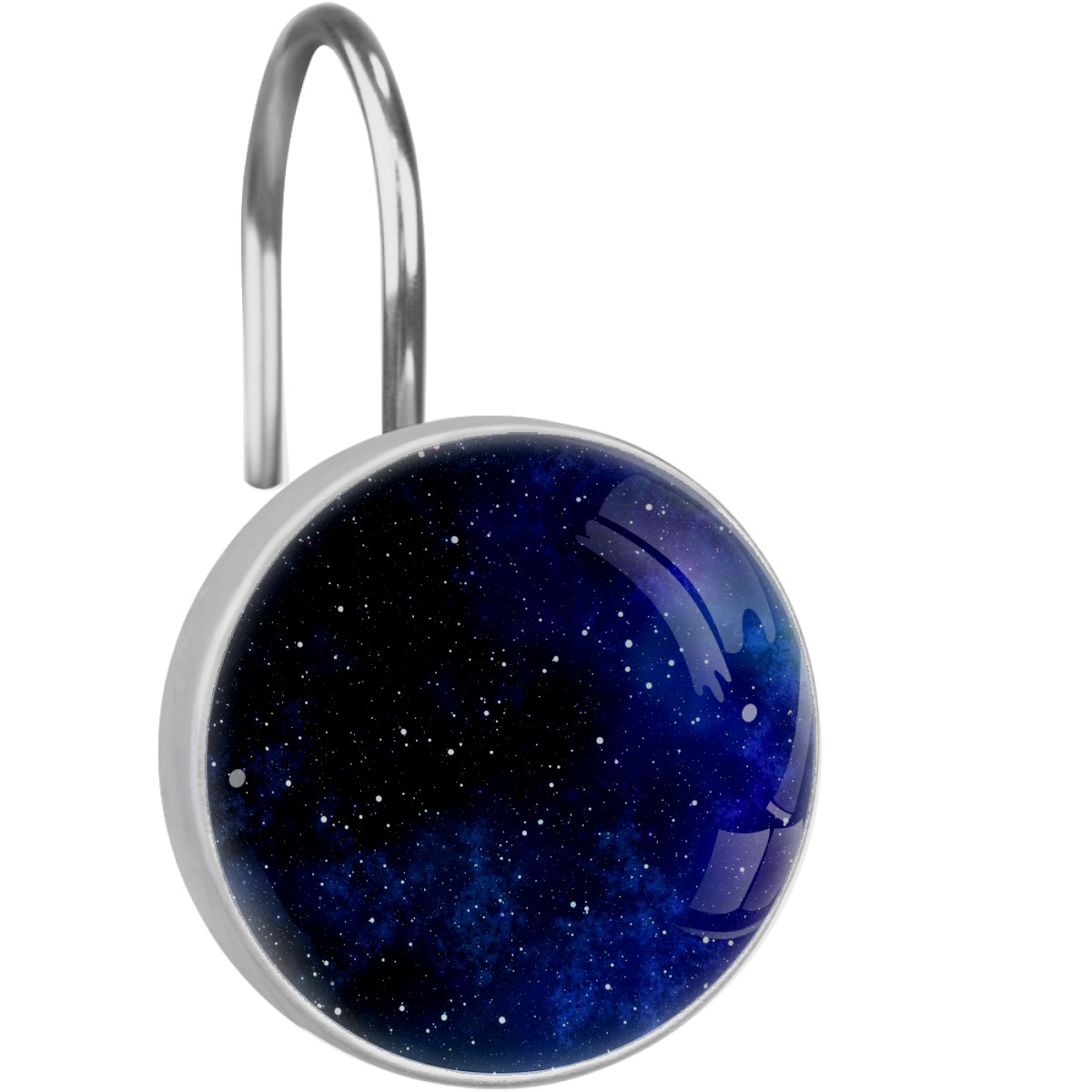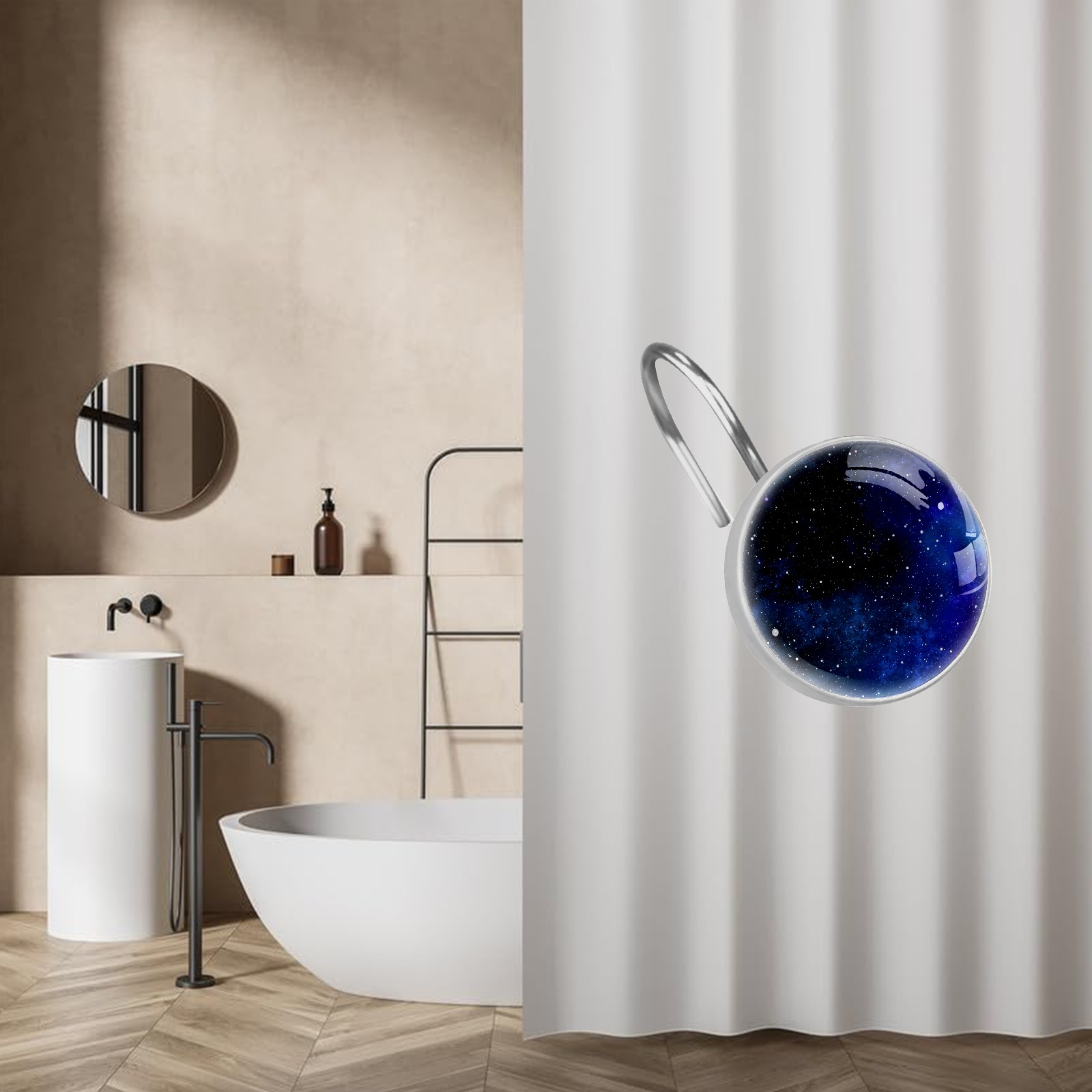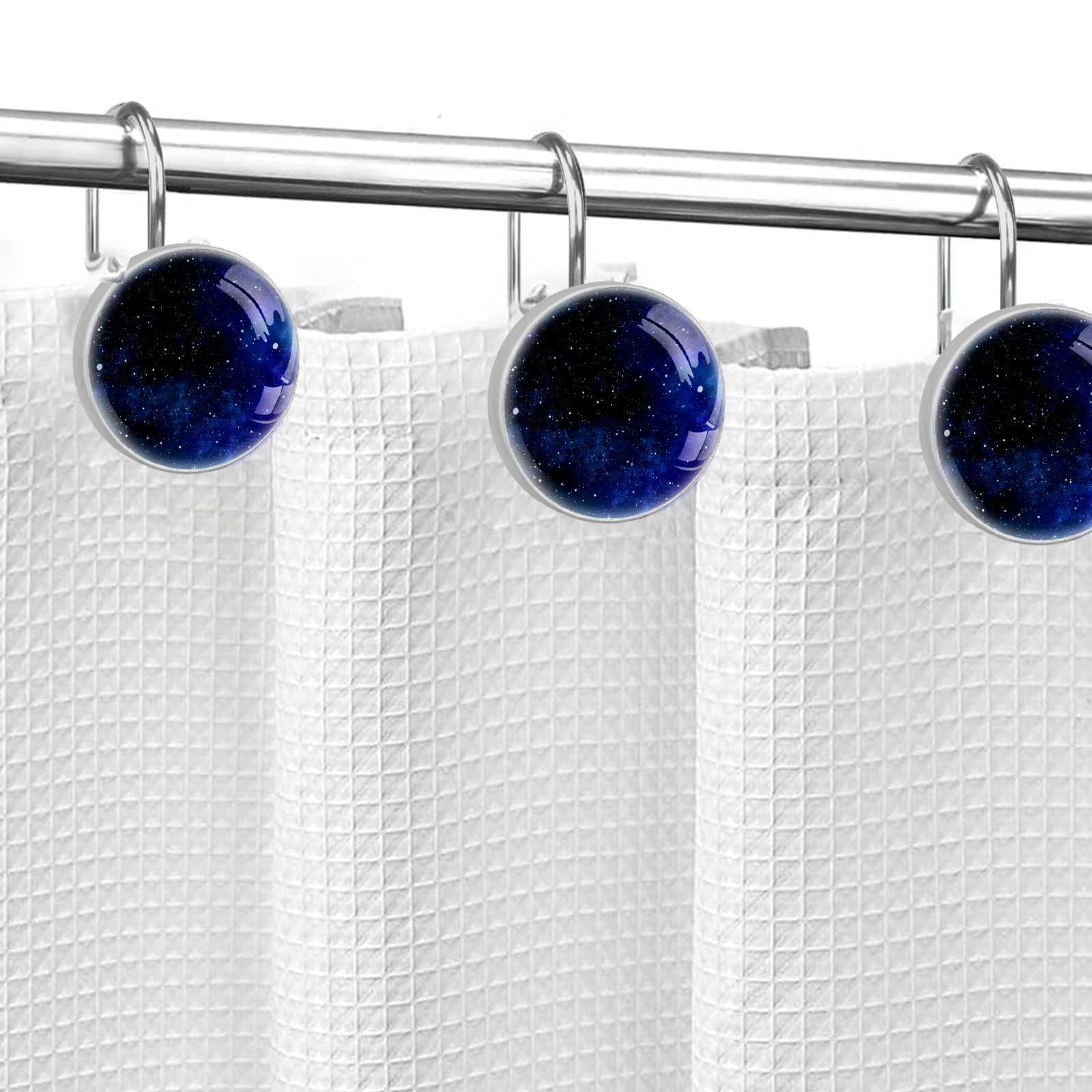 Decorative Purple Blue Night Stars Sky Universe Shower Curtain Hooks 12pcs Crystal Glass Rustproof Shower Hooks for Bathroom Home Decor Stainless Steel Resin Shower Curtain Rings