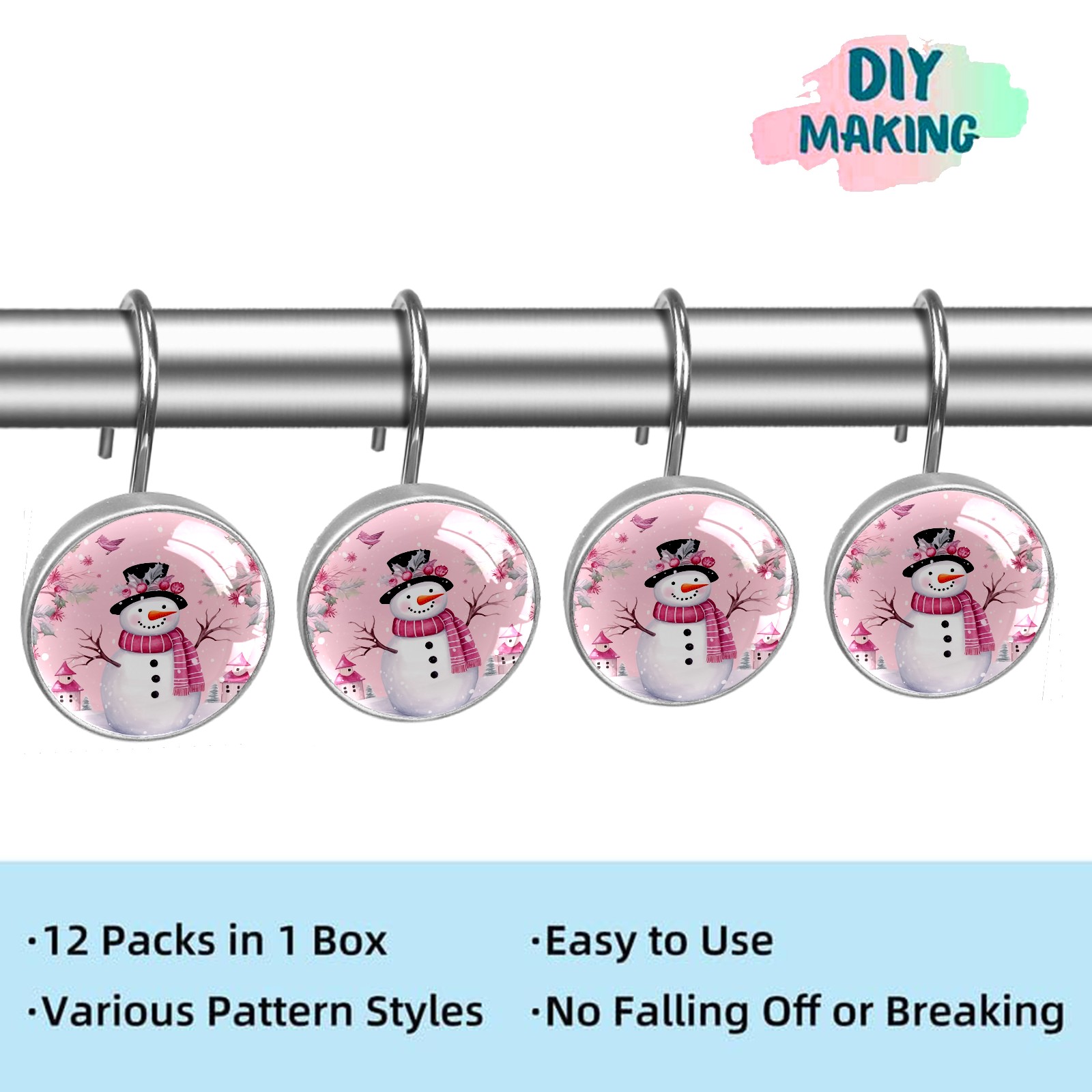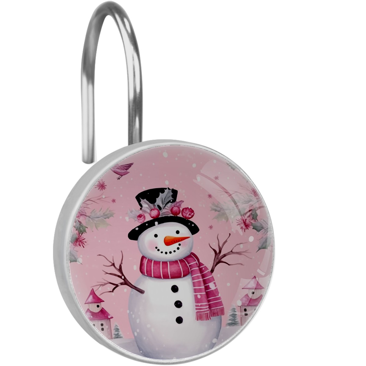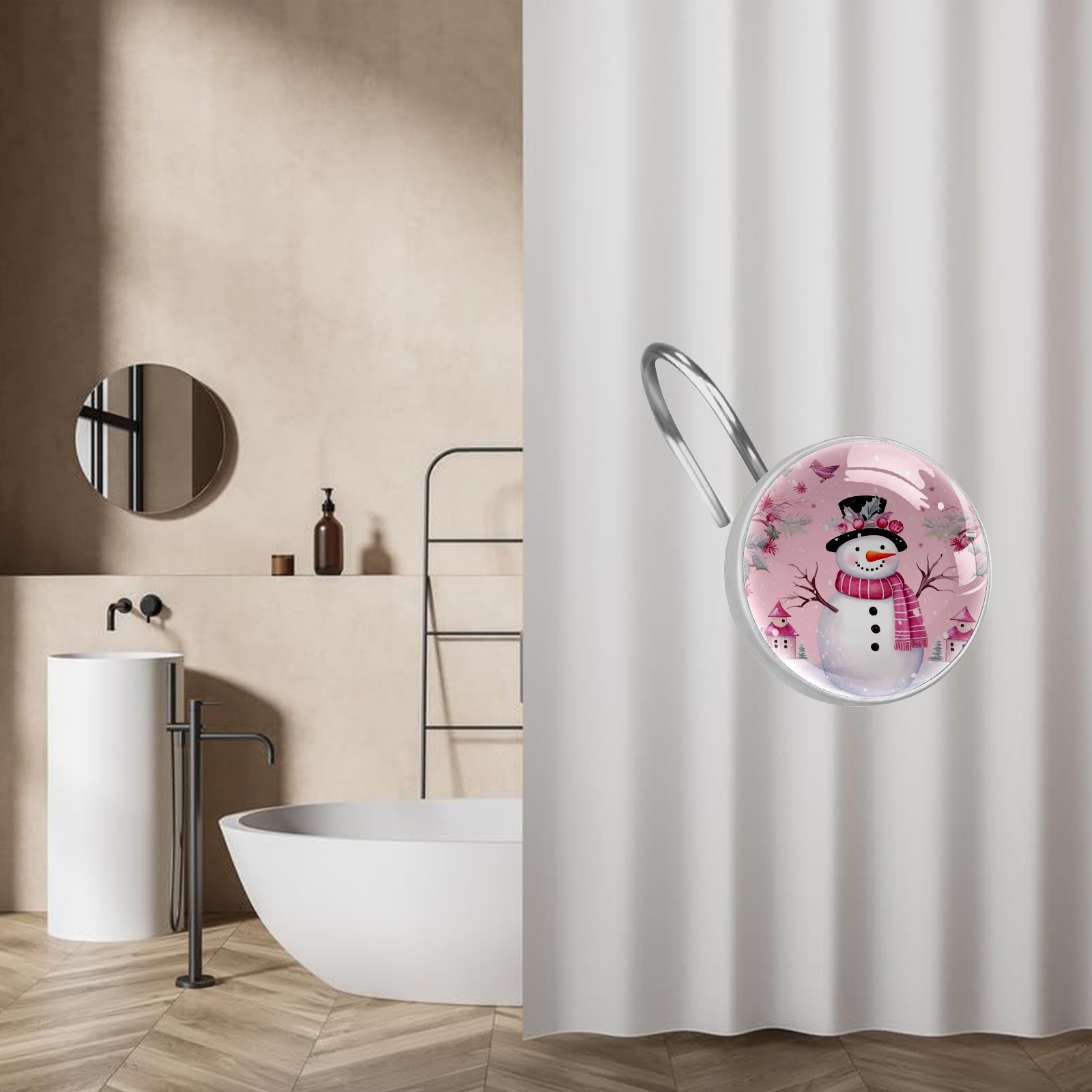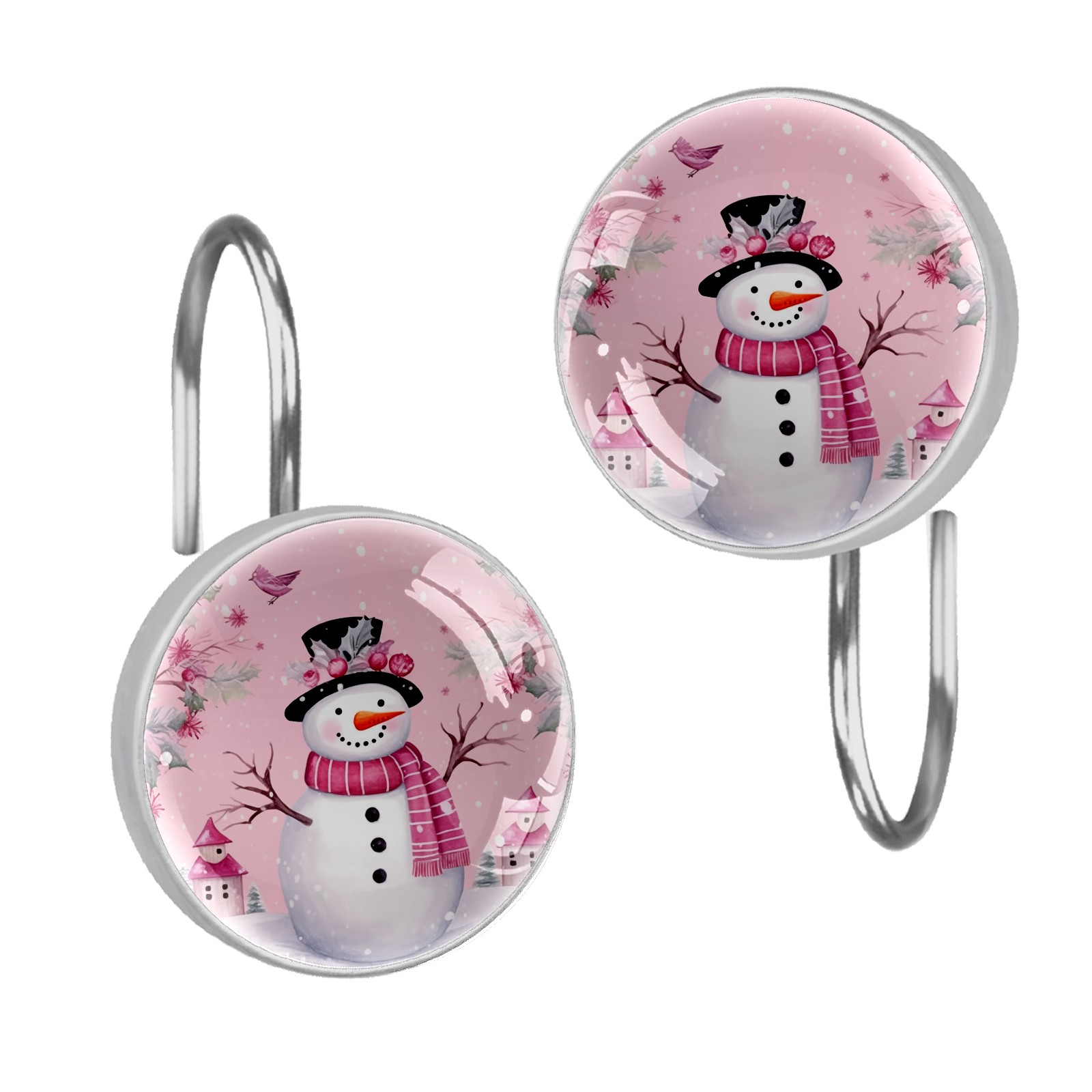Decorative Christmas Snowman Pink (2) Shower Curtain Hooks 12pcs Crystal Glass Rustproof Shower Hooks for Bathroom Home Decor Stainless Steel Resin Shower Curtain Rings