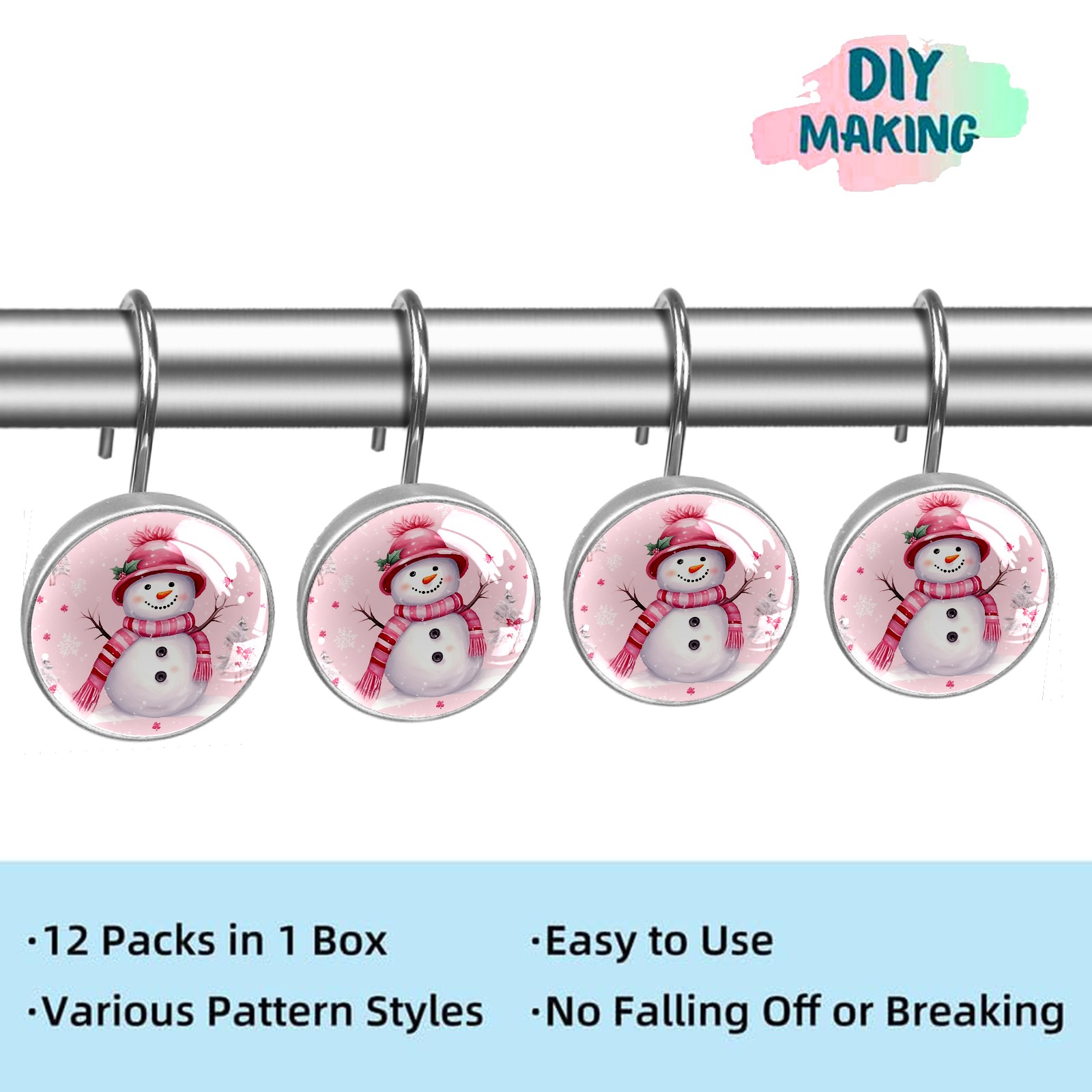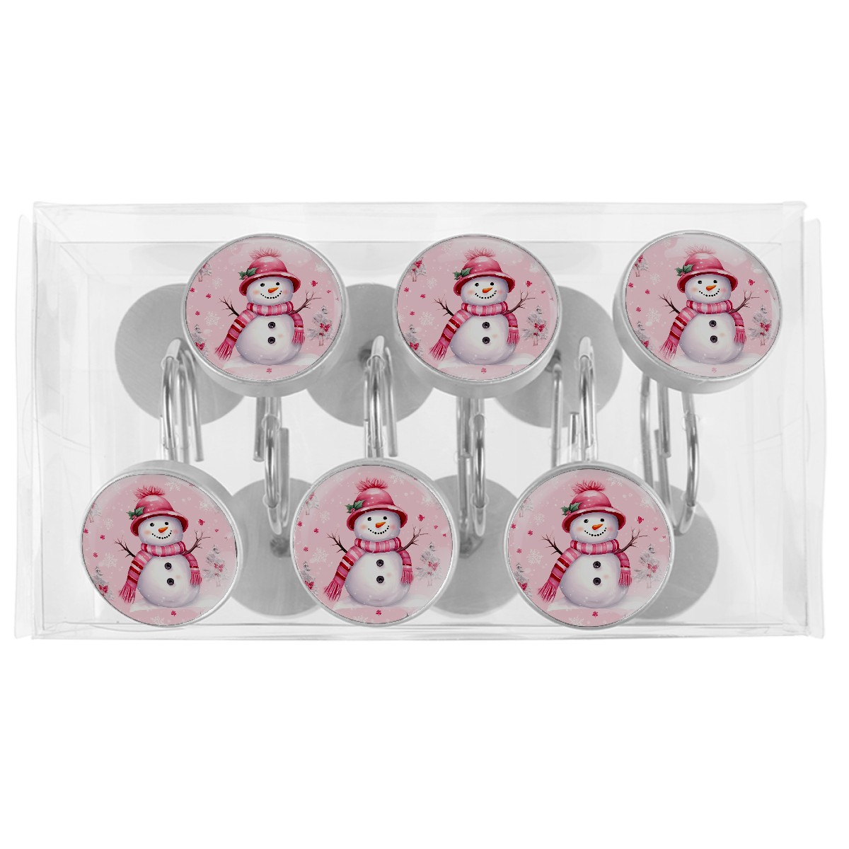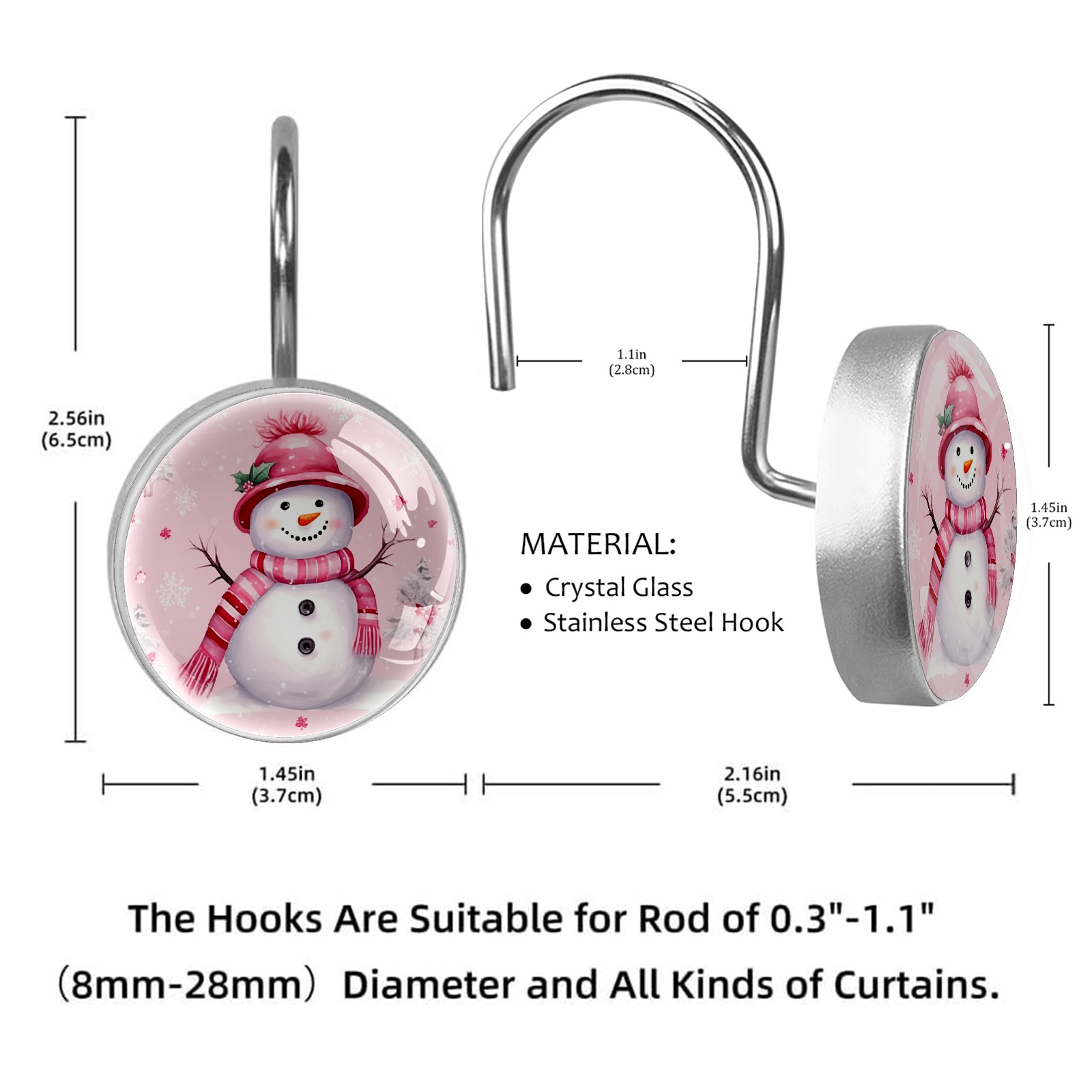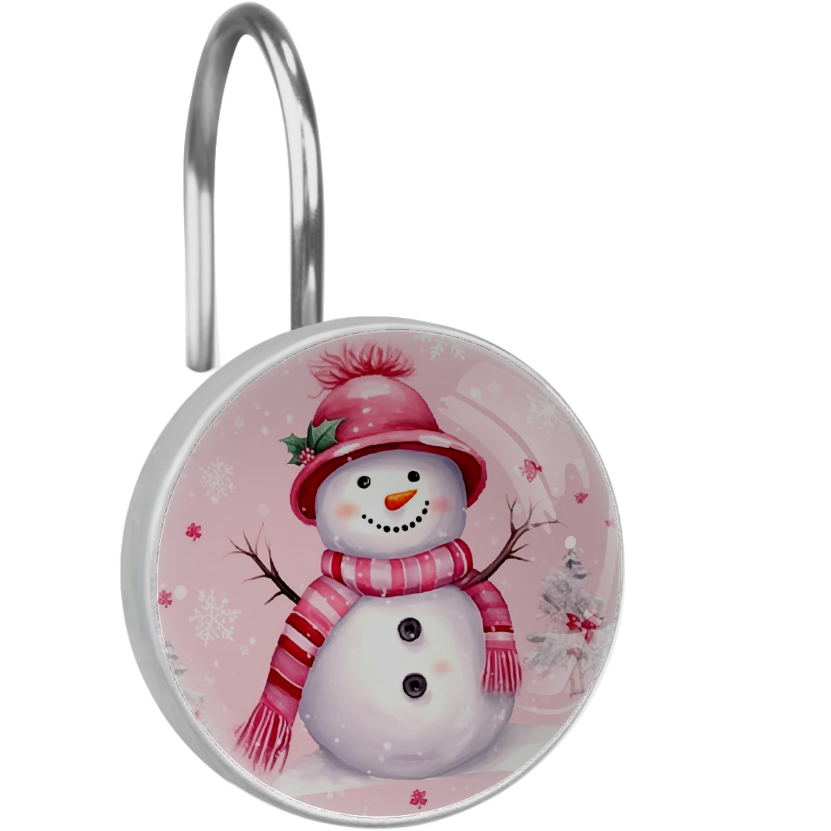 Decorative Christmas Snowman Pink (1) Shower Curtain Hooks 12pcs Crystal Glass Rustproof Shower Hooks for Bathroom Home Decor Stainless Steel Resin Shower Curtain Rings