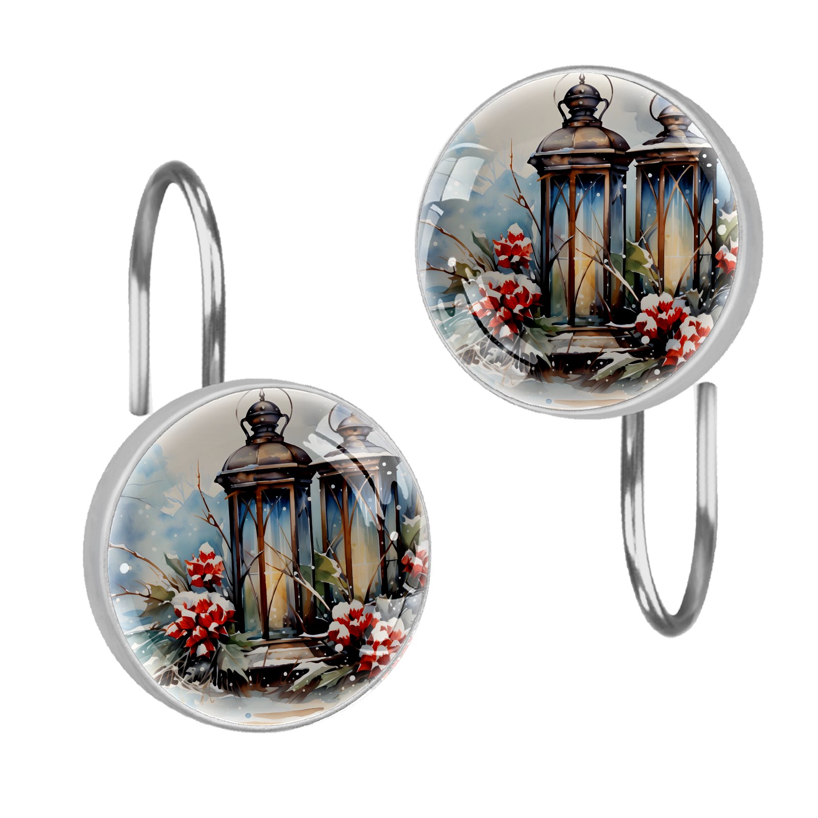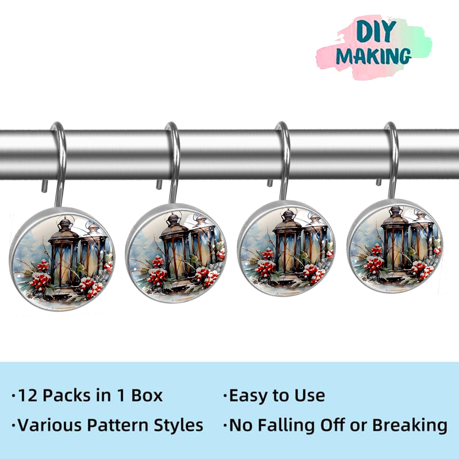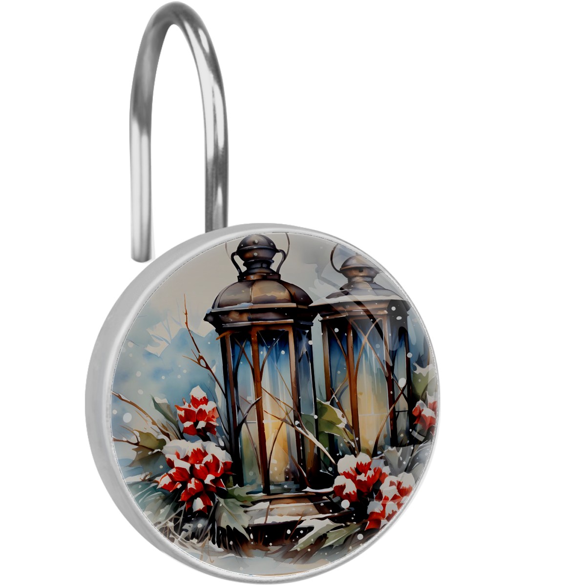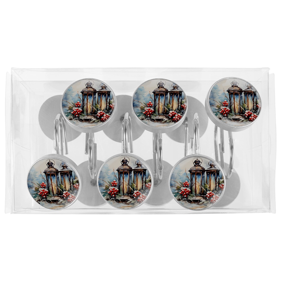 Decorative Vintage Christmas Winter Shower Curtain Hooks 12pcs Crystal Glass Rustproof Shower Hooks for Bathroom Home Decor Stainless Steel Resin Shower Curtain Rings