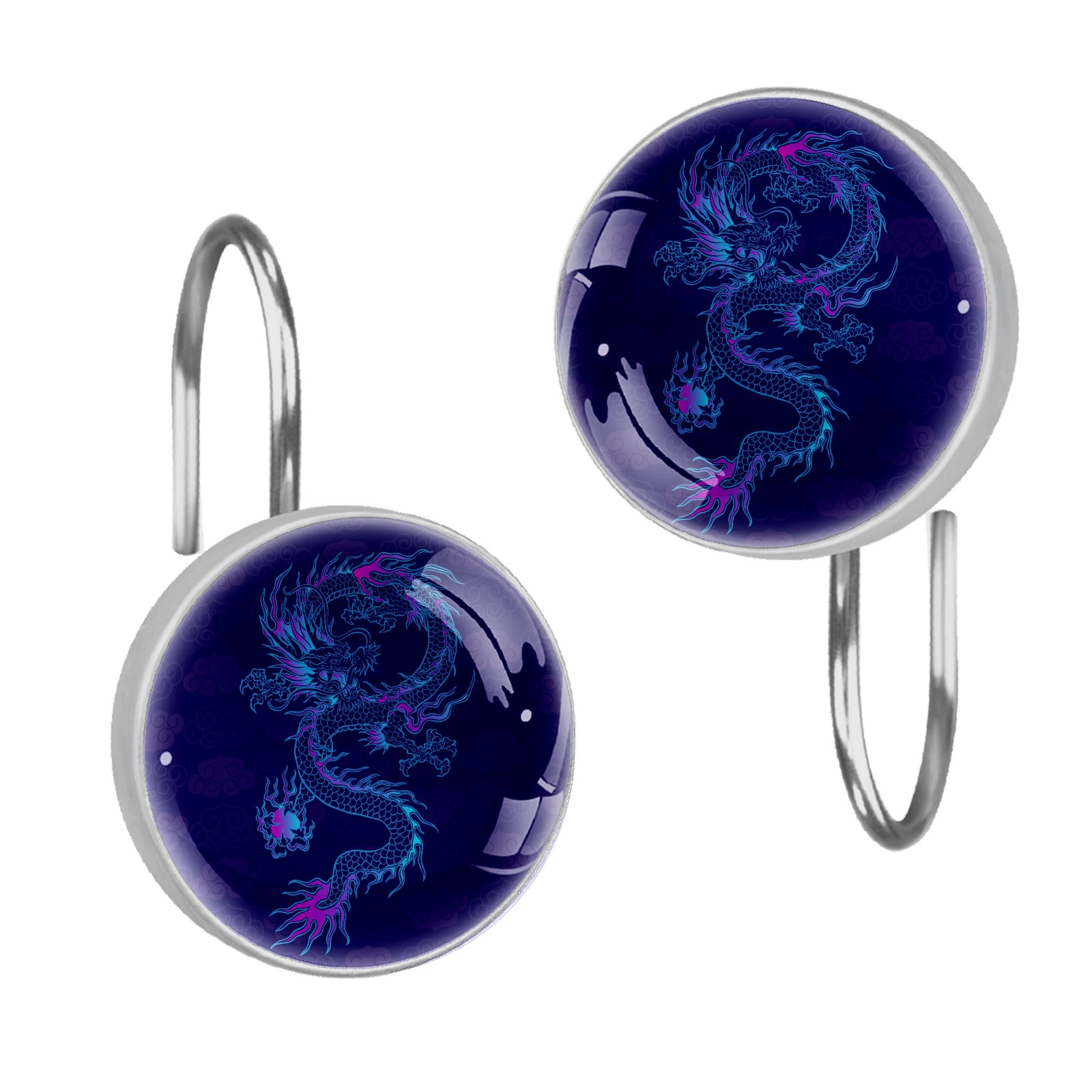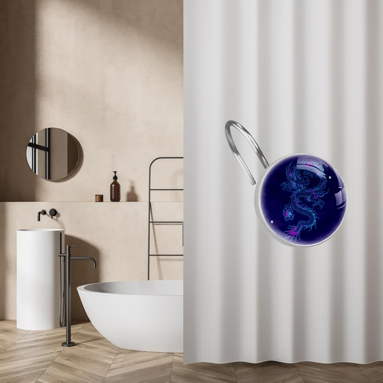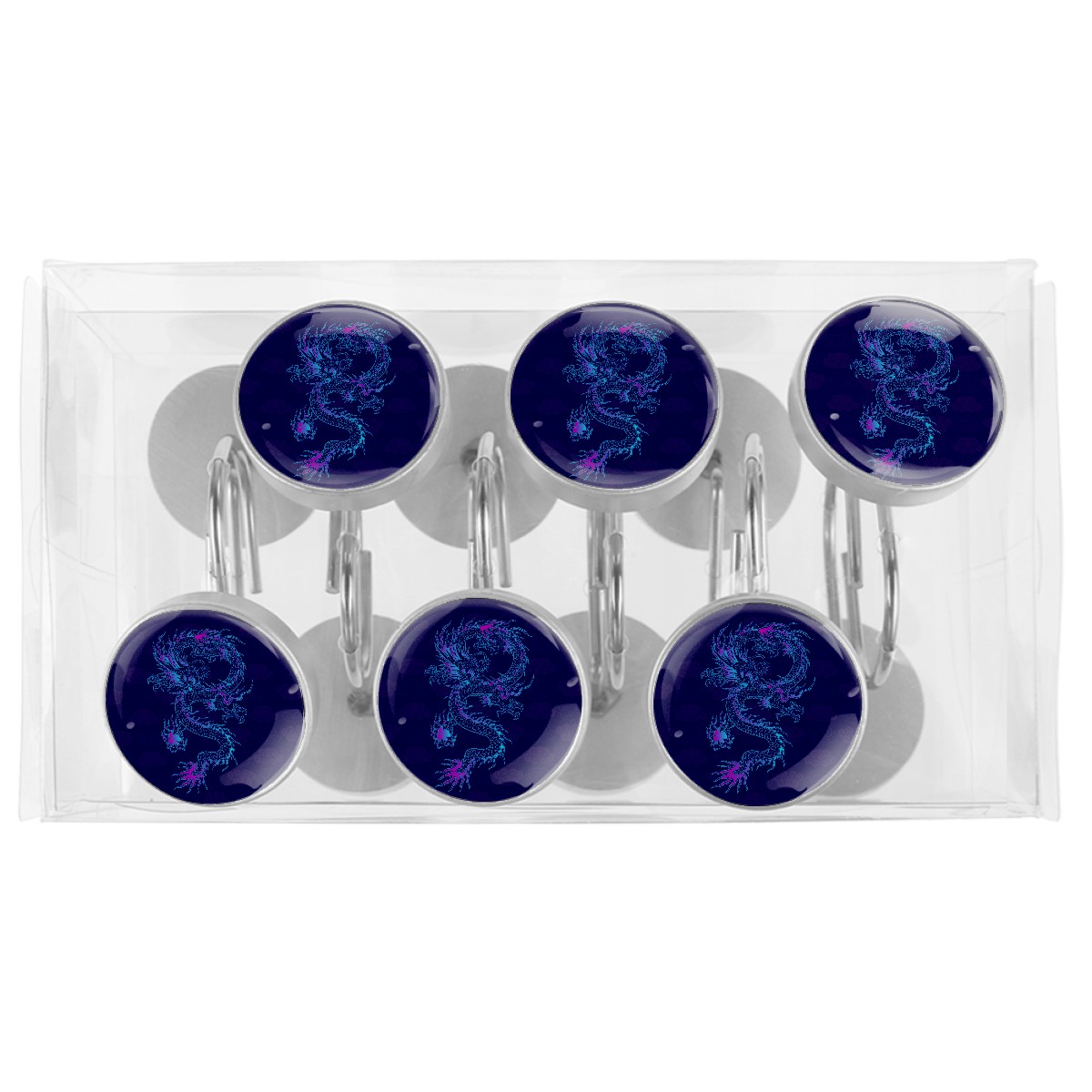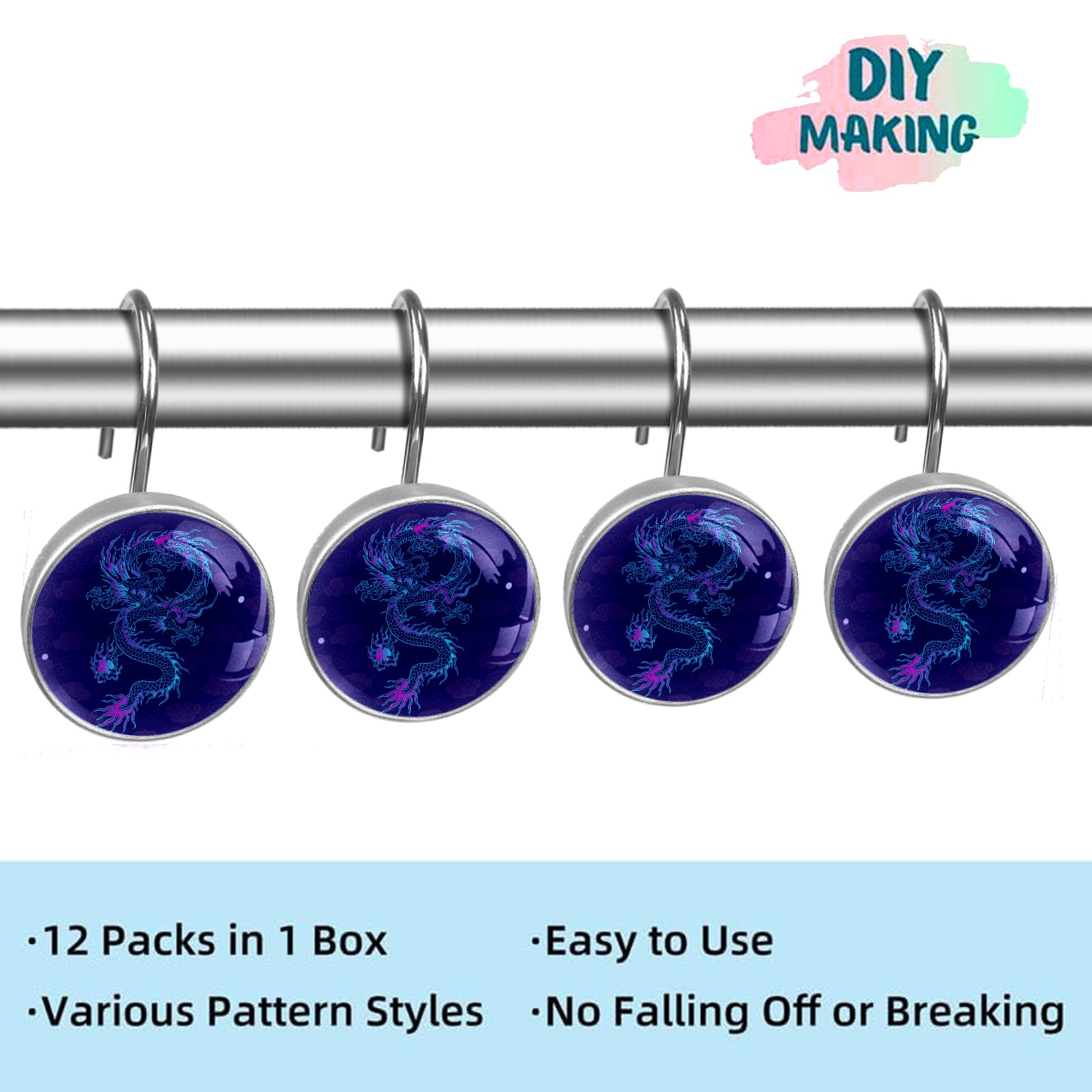 Decorative Vinatge Navy Blue Dragon Shower Curtain Hooks 12pcs Crystal Glass Rustproof Shower Hooks for Bathroom Home Decor Stainless Steel Resin Shower Curtain Rings