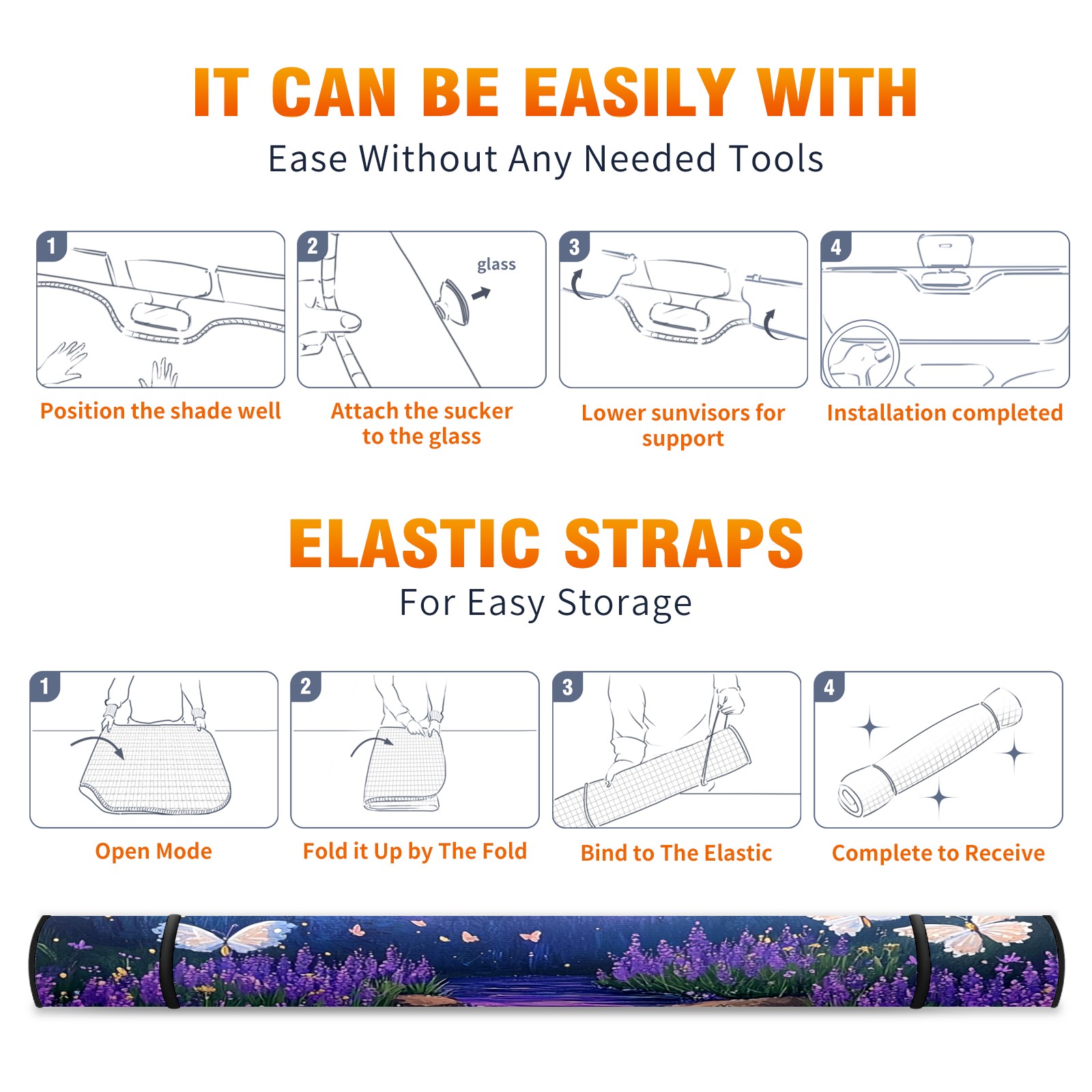 <p><b>Foldable Car Sun Shade for Windshield | UV Protection &amp; Heat Blocking | Universal Windshield Sun Shade Fit for Cars,Trucks,SUVs</b></p> <p><b>Reflective Aluminum Core</b></p> <p>The 3-layer construction (aluminum foil + double-layer bubble + 420D polyester) blocks UV rays and keeps the temperature of the car down compared to exposed vehicles on hot days.</p> <p><b>Electronics &amp; Interior Safeguard</b></p> <p>This car sunshade for windshield offers excellent reflection, preventing LCD screen glare, GPS malfunctions, and leather upholstery cracks caused by prolonged solar exposure.</p> <p><b>Wide Compatibility for Various Vehicle Types</b></p> <p>Crafted at 55"L x 30"W (140x76 cm), this windshield sunshade is designed to fit most cars, SUVs, and trucks, ensuring full coverage without adding bulk. Our UV-resistant and tear-resistant car sunshade is easy to install without tools. Its foldable design makes it convenient to adjust and store, taking up minimal space in your vehicle.</p> <p><b>Ideal For</b></p> <p>Daily commuters needing heat reduction from a car sunshade for windshield.</p> <p>RV and overlanding enthusiasts requiring sturdy&nbsp;front windshield sunshades.</p> <p>Luxury car owners need to prevent the fading of the car's interior.</p>
