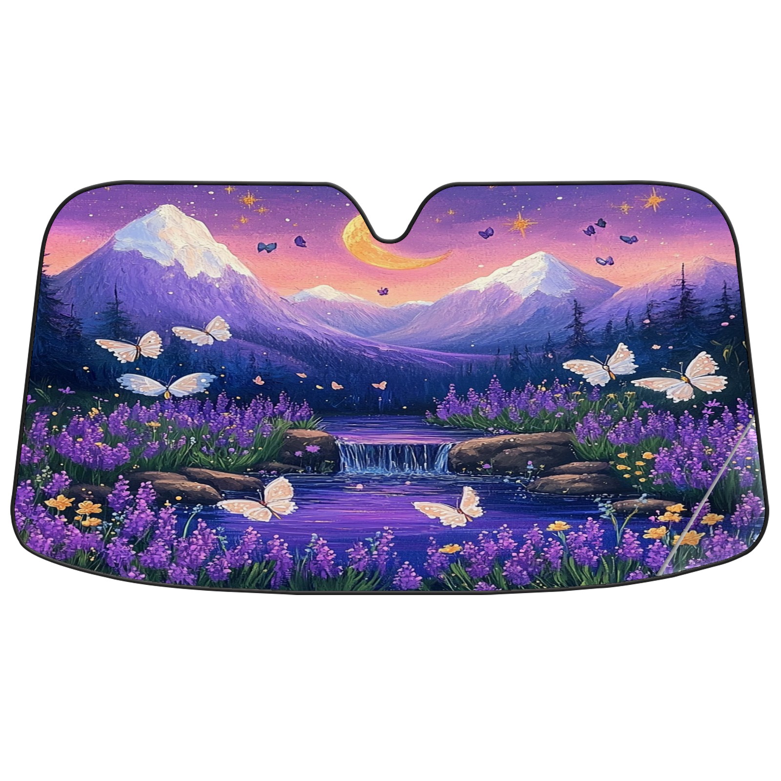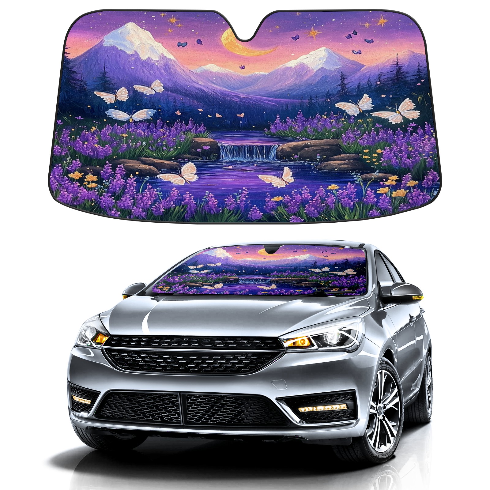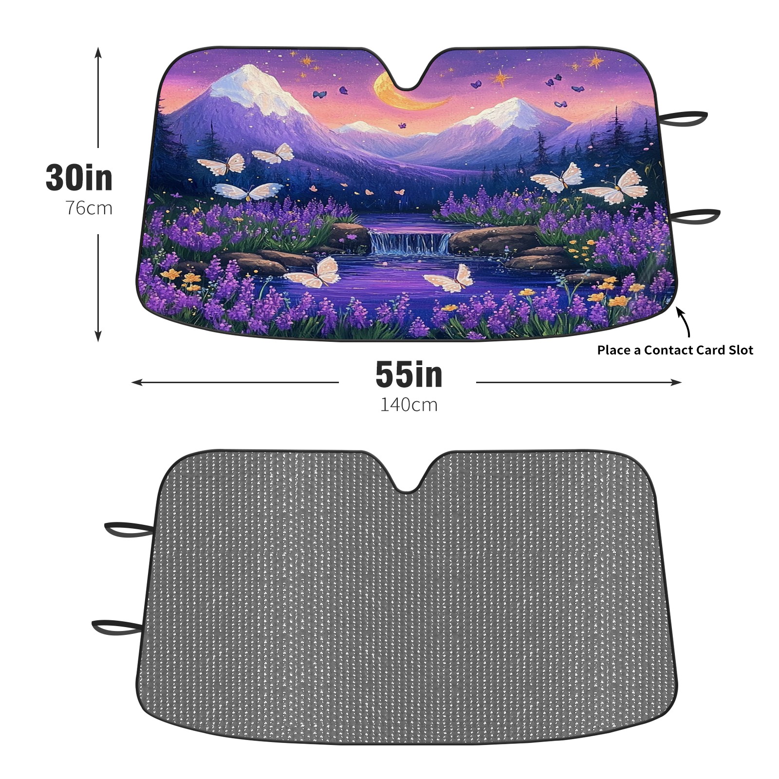 SAVHOQIR Car Sun Shade Foldable Purple Mountain Windshield Sun Shade 55''x30'' Vehicle Front Window Shade Protector for SUV Truck Car Sun Visor Blocks UV Rays