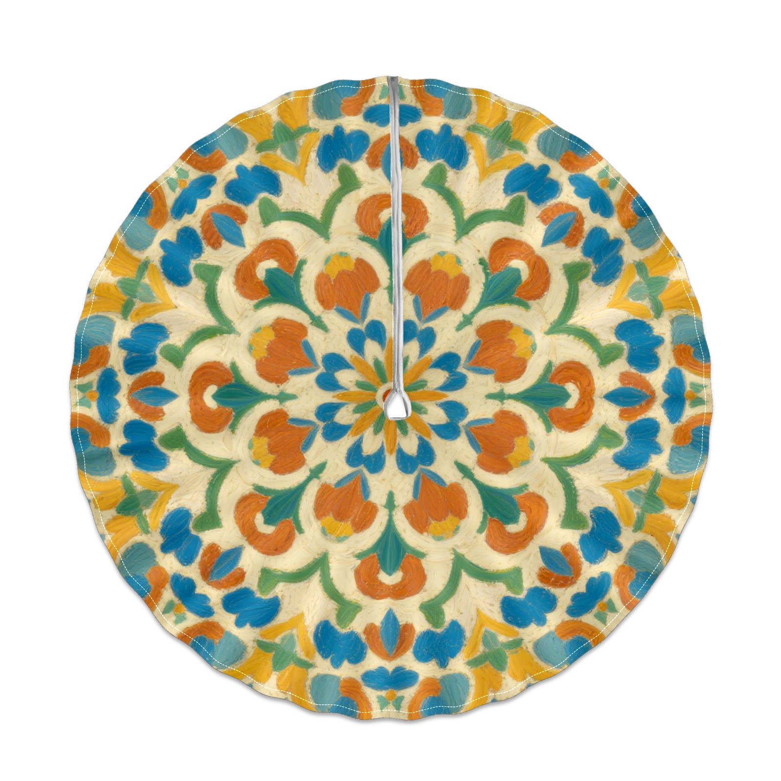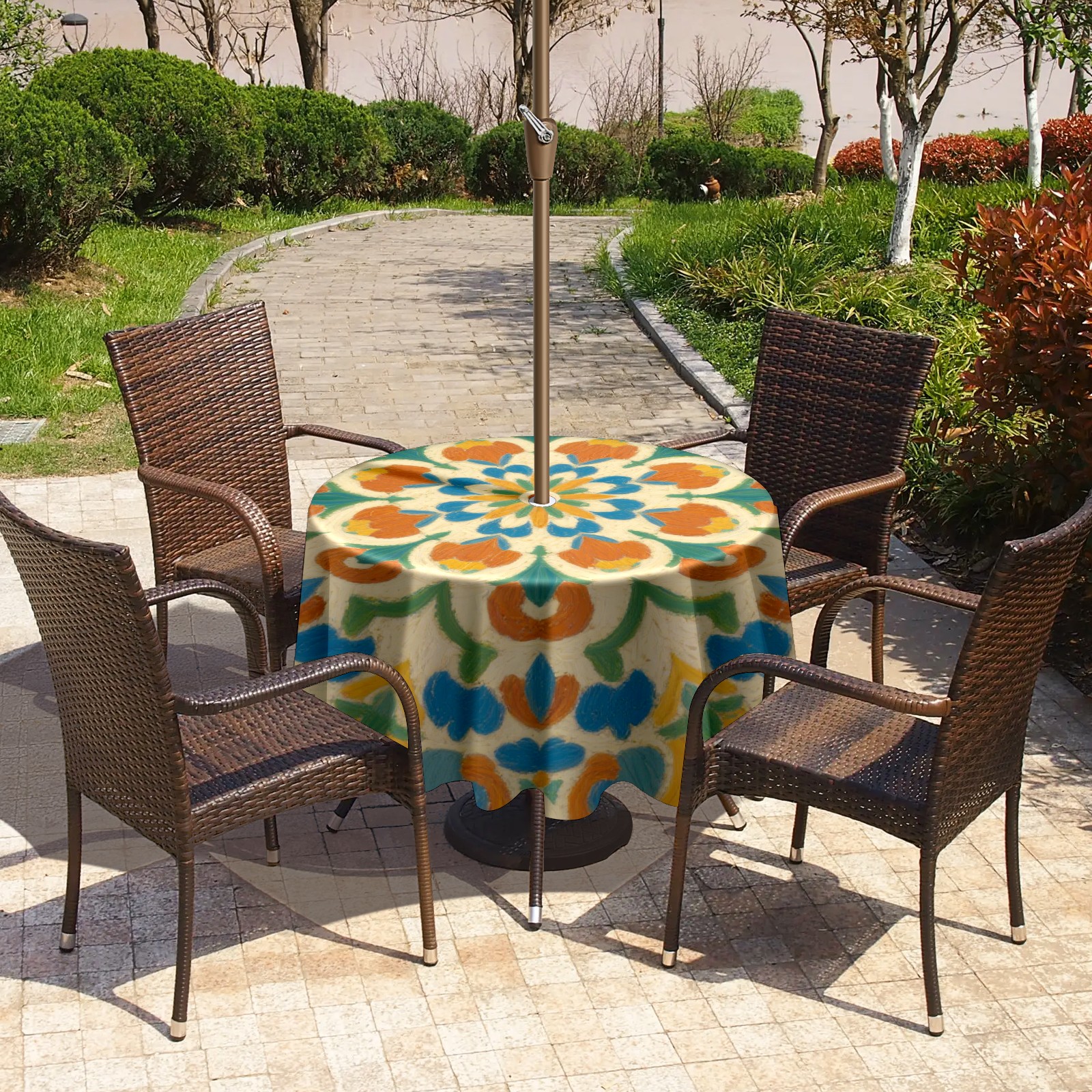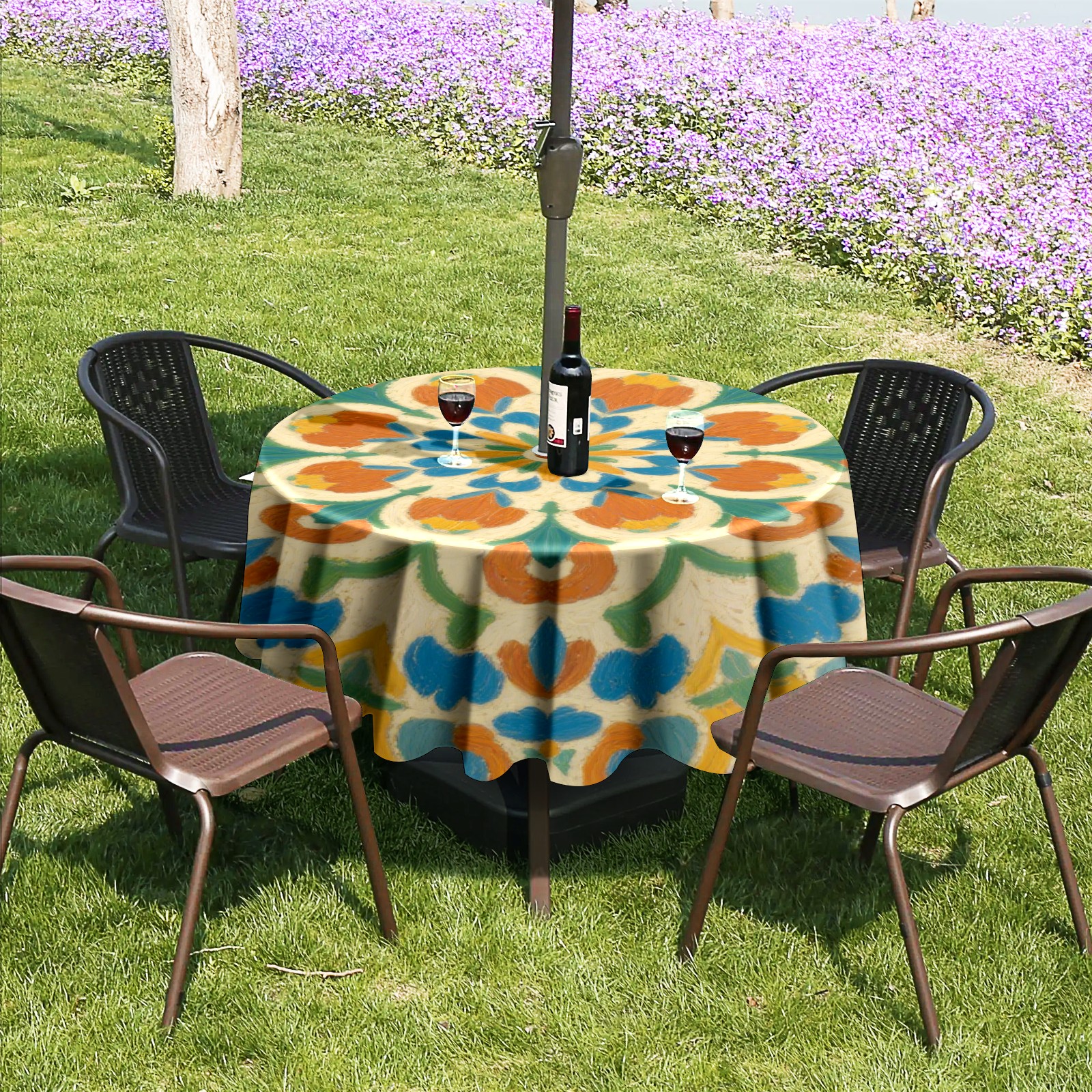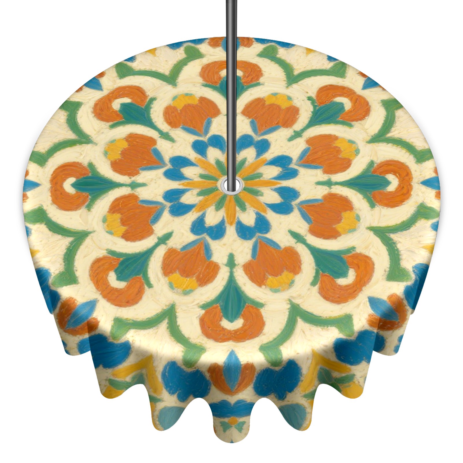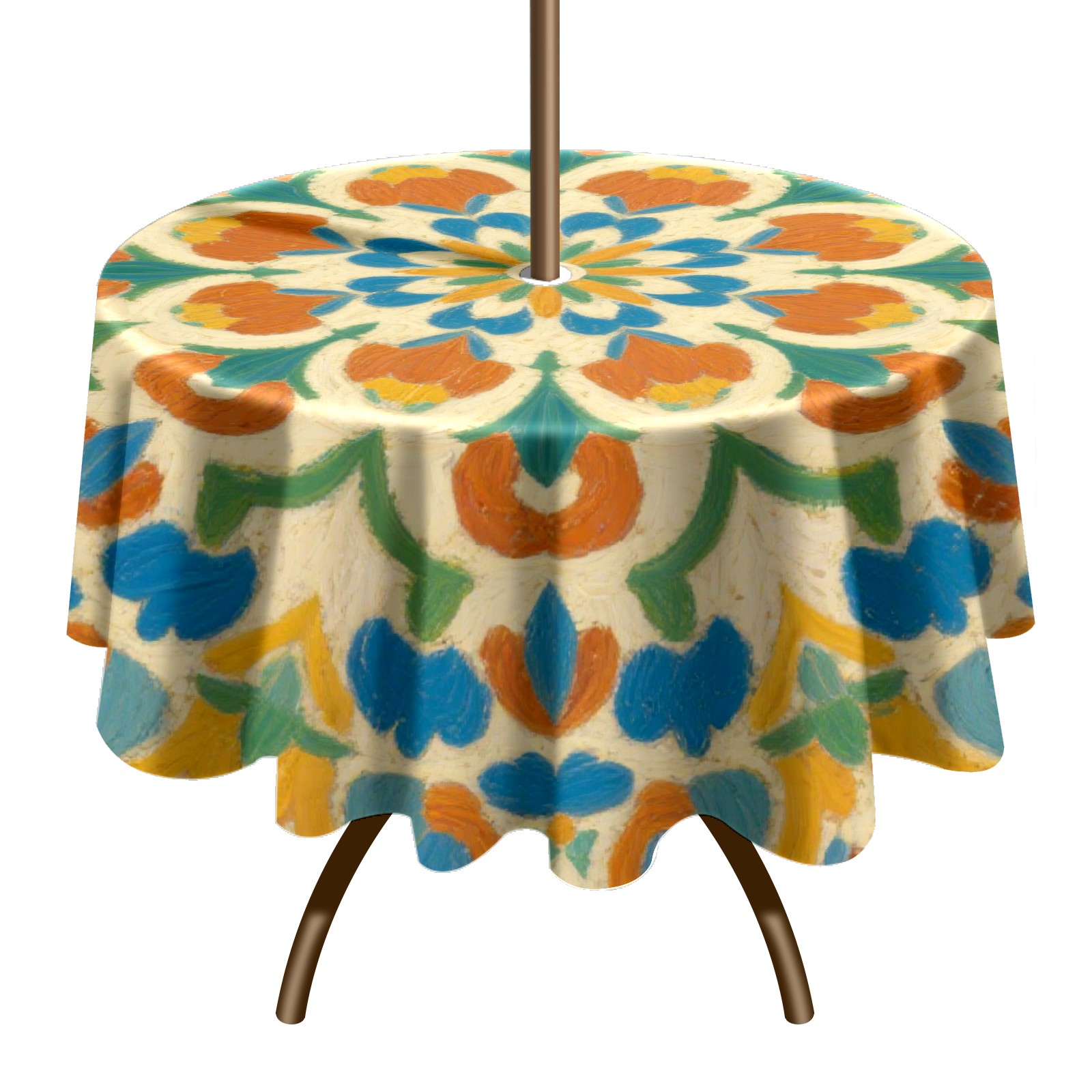 Round Tablecloth with Adjustable Zippered Hole - Durable Polyester for Patio, Restaurant & Outdoor Dining Circular Symmetrical Pattern (8) (60in)