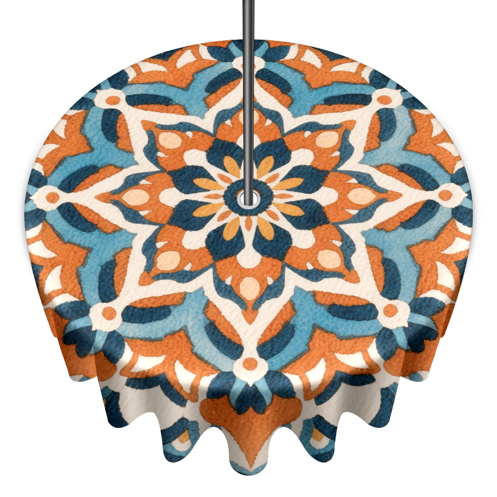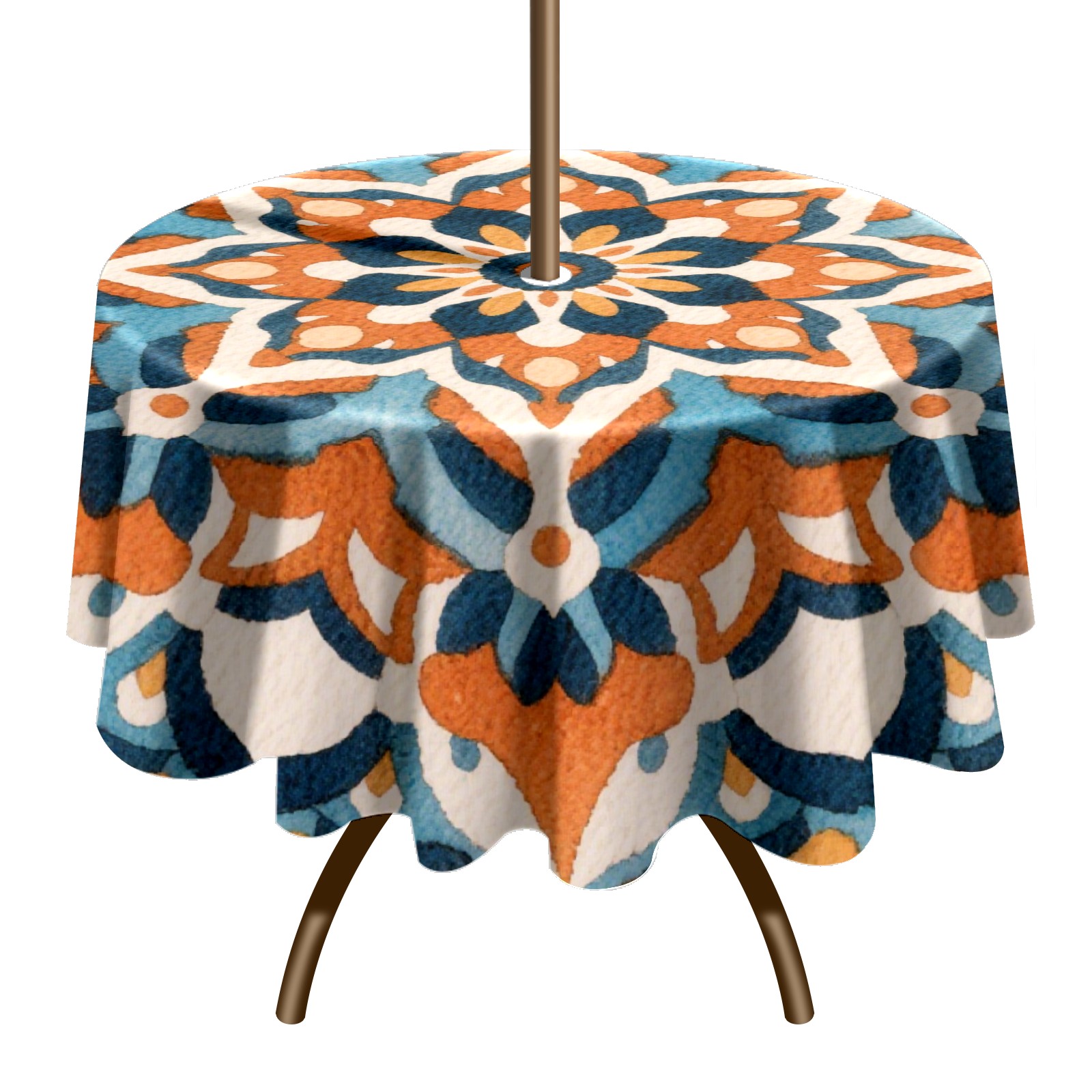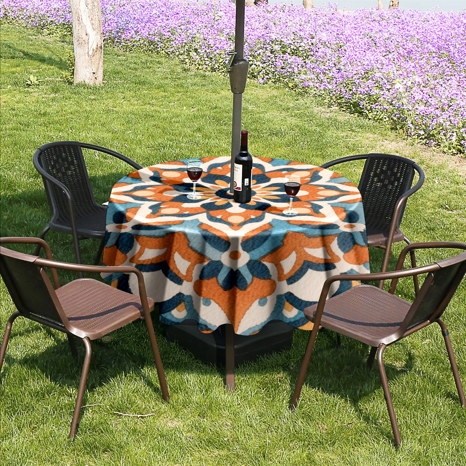 Round Tablecloth with Adjustable Zippered Hole - Durable Polyester for Patio, Restaurant & Outdoor Dining Circular Symmetrical Pattern (5) (60in)