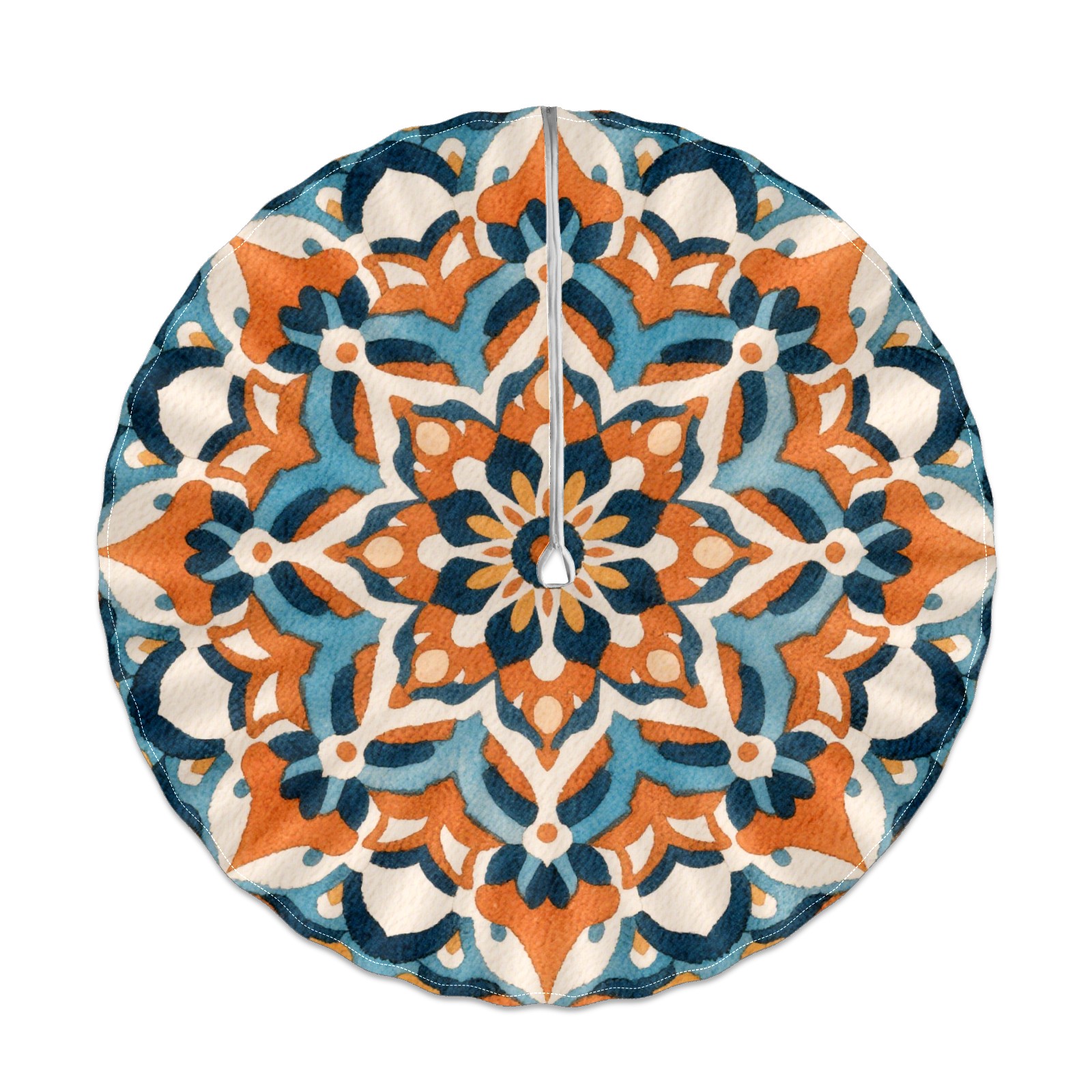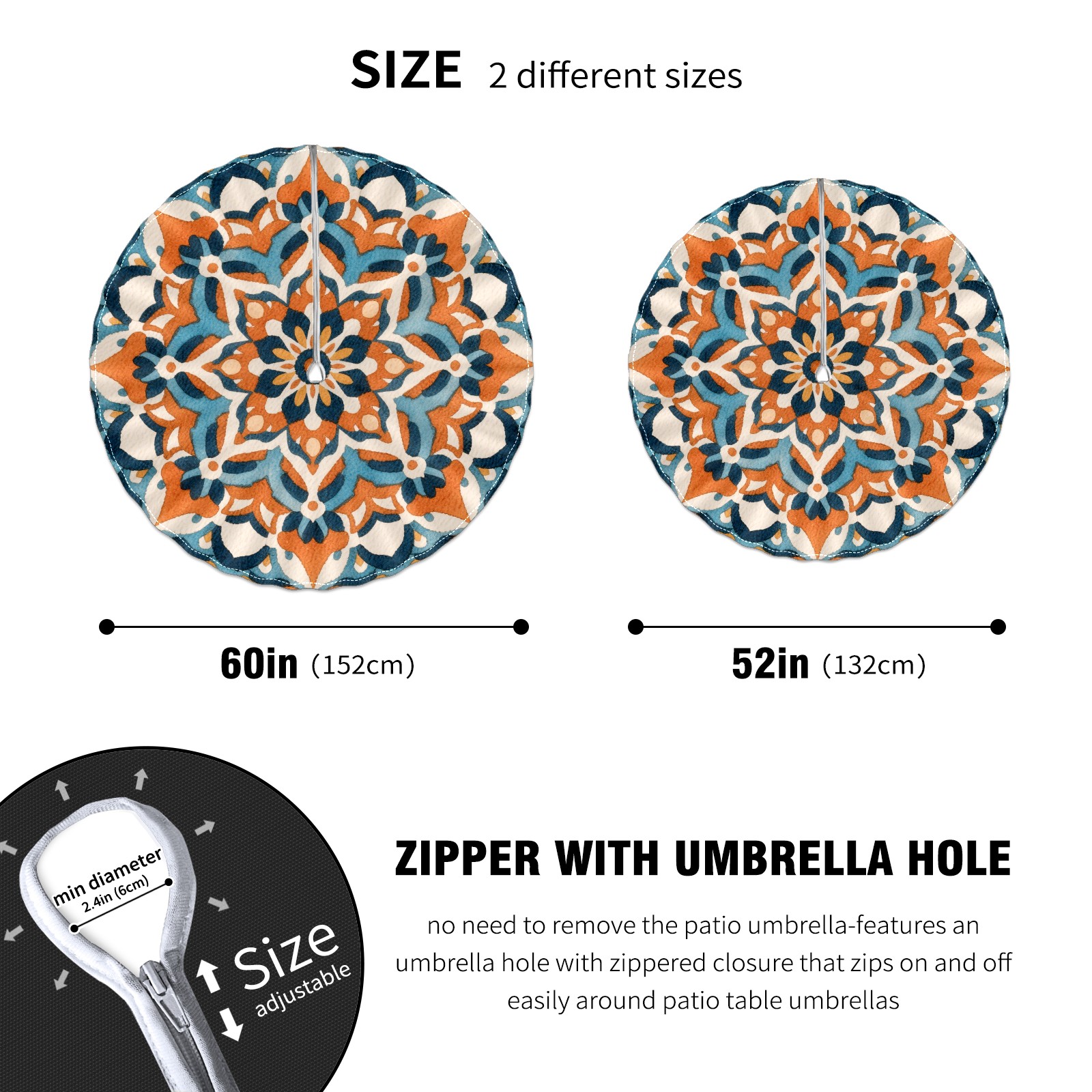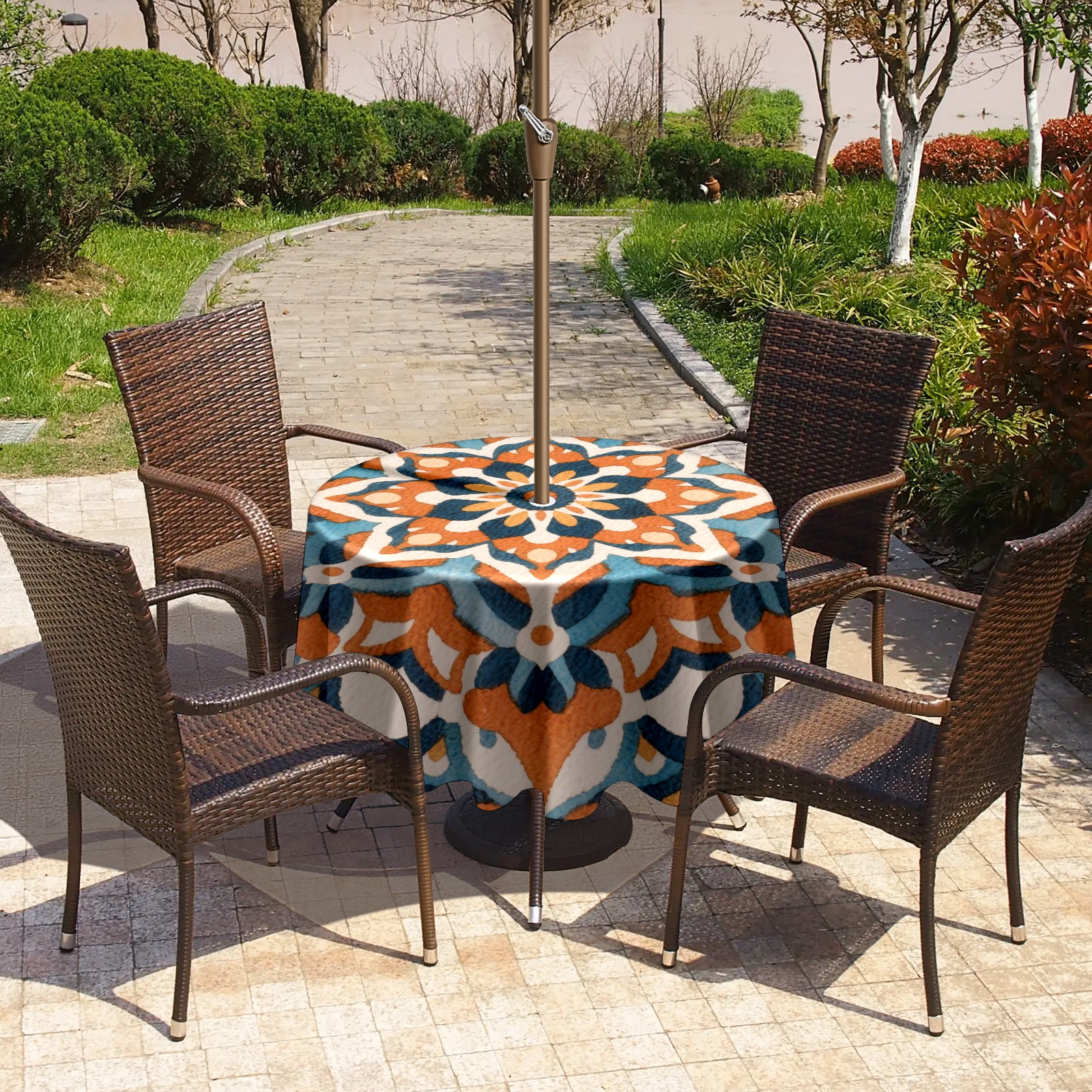 Round Tablecloth with Adjustable Zippered Hole - Durable Polyester for Patio, Restaurant & Outdoor Dining Circular Symmetrical Pattern (5) (60in)