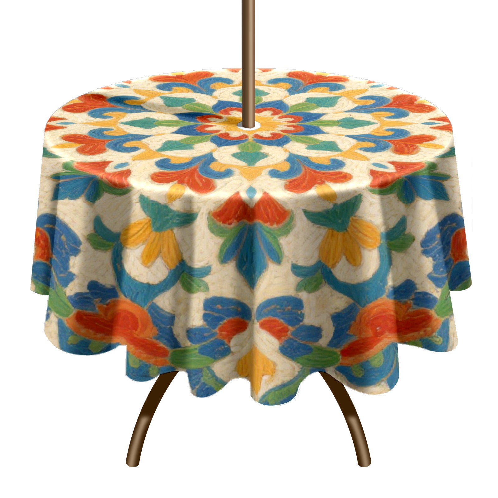 Round Tablecloth with Adjustable Zippered Hole - Durable Polyester for Patio, Restaurant & Outdoor Dining Circular Symmetrical Pattern (3) (60in)