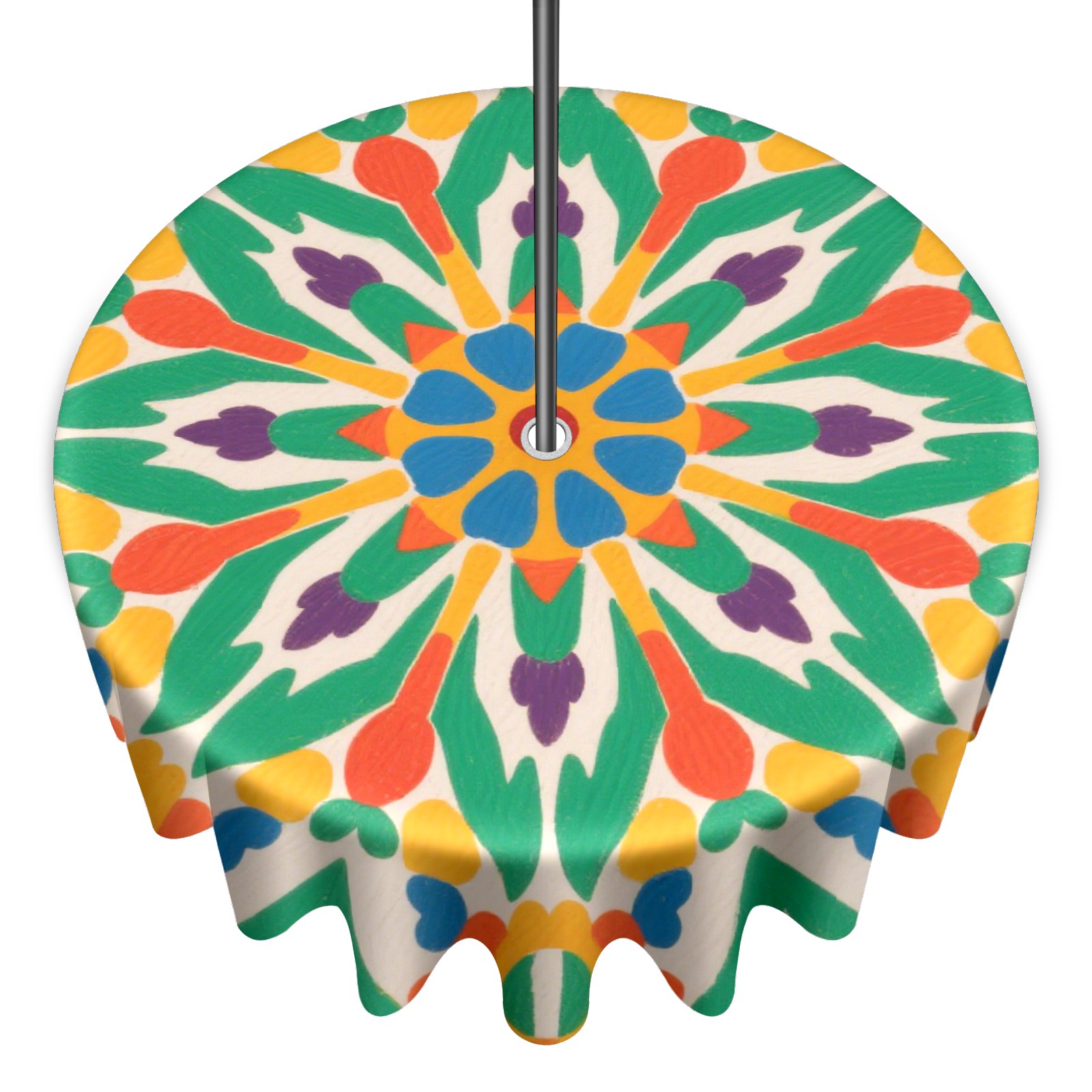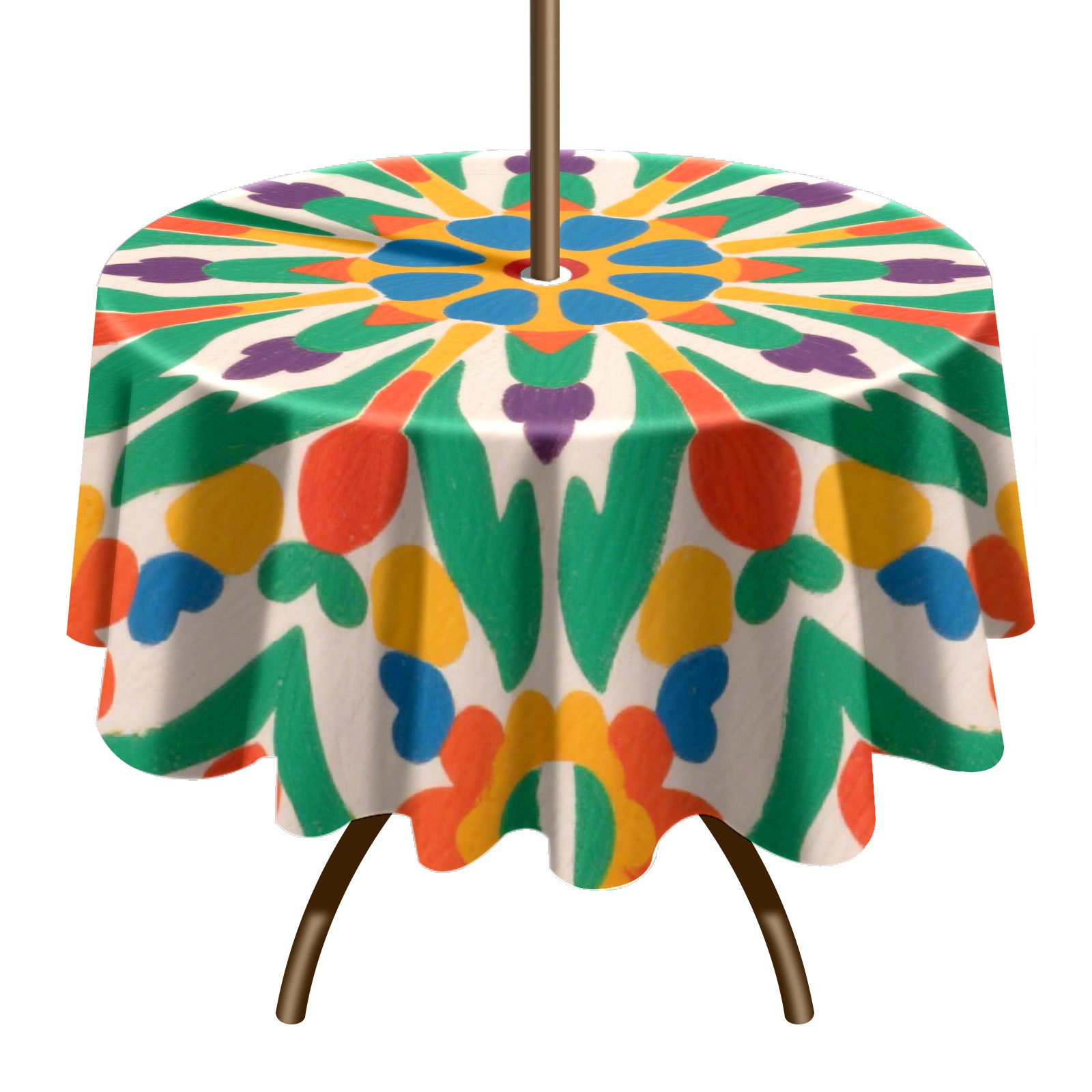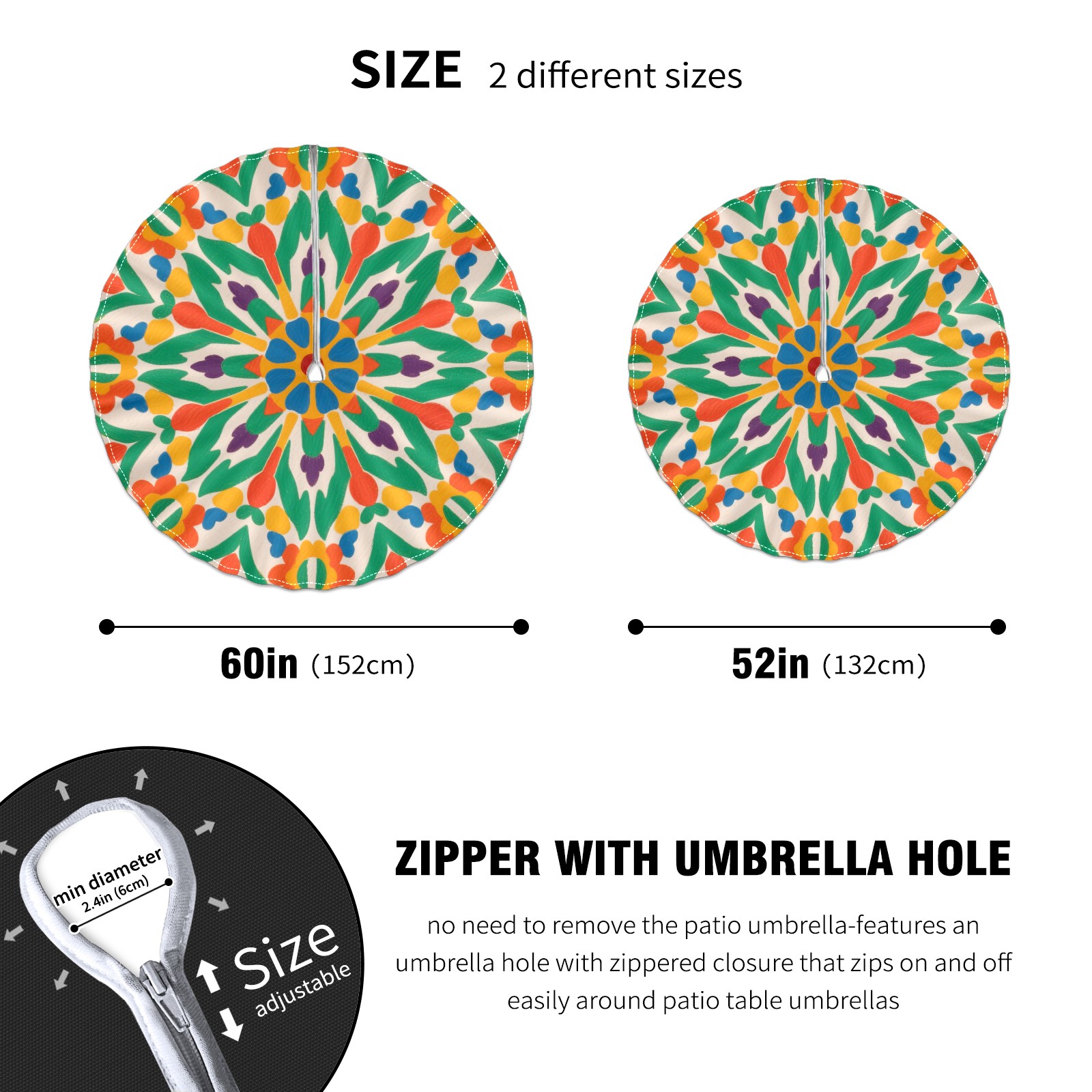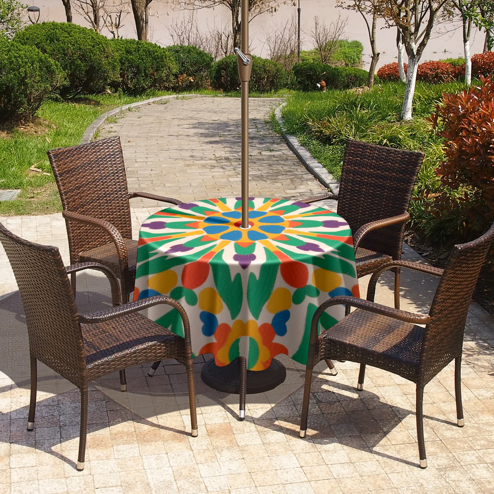 • <p>Constructed with heavy-duty polyester fabric, this tablecloth withstands outdoor wear while maintaining a clean appearance. The adjustable zipper hole accommodates umbrella poles of varying thickness, allowing installation without disassembling the umbrella stand.</p> <p>Ideal for backyard BBQs or cafe patios, this tablecloth elevates table presentation instantly. Available in two classic sizes, the precision circular cut ensures full table coverage. </p> <p>Machine washable in cold water without color fading or shape distortion. The lightweight fabric folds compactly for space-efficient storage between uses.</p>