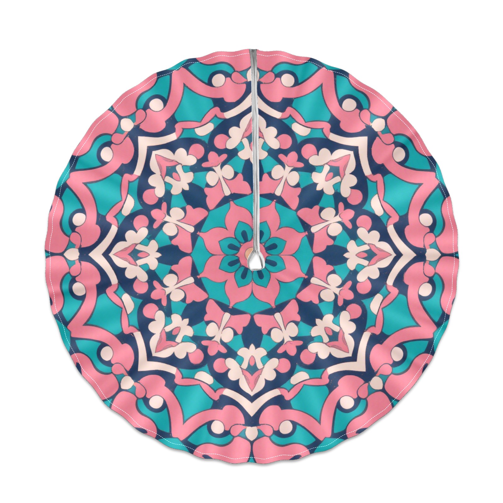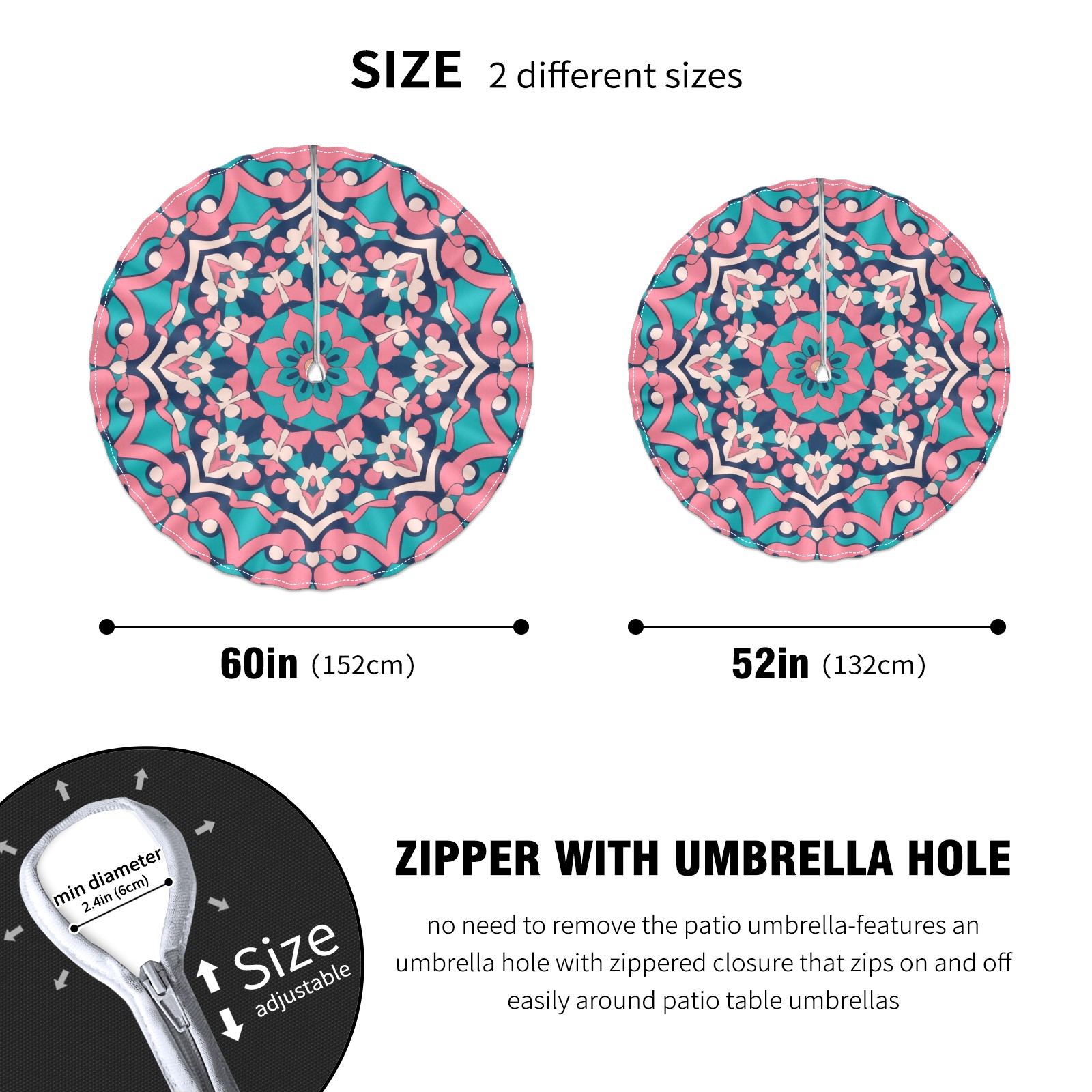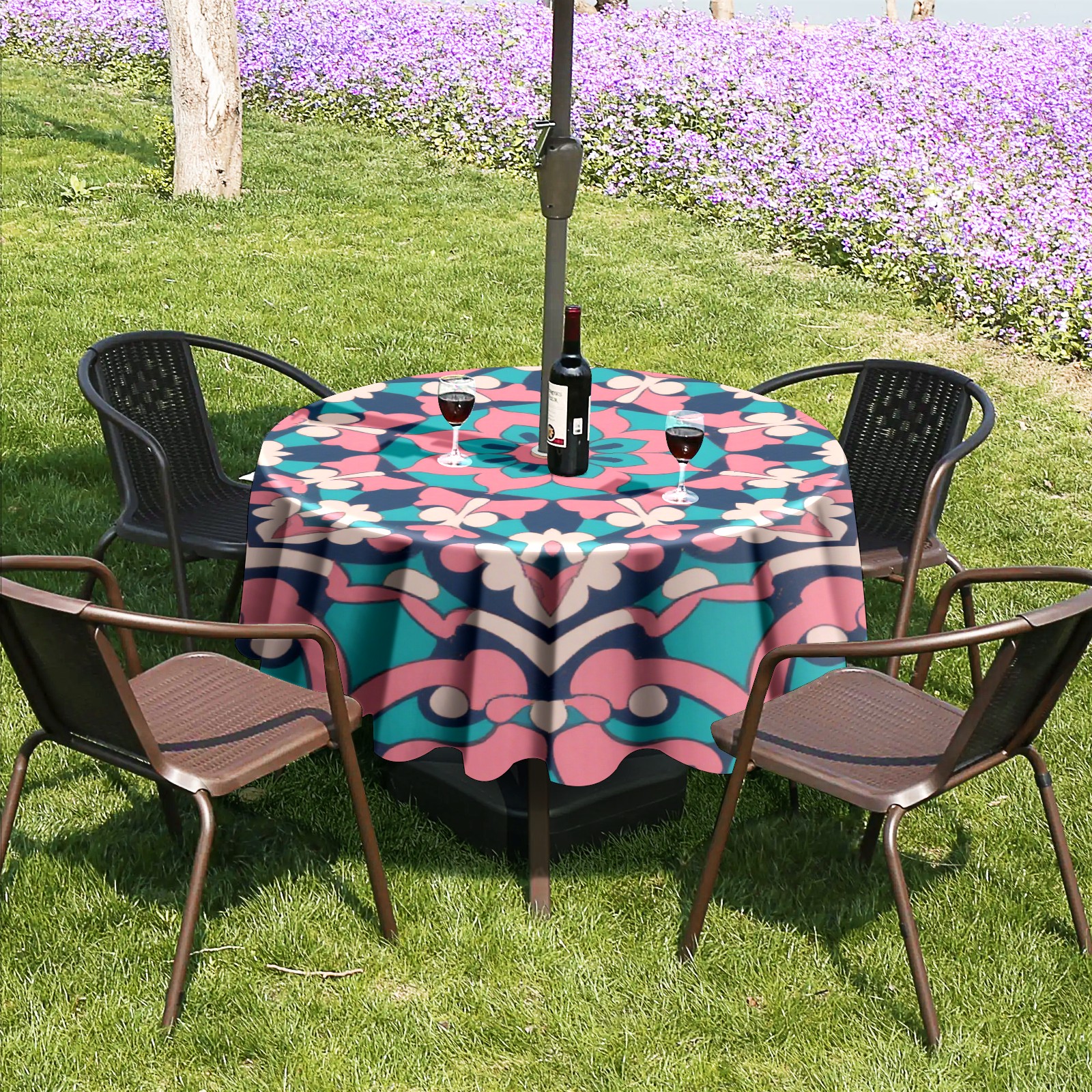 Round Tablecloth with Adjustable Zippered Hole - Durable Polyester for Patio, Restaurant & Outdoor Dining Pink Green Symmetrical Pattern (60in)