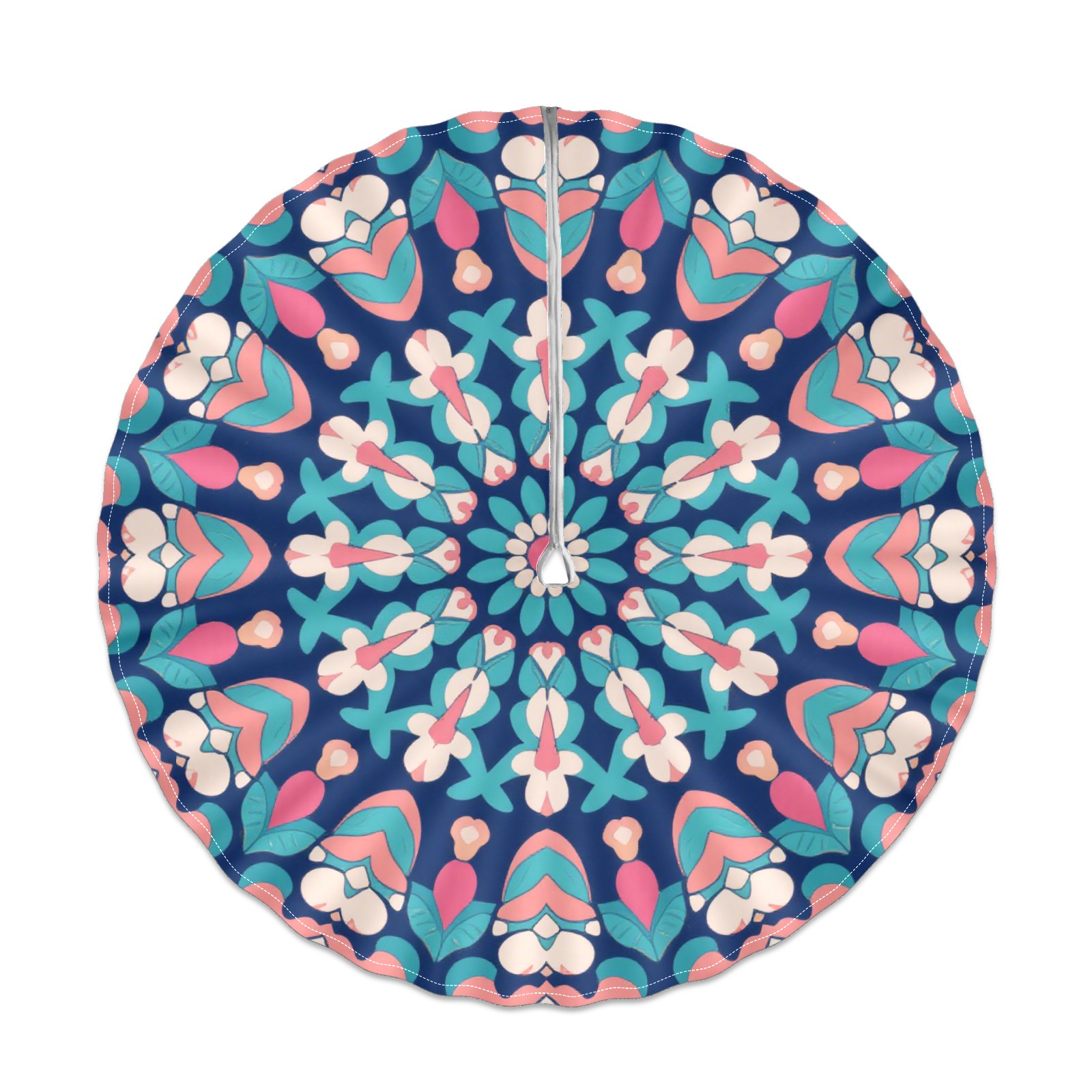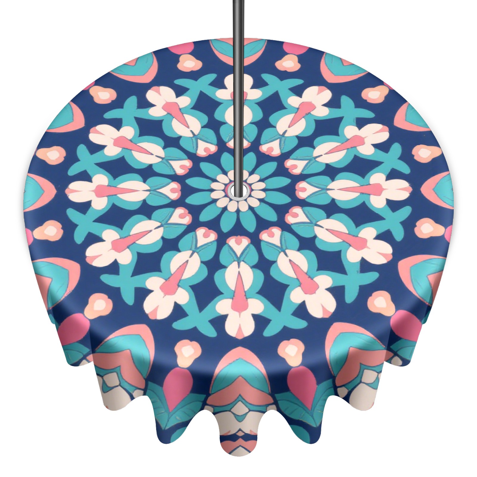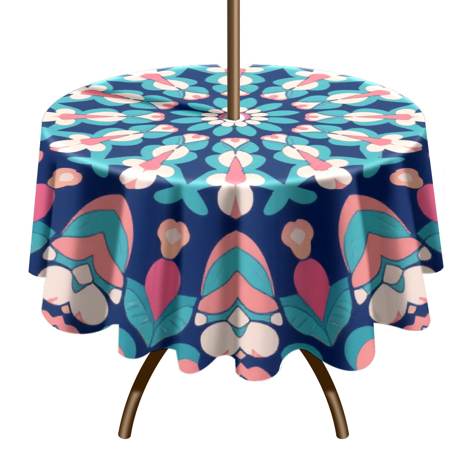 Round Tablecloth with Adjustable Zippered Hole - Durable Polyester for Patio, Restaurant & Outdoor Dining Blue Green Symmetrical Pattern (60in)