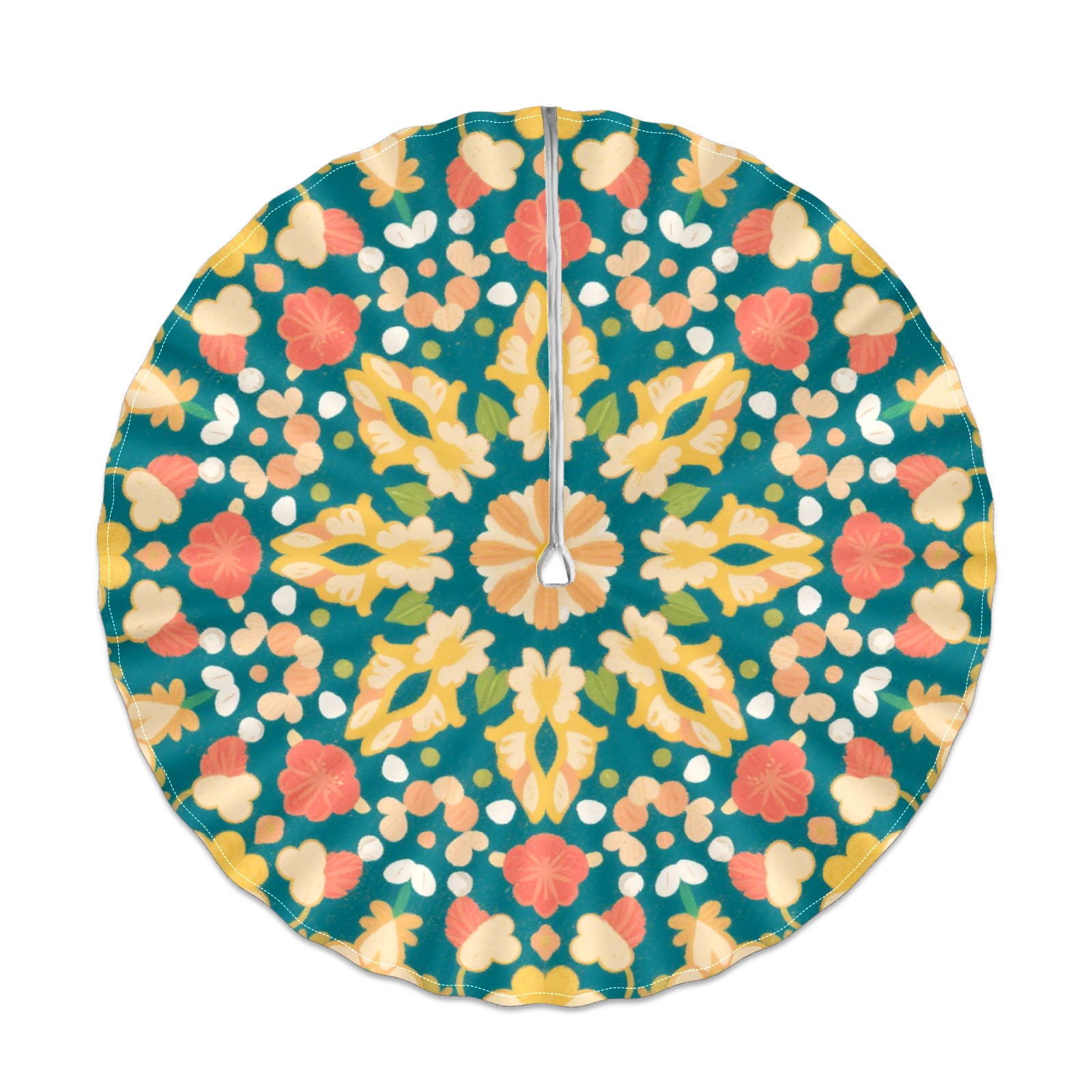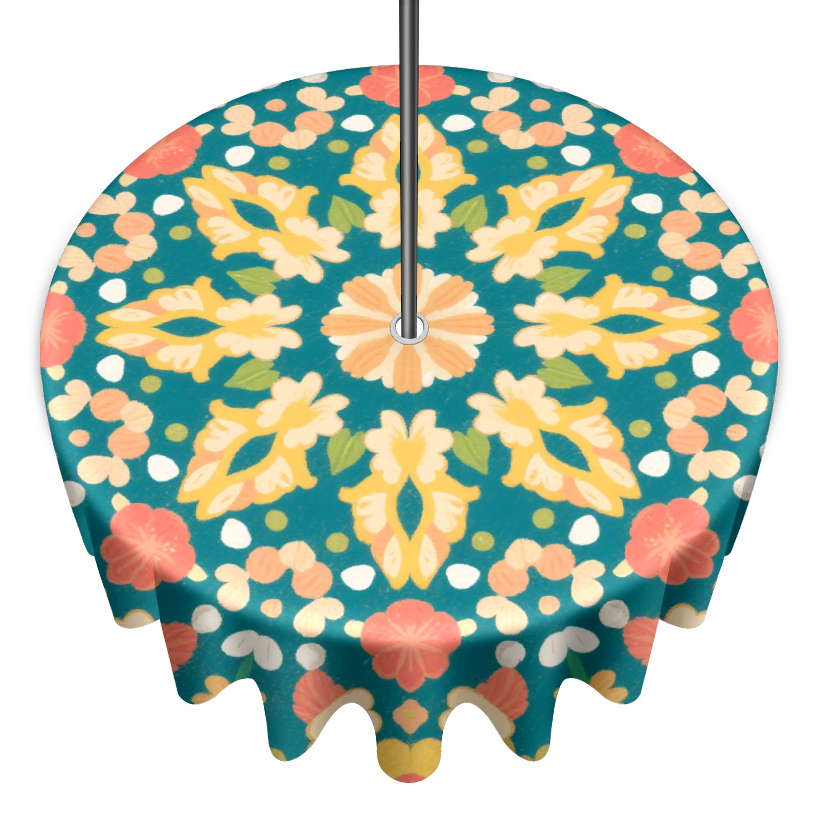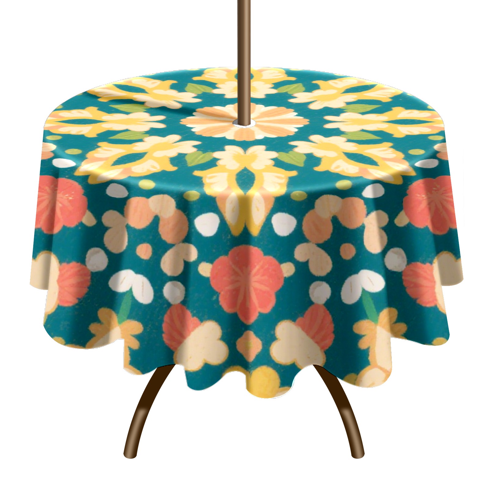 Round Tablecloth with Adjustable Zippered Hole - Durable Polyester for Patio, Restaurant & Outdoor Dining Yellow Red Fresh Pattern (60in)