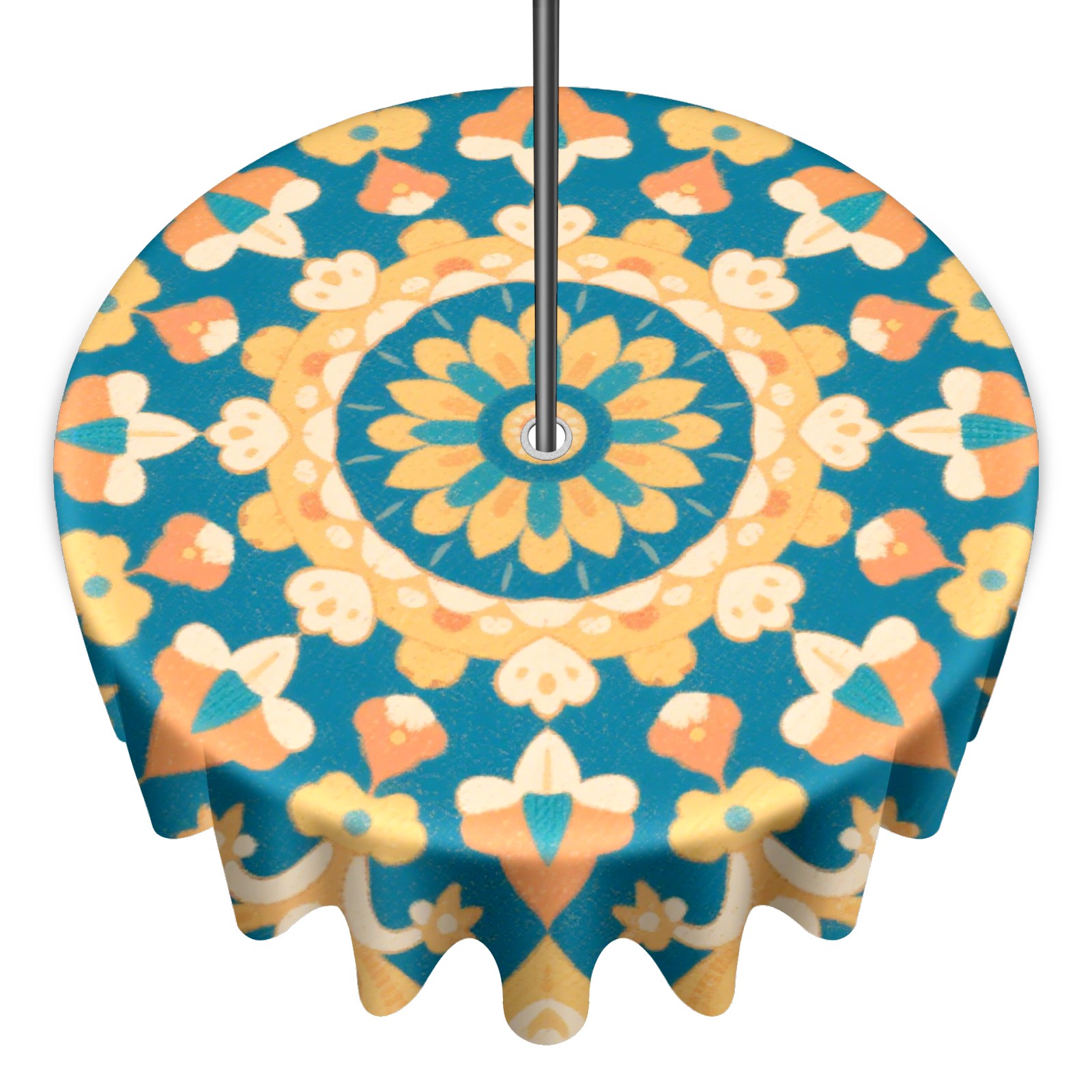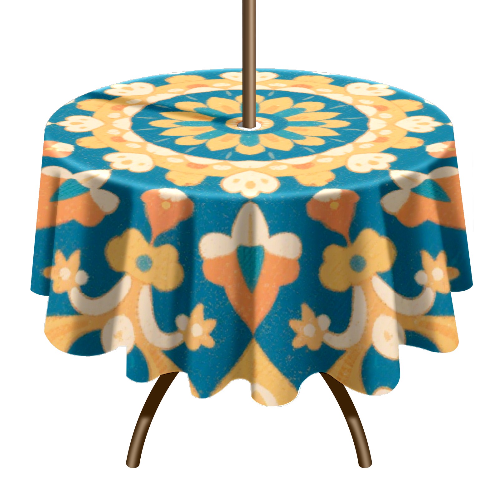 Round Tablecloth with Adjustable Zippered Hole - Durable Polyester for Patio, Restaurant & Outdoor Dining Yellow Fresh Pattern (60in)