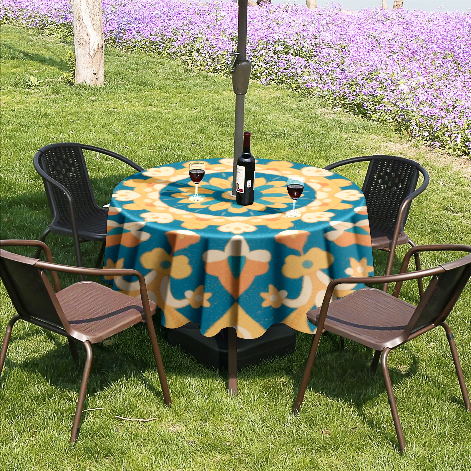• <p>Constructed with heavy-duty polyester fabric, this tablecloth withstands outdoor wear while maintaining a clean appearance. The adjustable zipper hole accommodates umbrella poles of varying thickness, allowing installation without disassembling the umbrella stand.</p> <p>Ideal for backyard BBQs or cafe patios, this tablecloth elevates table presentation instantly. Available in two classic sizes, the precision circular cut ensures full table coverage. </p> <p>Machine washable in cold water without color fading or shape distortion. The lightweight fabric folds compactly for space-efficient storage between uses.</p>
