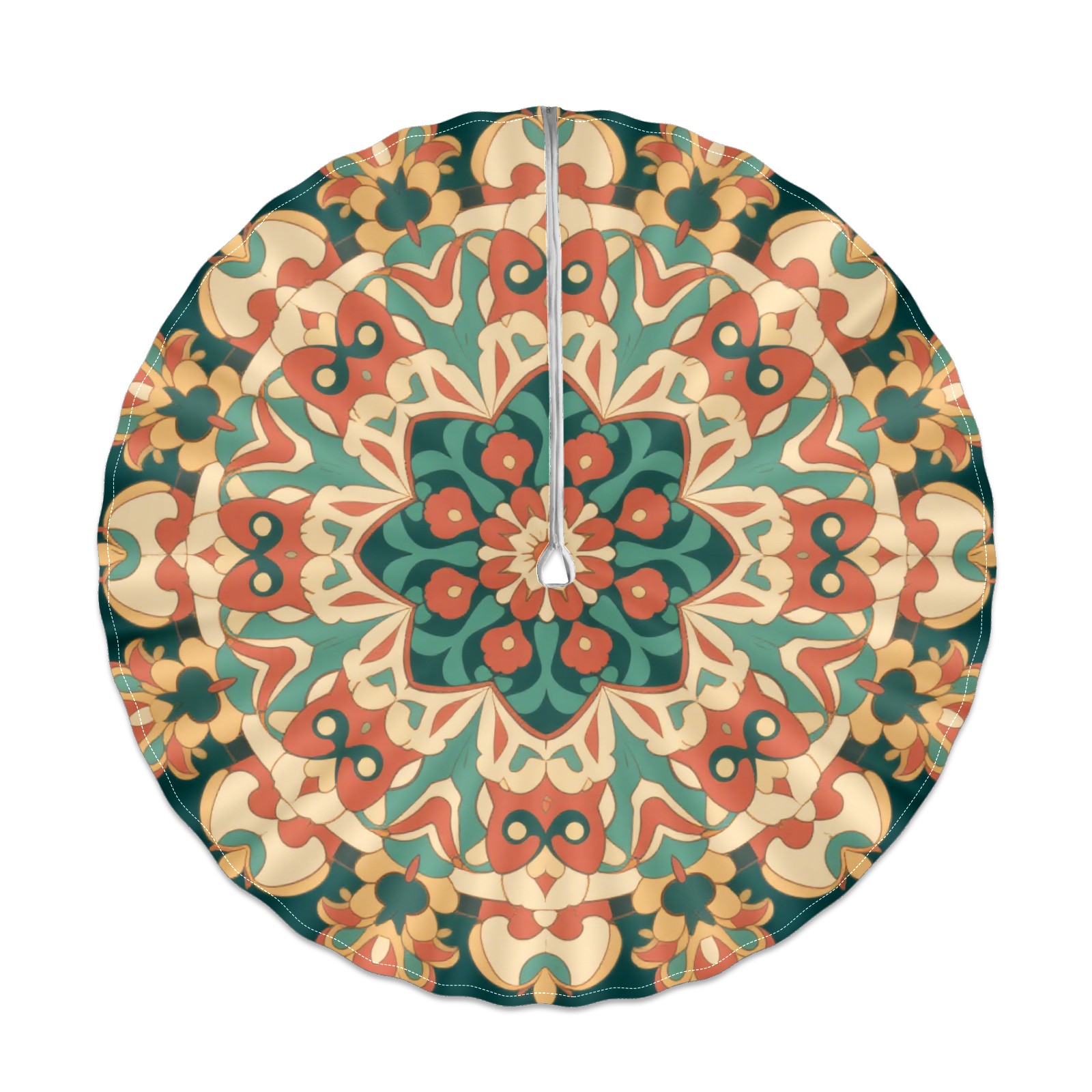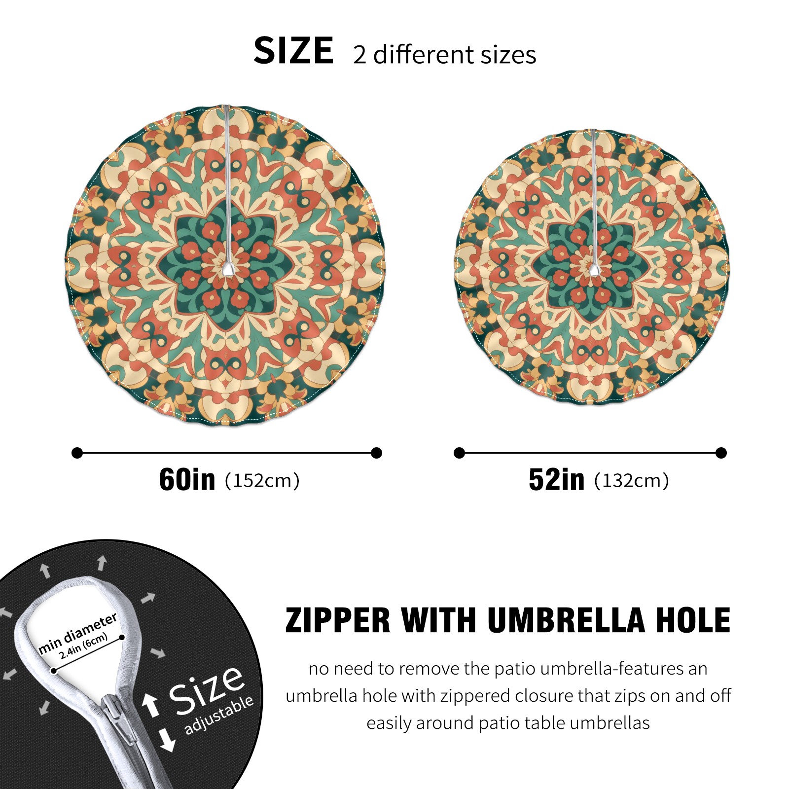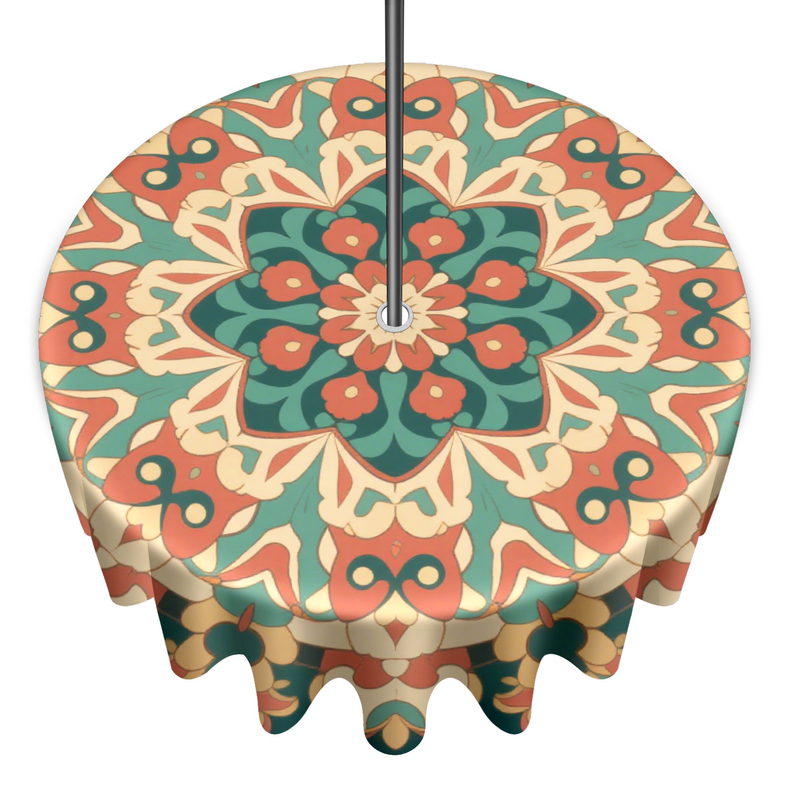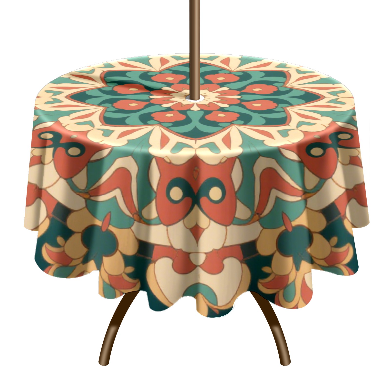 Round Tablecloth with Adjustable Zippered Hole - Durable Polyester for Patio, Restaurant & Outdoor Dining Circular Symmetrical Green Background (60in)