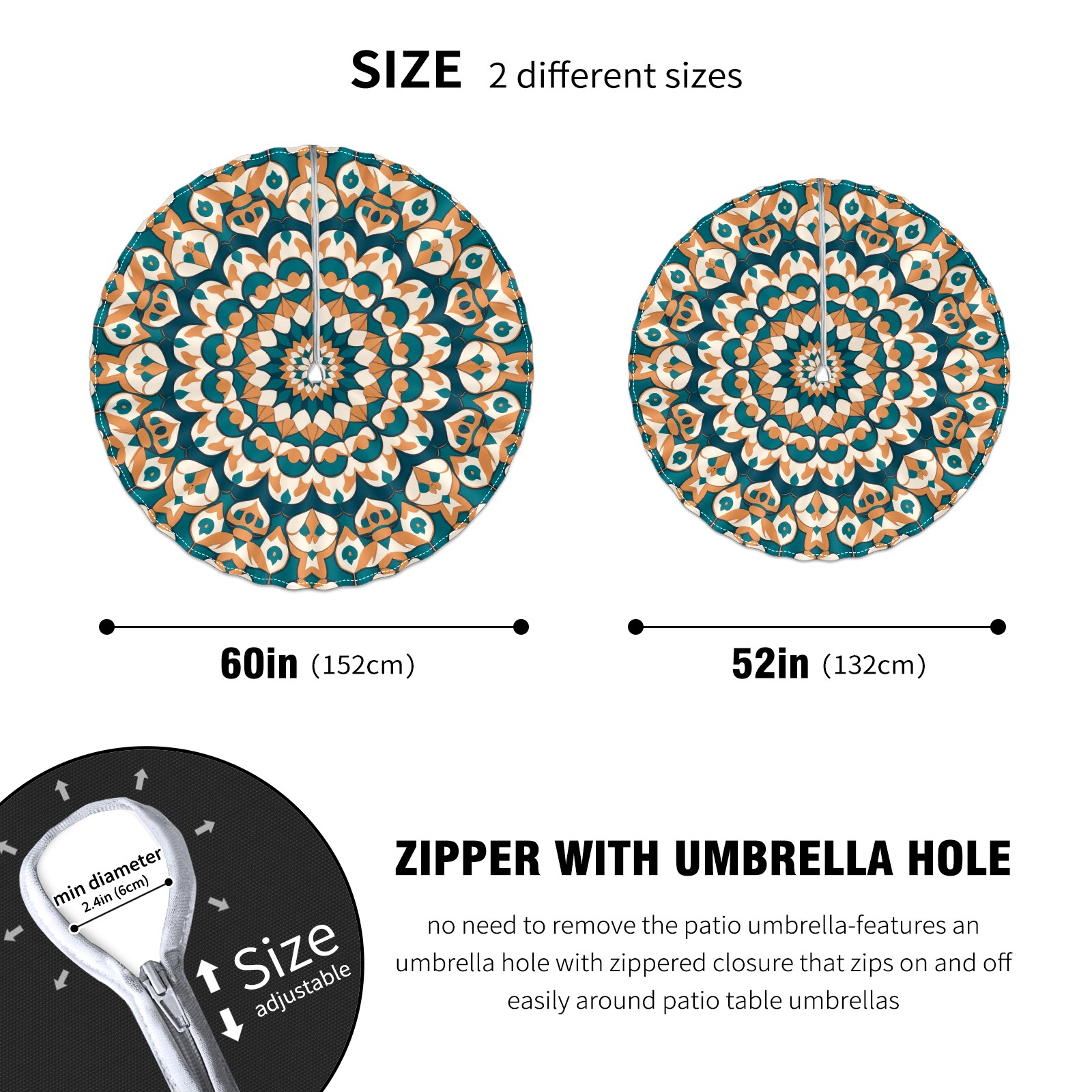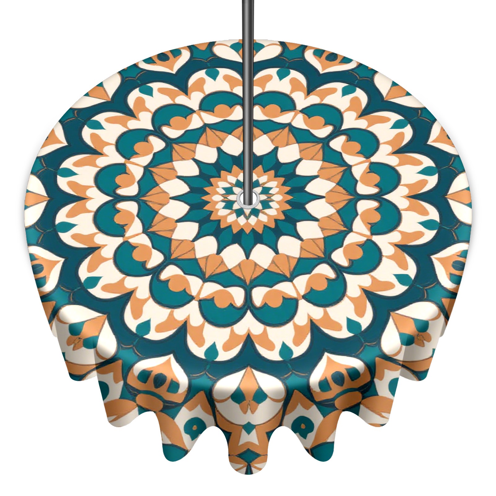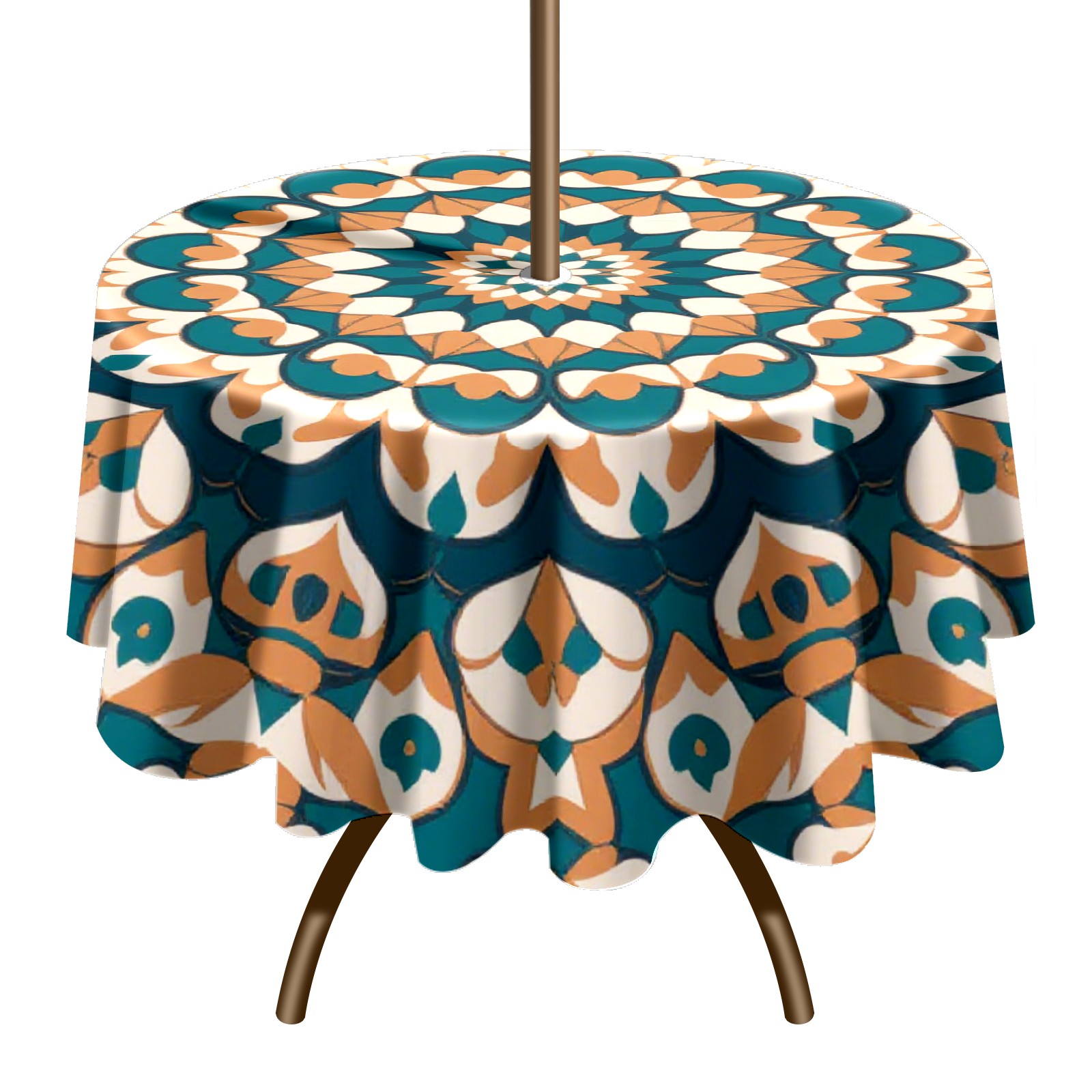 Round Tablecloth with Adjustable Zippered Hole - Durable Polyester for Patio, Restaurant & Outdoor Dining Circular Symmetrical Green (60in)