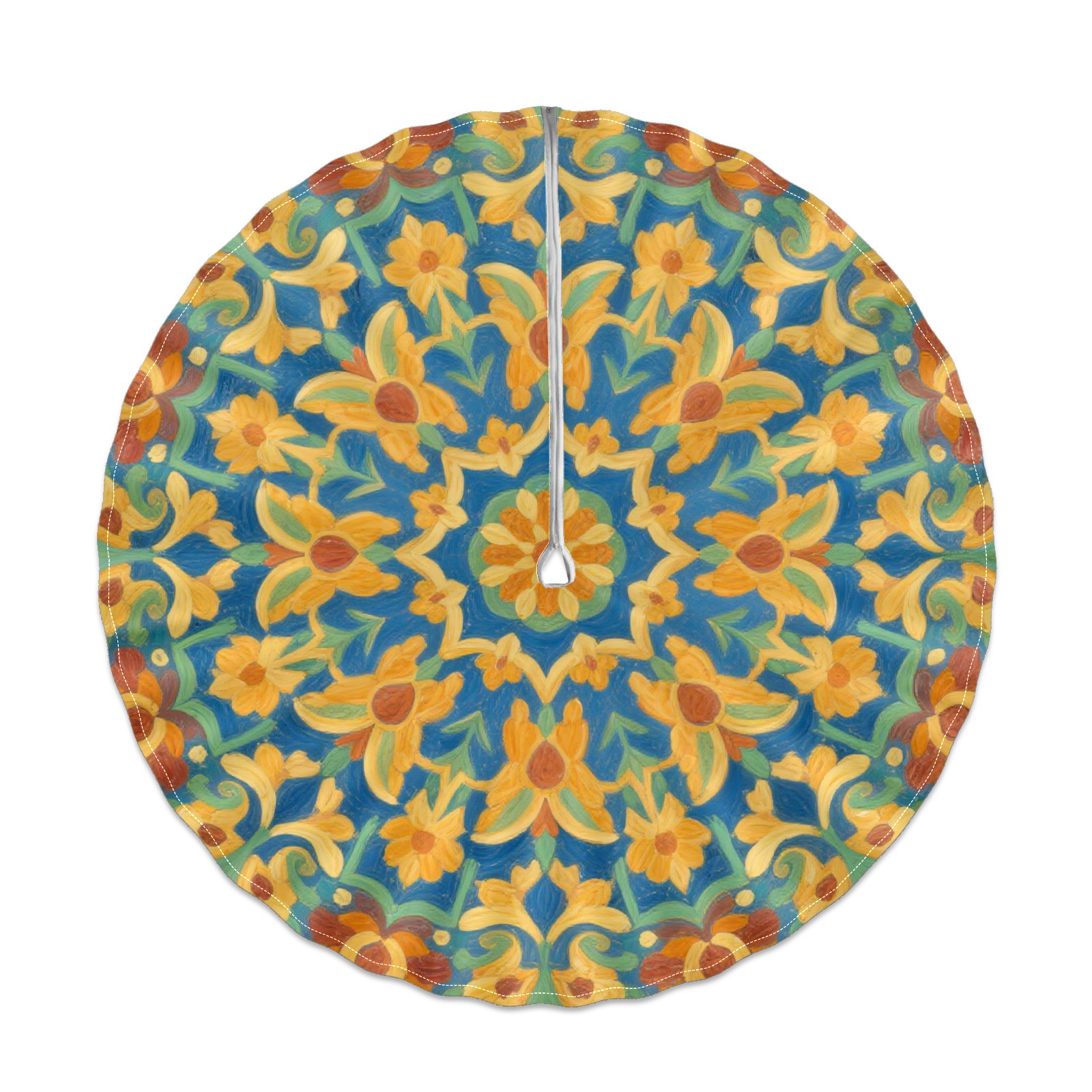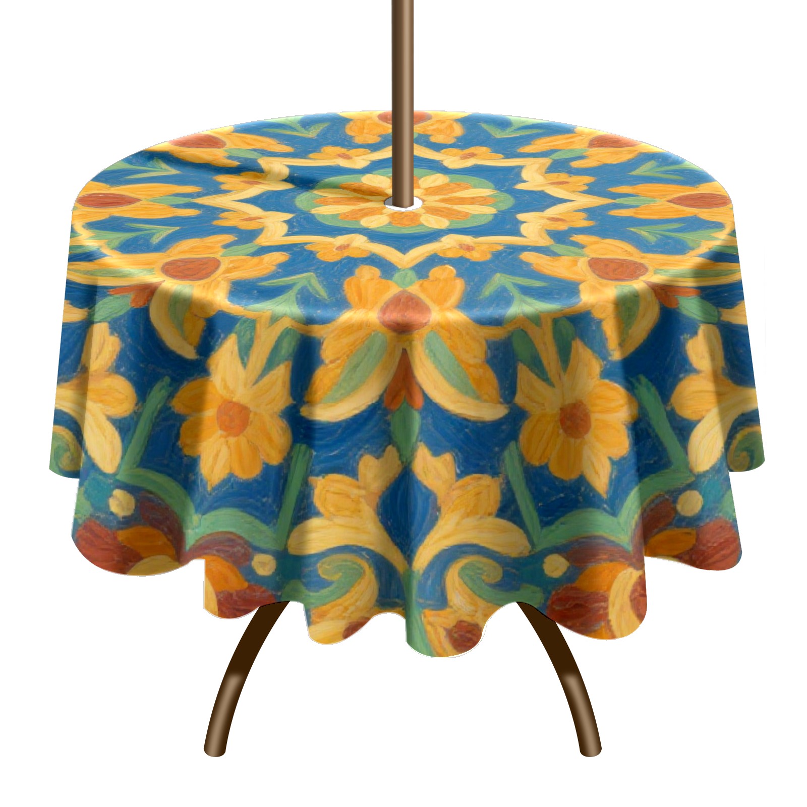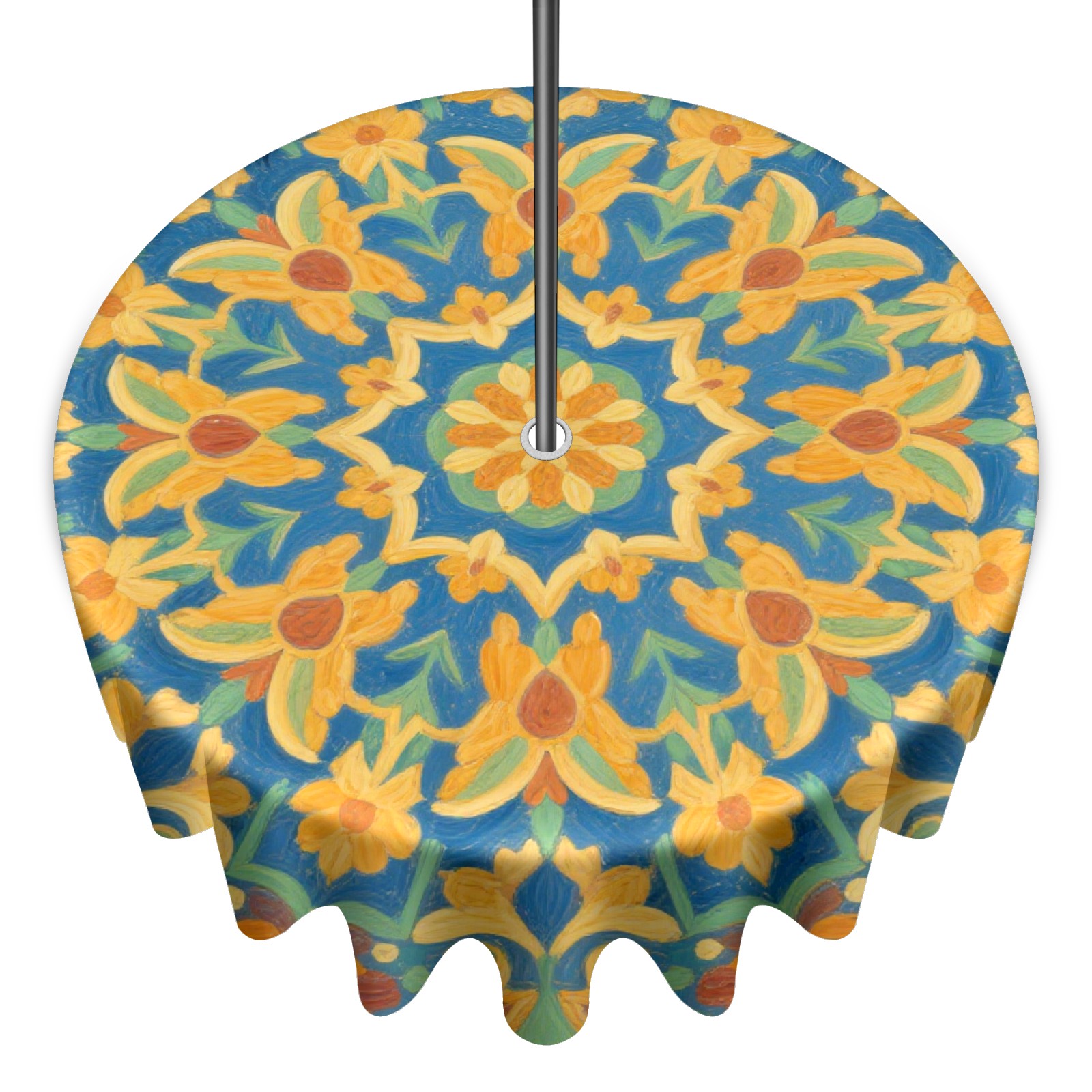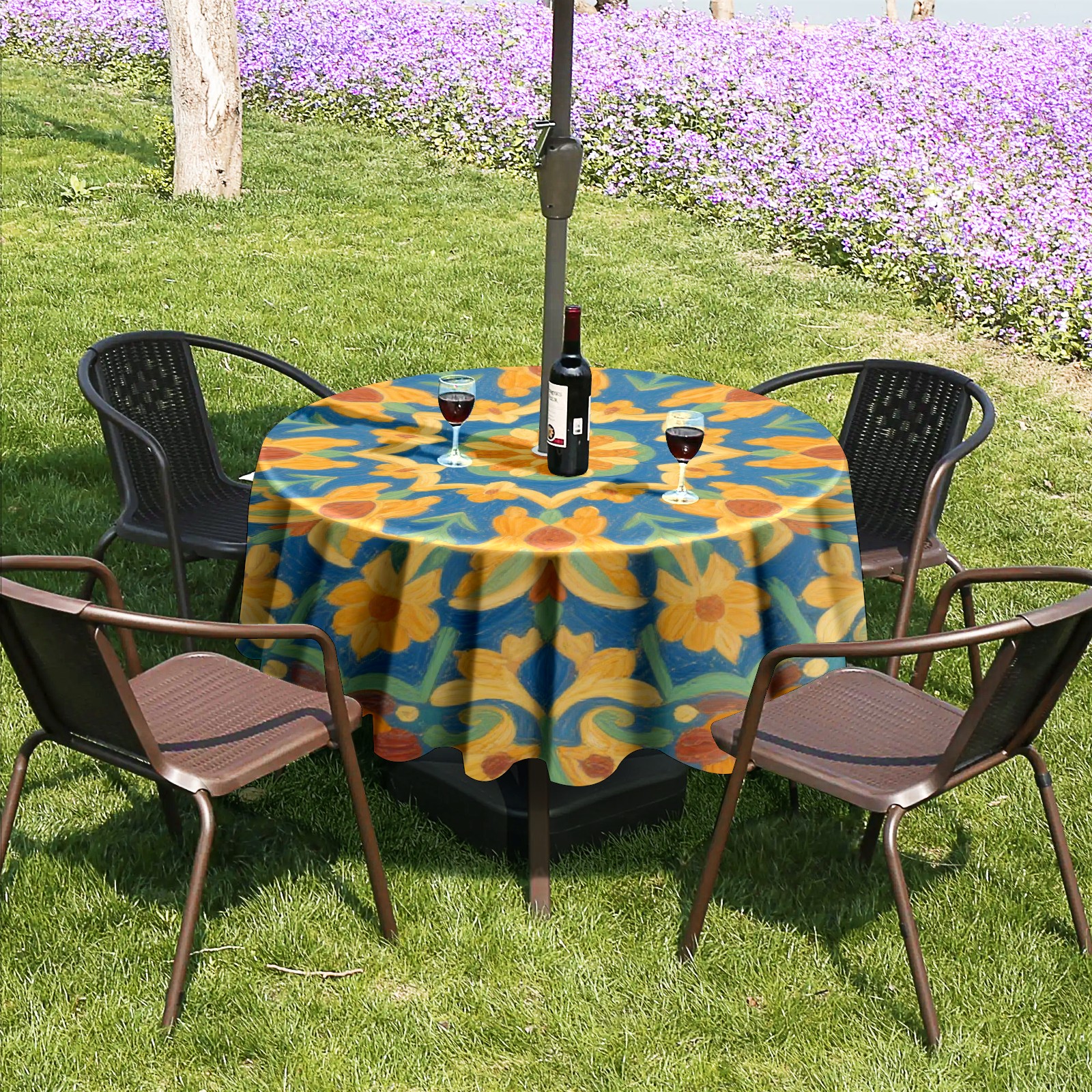 Round Tablecloth with Adjustable Zippered Hole - Durable Polyester for Patio, Restaurant & Outdoor Dining Surrounded By Orange Flowers (60in)