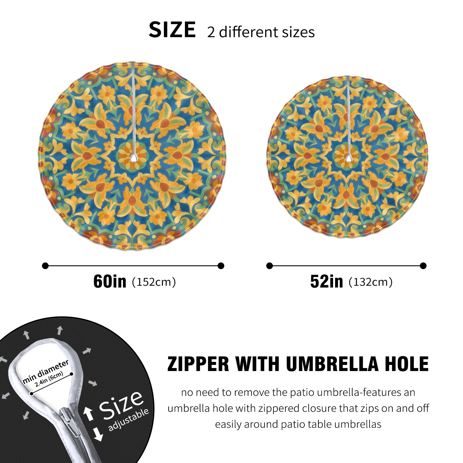 • <p>Constructed with heavy-duty polyester fabric, this tablecloth withstands outdoor wear while maintaining a clean appearance. The adjustable zipper hole accommodates umbrella poles of varying thickness, allowing installation without disassembling the umbrella stand.</p> <p>Ideal for backyard BBQs or cafe patios, this tablecloth elevates table presentation instantly. Available in two classic sizes, the precision circular cut ensures full table coverage. </p> <p>Machine washable in cold water without color fading or shape distortion. The lightweight fabric folds compactly for space-efficient storage between uses.</p>