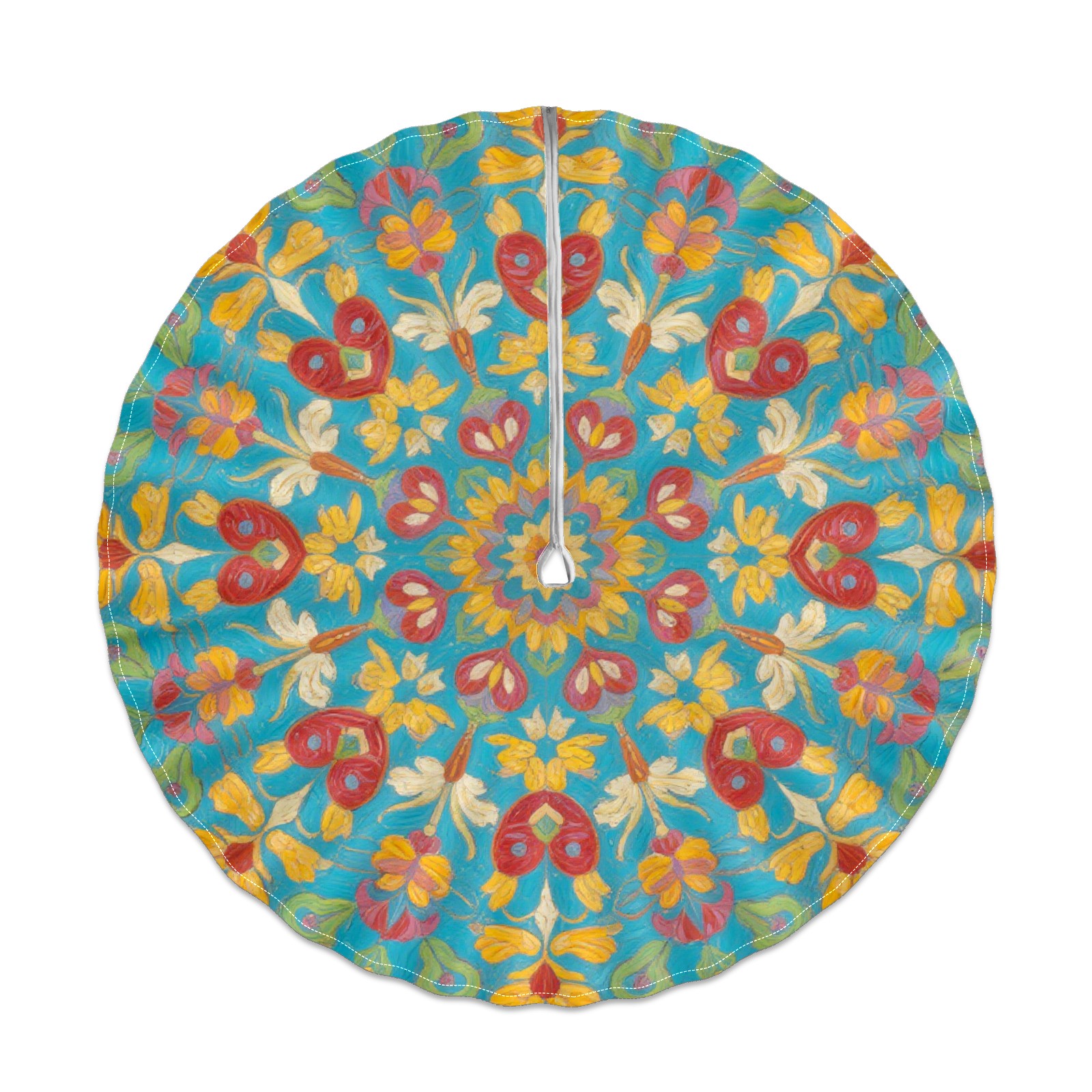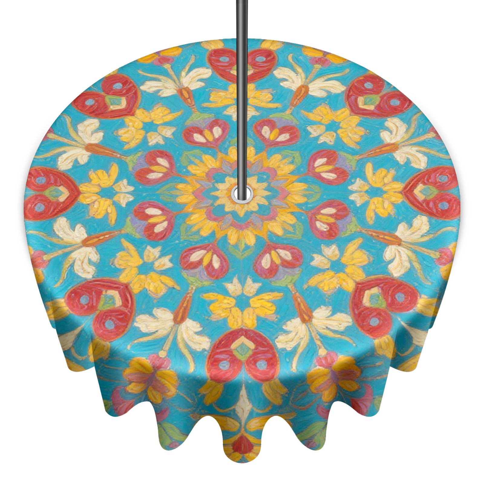 Round Tablecloth with Adjustable Zippered Hole - Durable Polyester for Patio, Restaurant & Outdoor Dining Green Background With Red Flowers (60in)