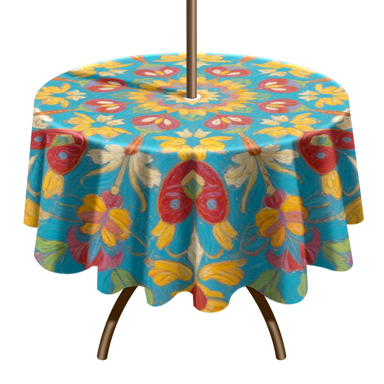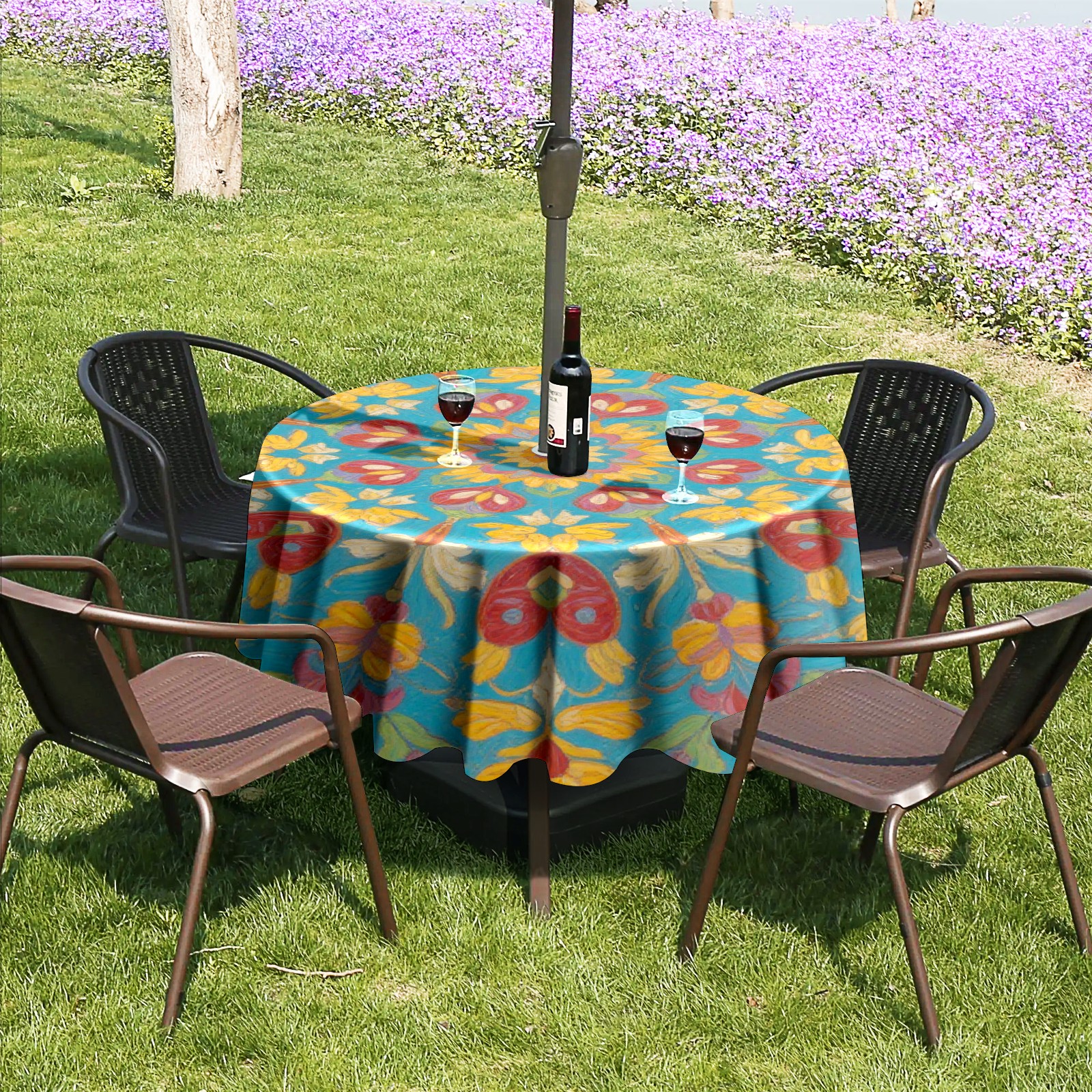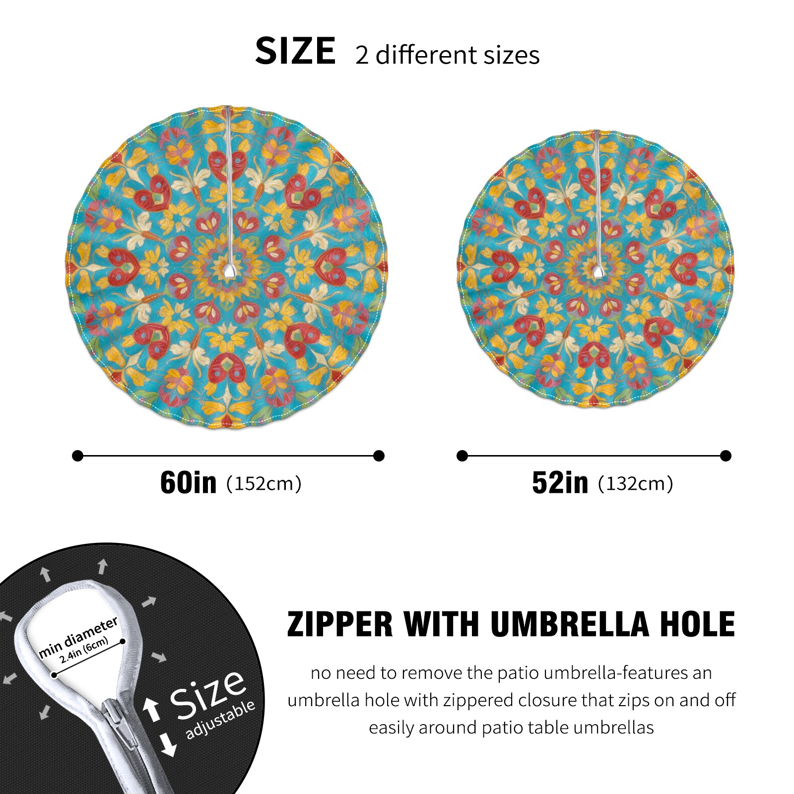 • <p>Constructed with heavy-duty polyester fabric, this tablecloth withstands outdoor wear while maintaining a clean appearance. The adjustable zipper hole accommodates umbrella poles of varying thickness, allowing installation without disassembling the umbrella stand.</p> <p>Ideal for backyard BBQs or cafe patios, this tablecloth elevates table presentation instantly. Available in two classic sizes, the precision circular cut ensures full table coverage. </p> <p>Machine washable in cold water without color fading or shape distortion. The lightweight fabric folds compactly for space-efficient storage between uses.</p>