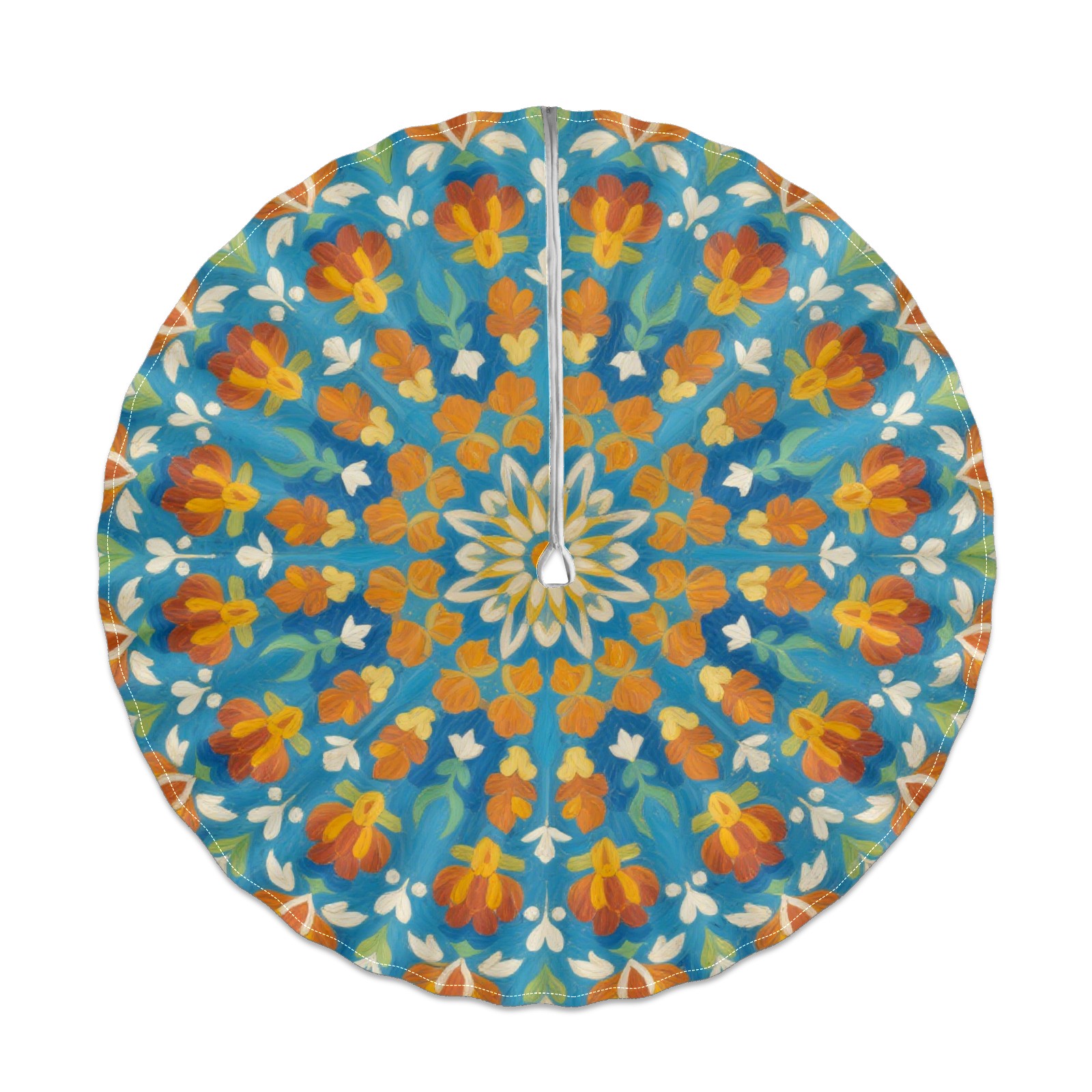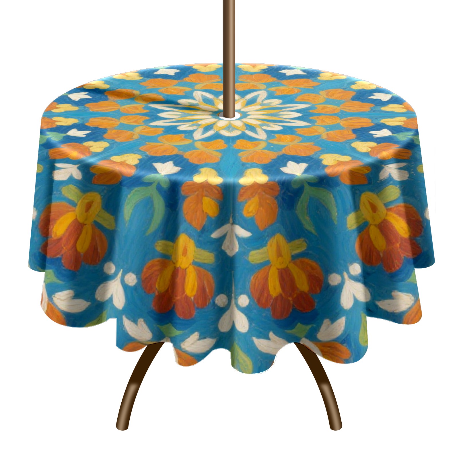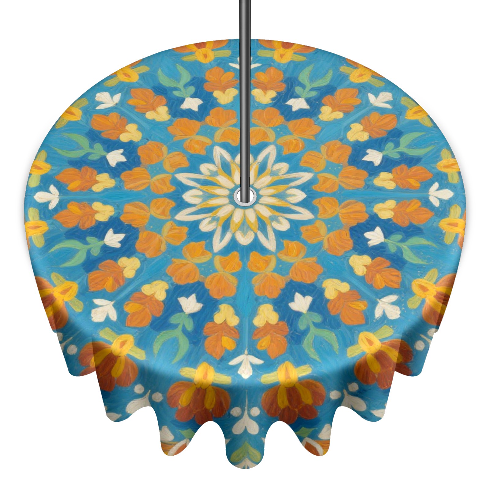 Round Tablecloth with Adjustable Zippered Hole - Durable Polyester for Patio, Restaurant & Outdoor Dining Blue Background Symmetrical Pattern (60in)