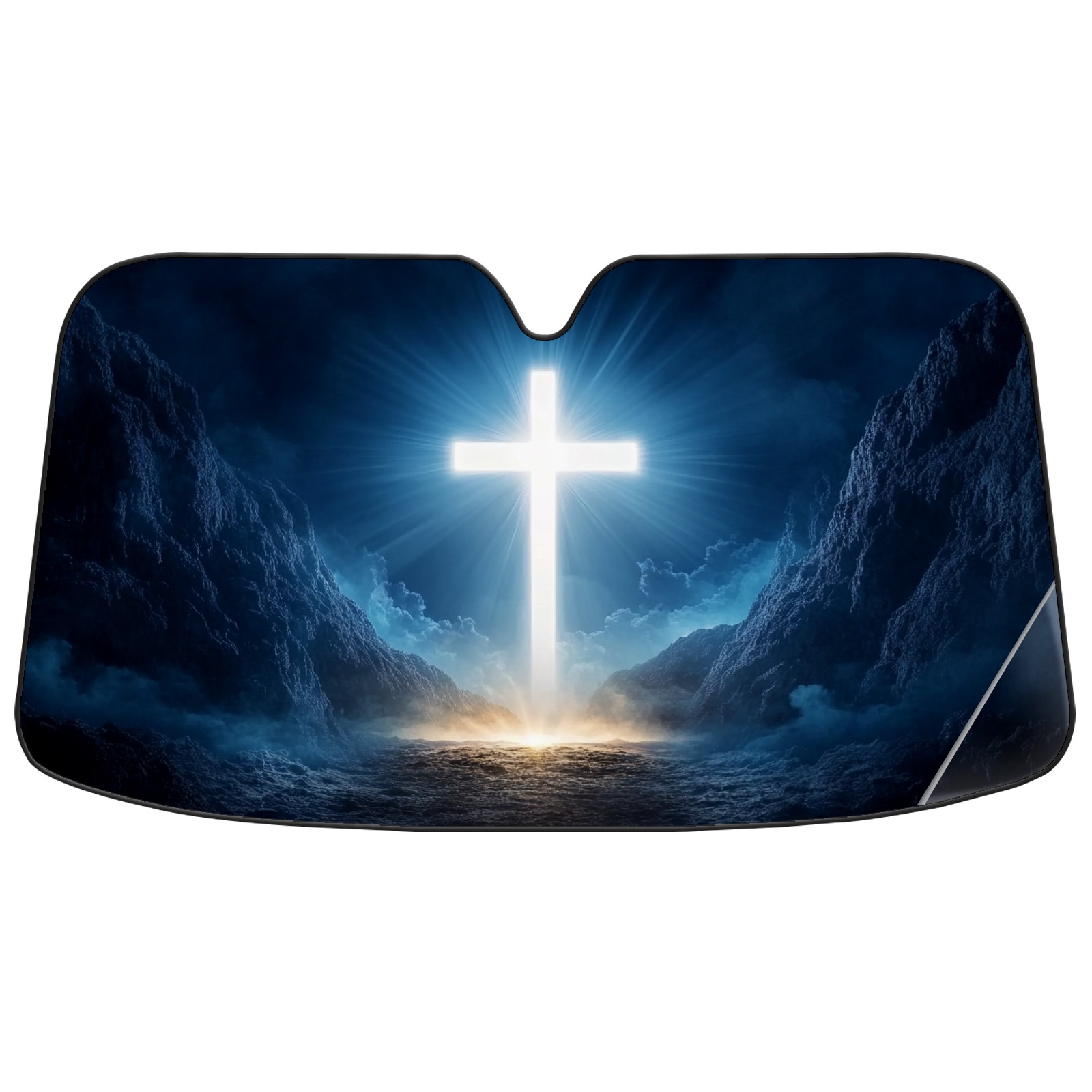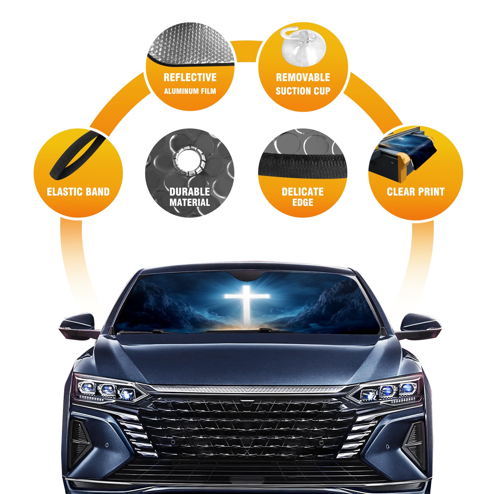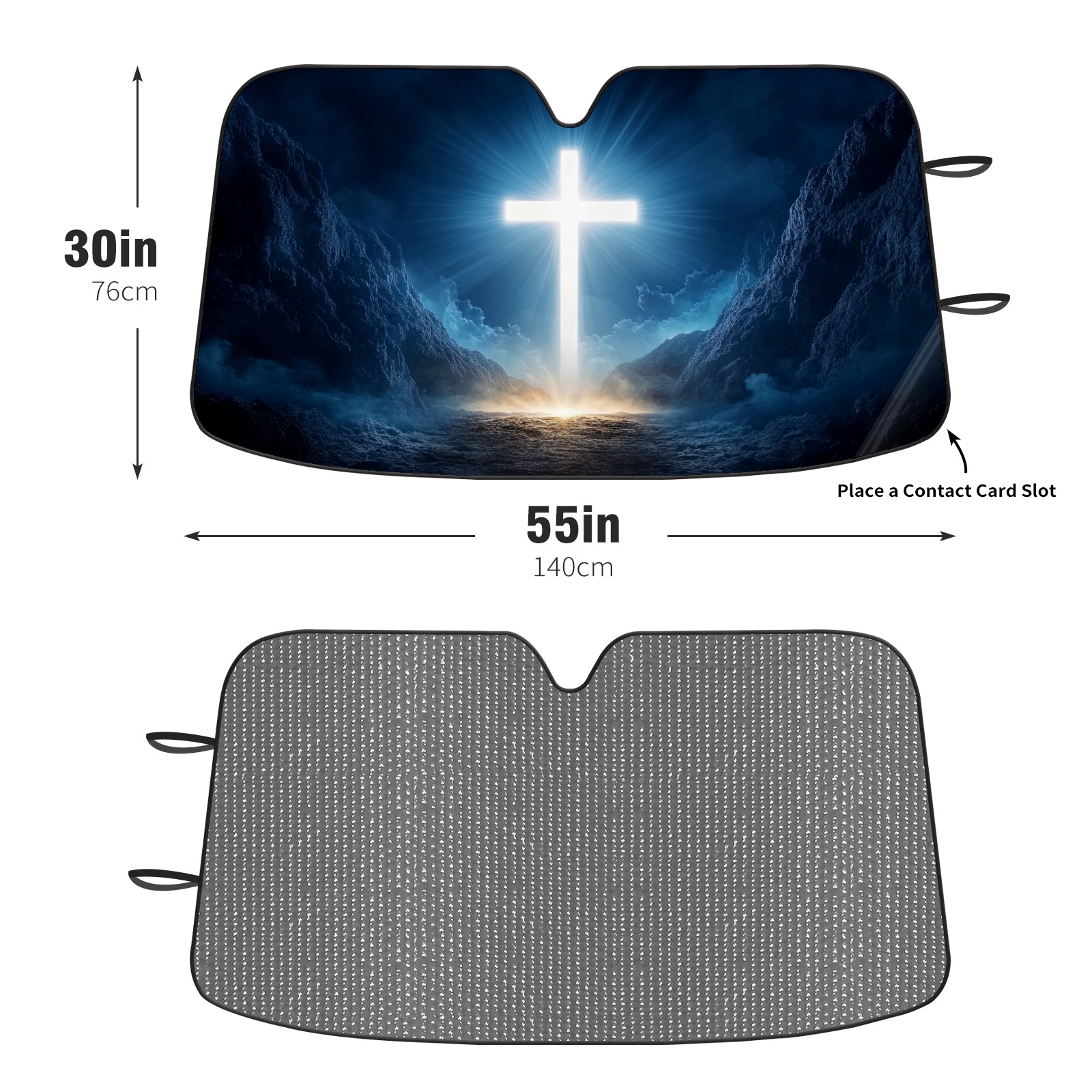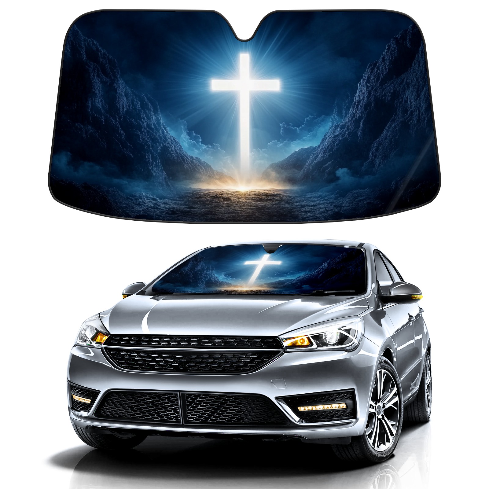 SAVHOQIR Car Sun Shade Foldable Cross White Windshield Sun Shade 55''x30'' Vehicle Front Window Shade Protector for SUV Truck Car Sun Visor Blocks UV Rays