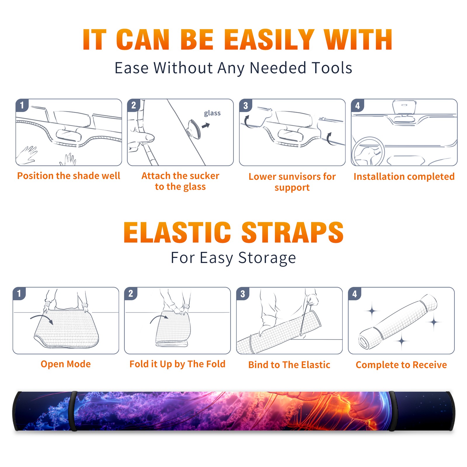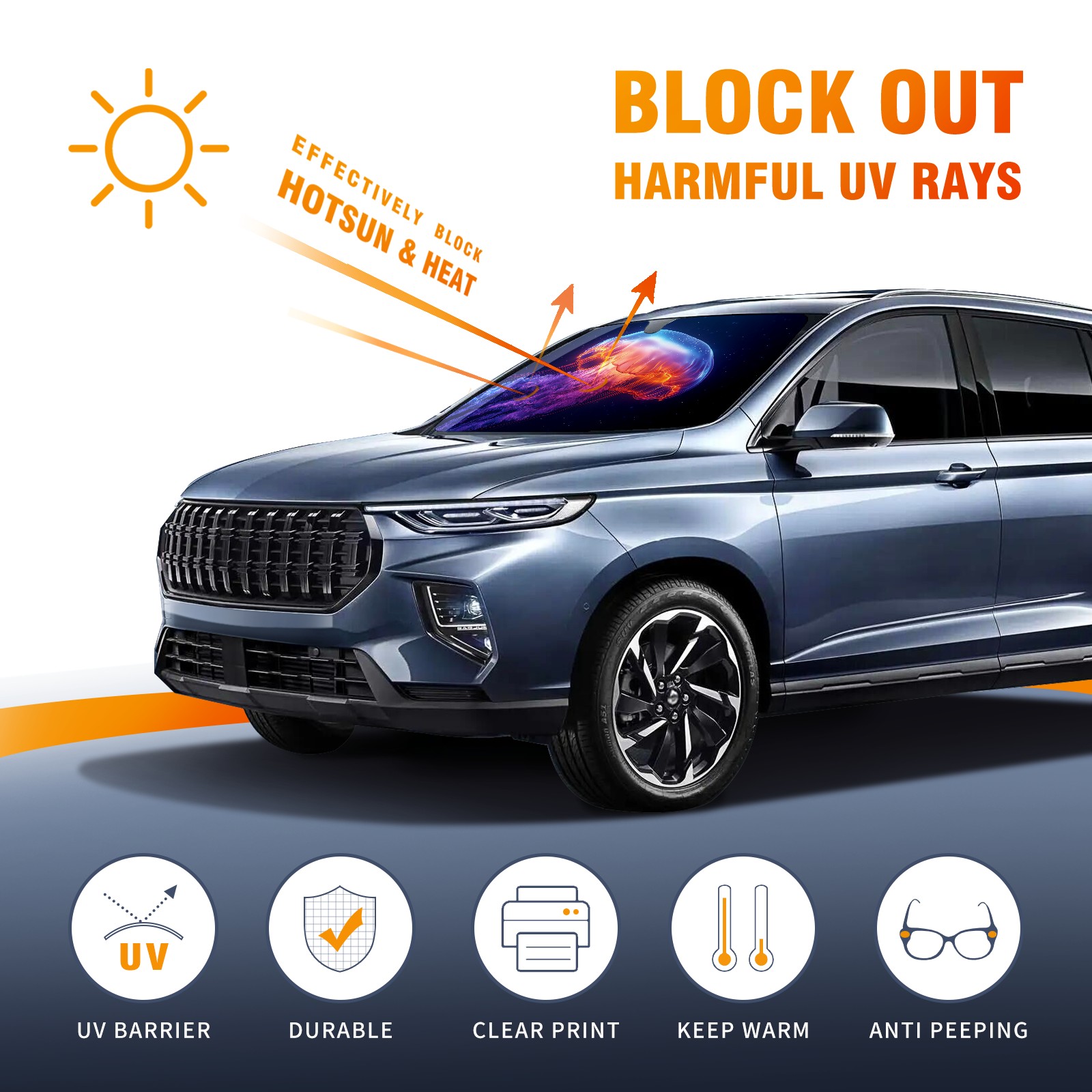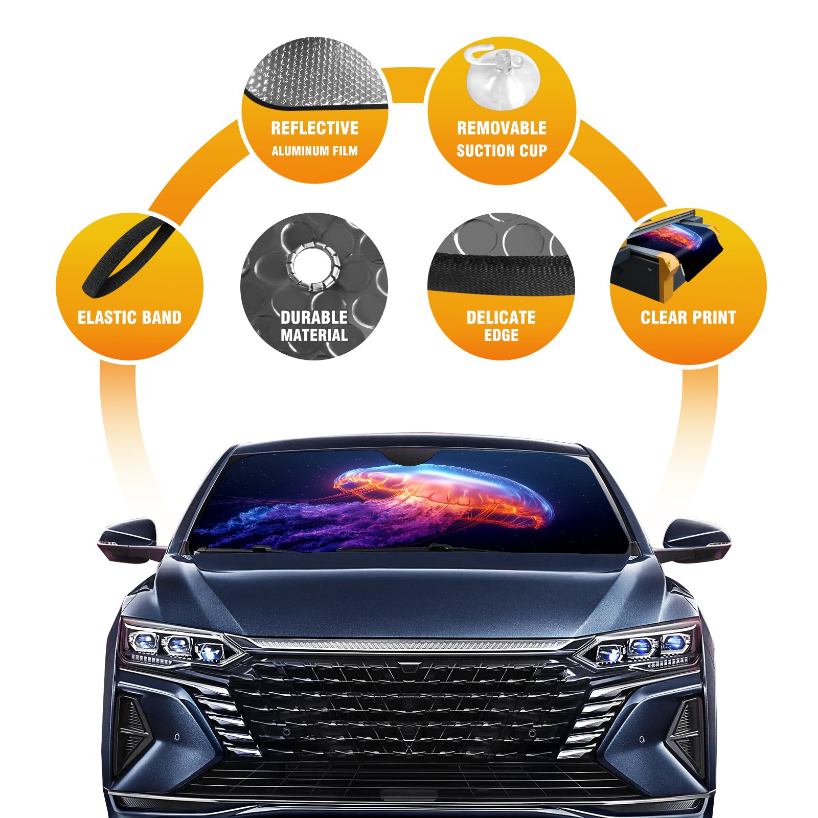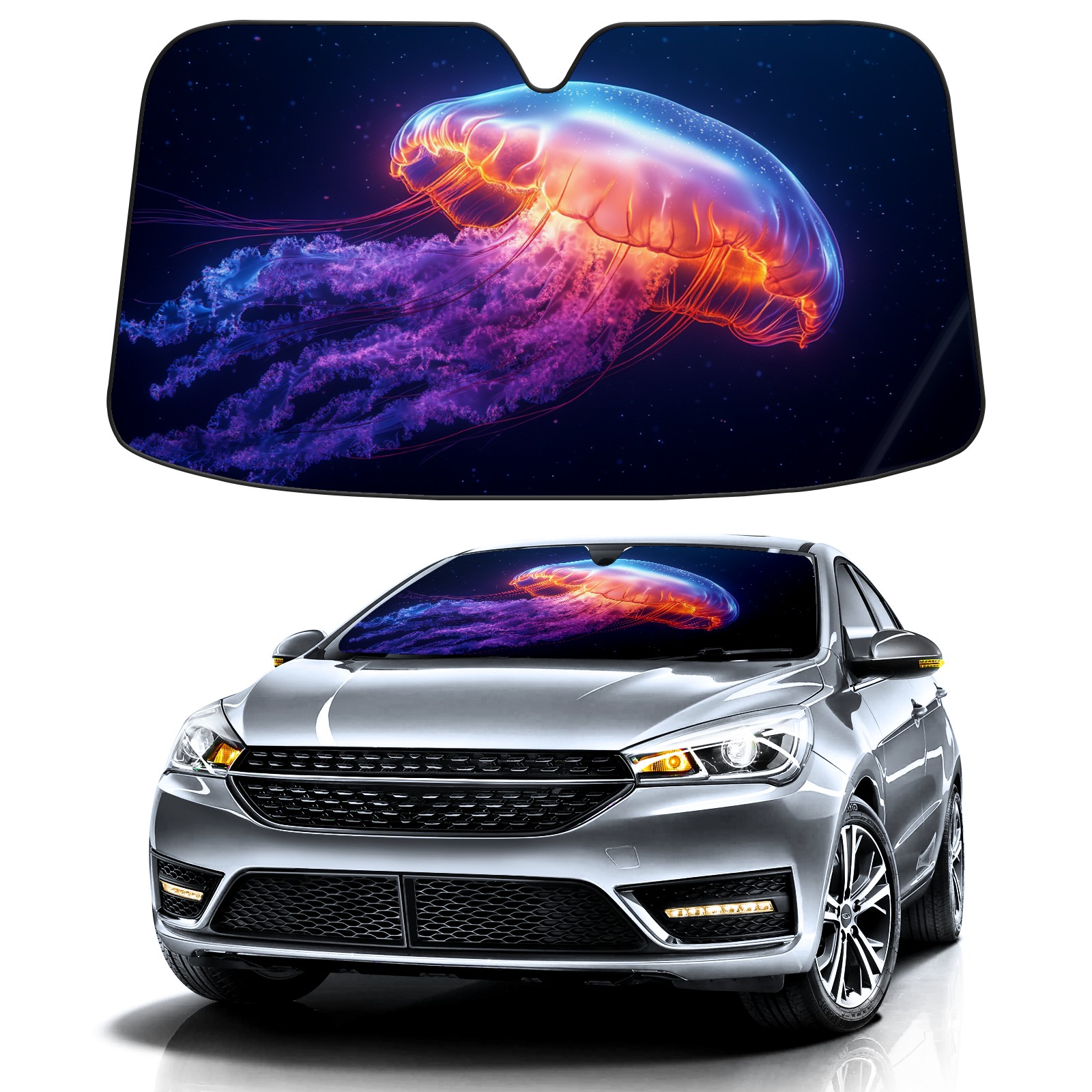 SAVHOQIR Car Sun Shade Foldable Jellyfish Windshield Sun Shade 55''x30'' Vehicle Front Window Shade Protector for SUV Truck Car Sun Visor Blocks UV Rays