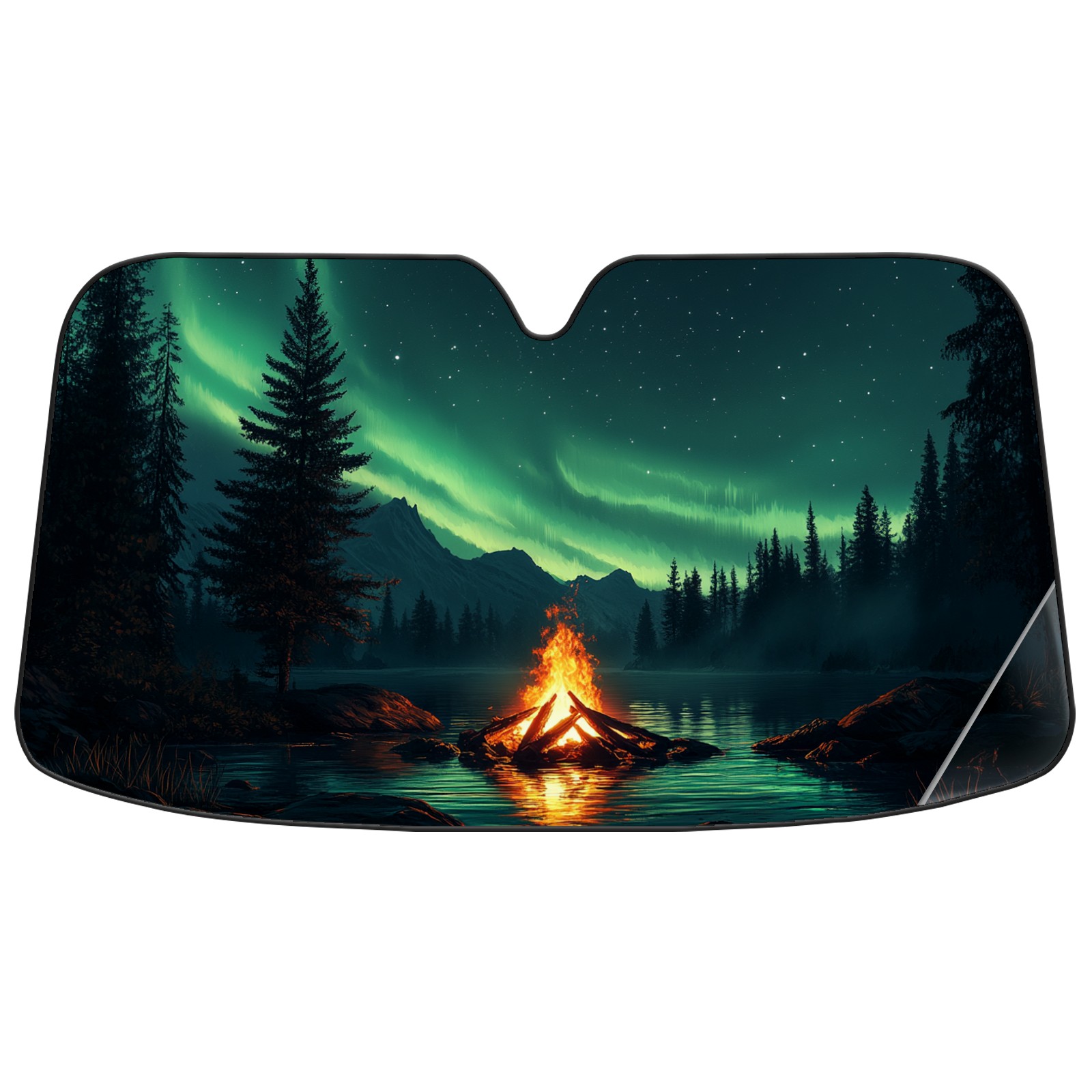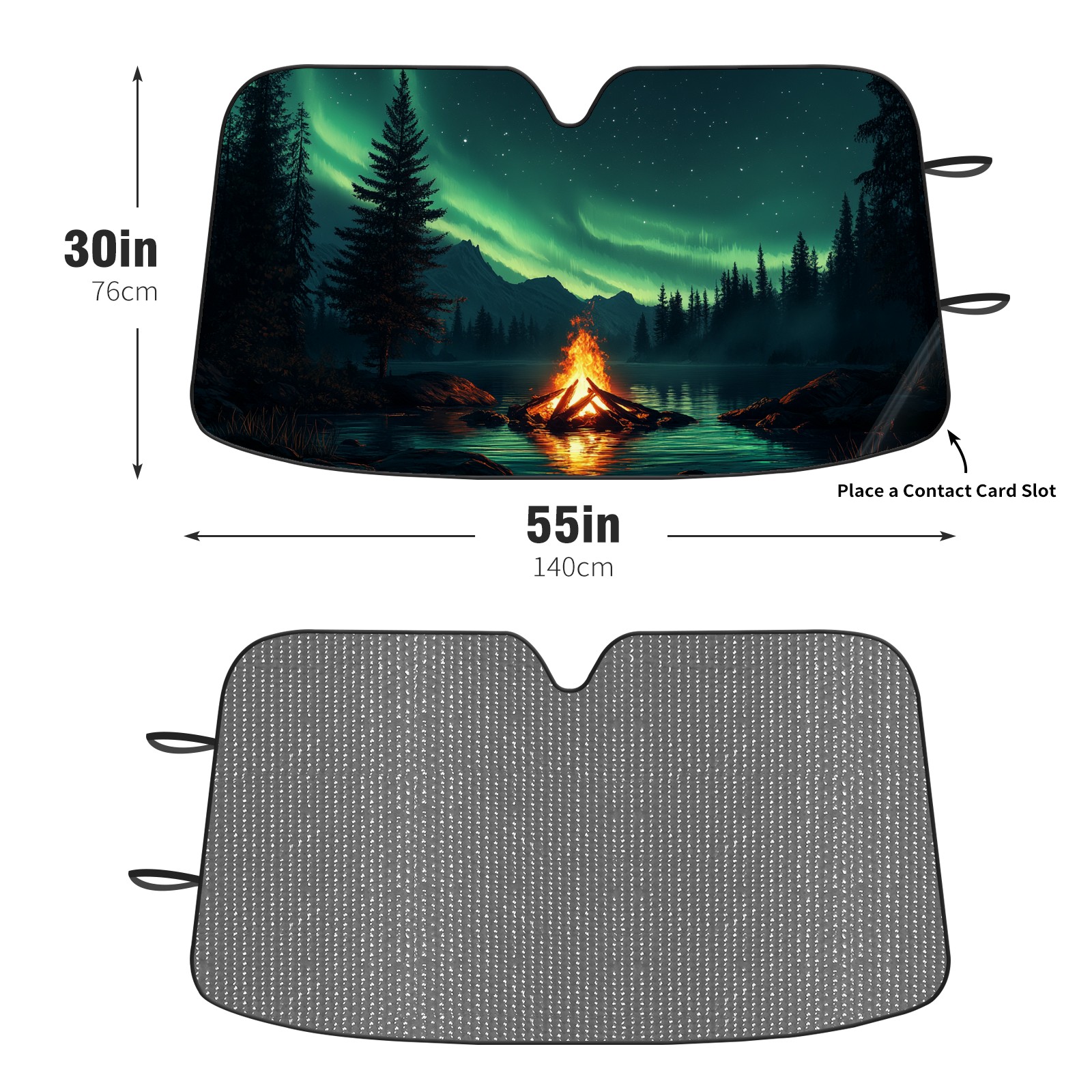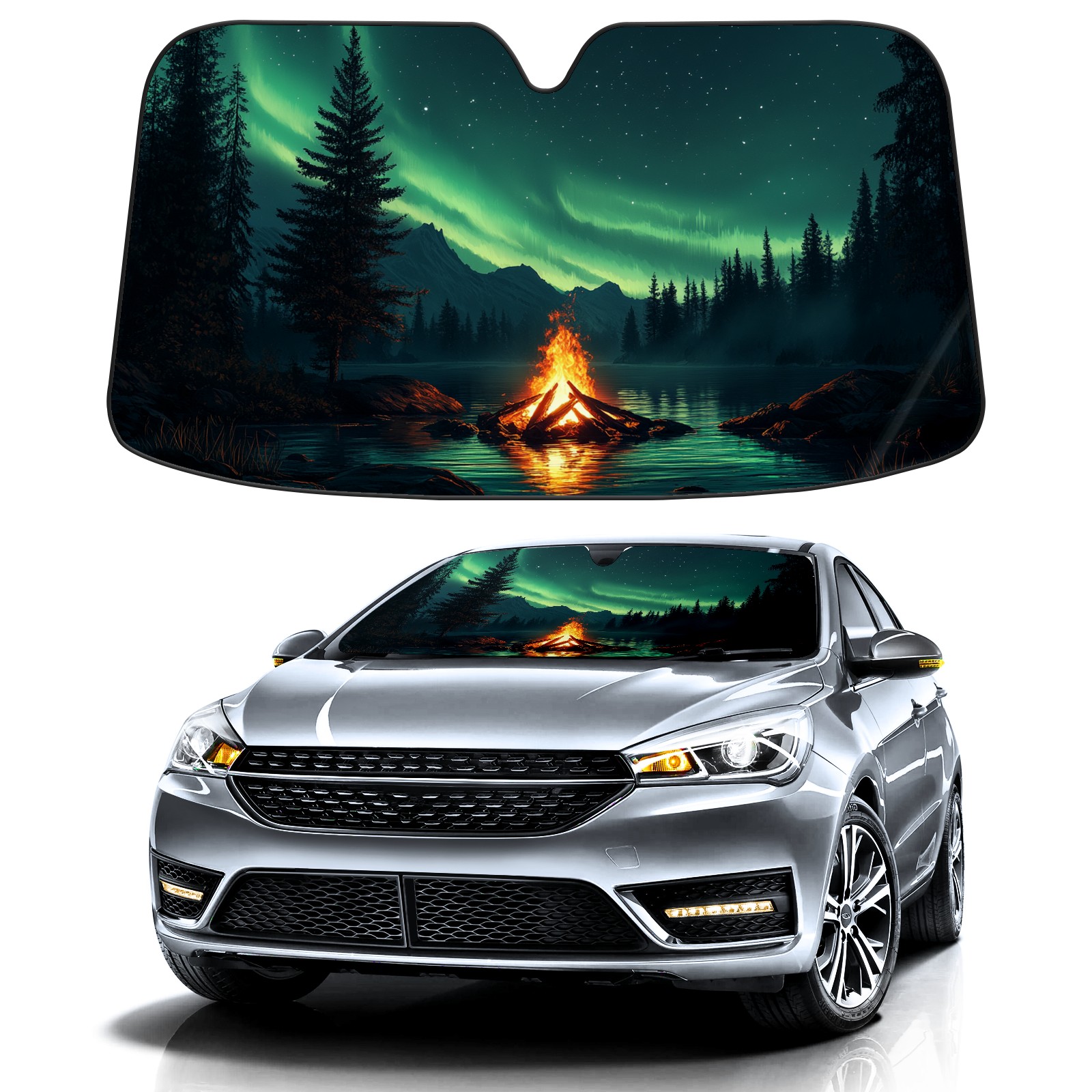 SAVHOQIR Car Sun Shade Foldable Aurora Campfire Windshield Sun Shade 55''x30'' Vehicle Front Window Shade Protector for SUV Truck Car Sun Visor Blocks UV Rays