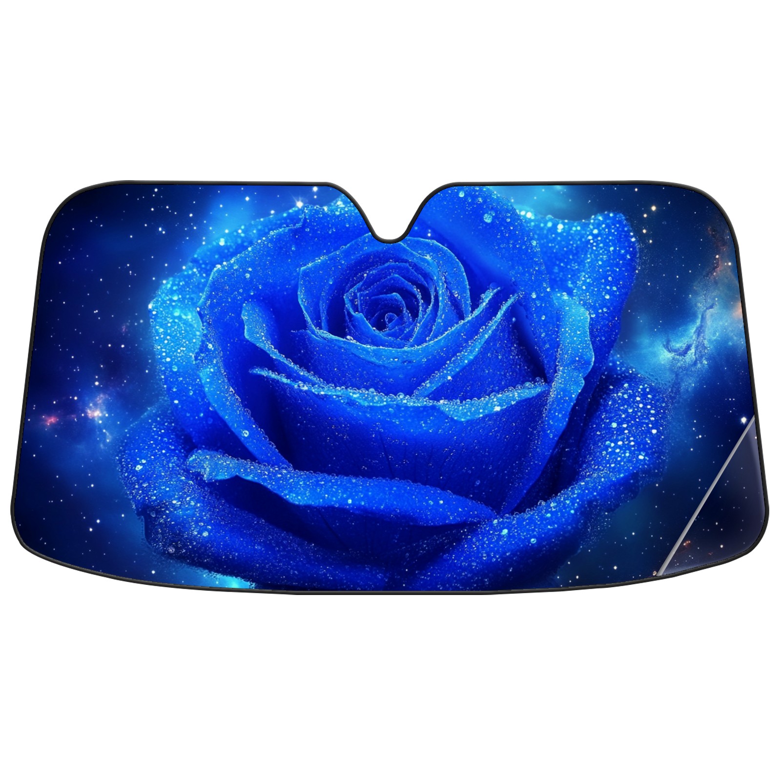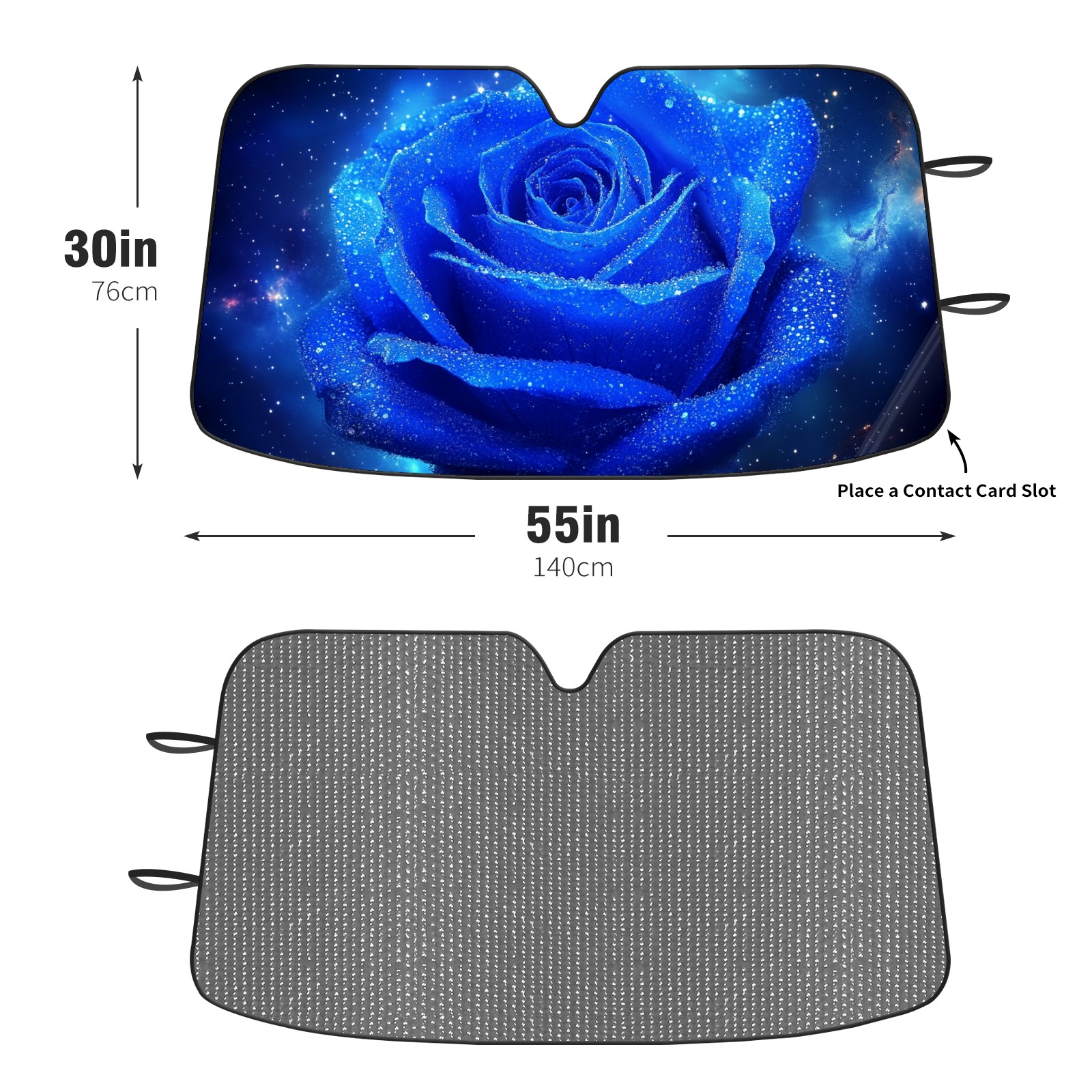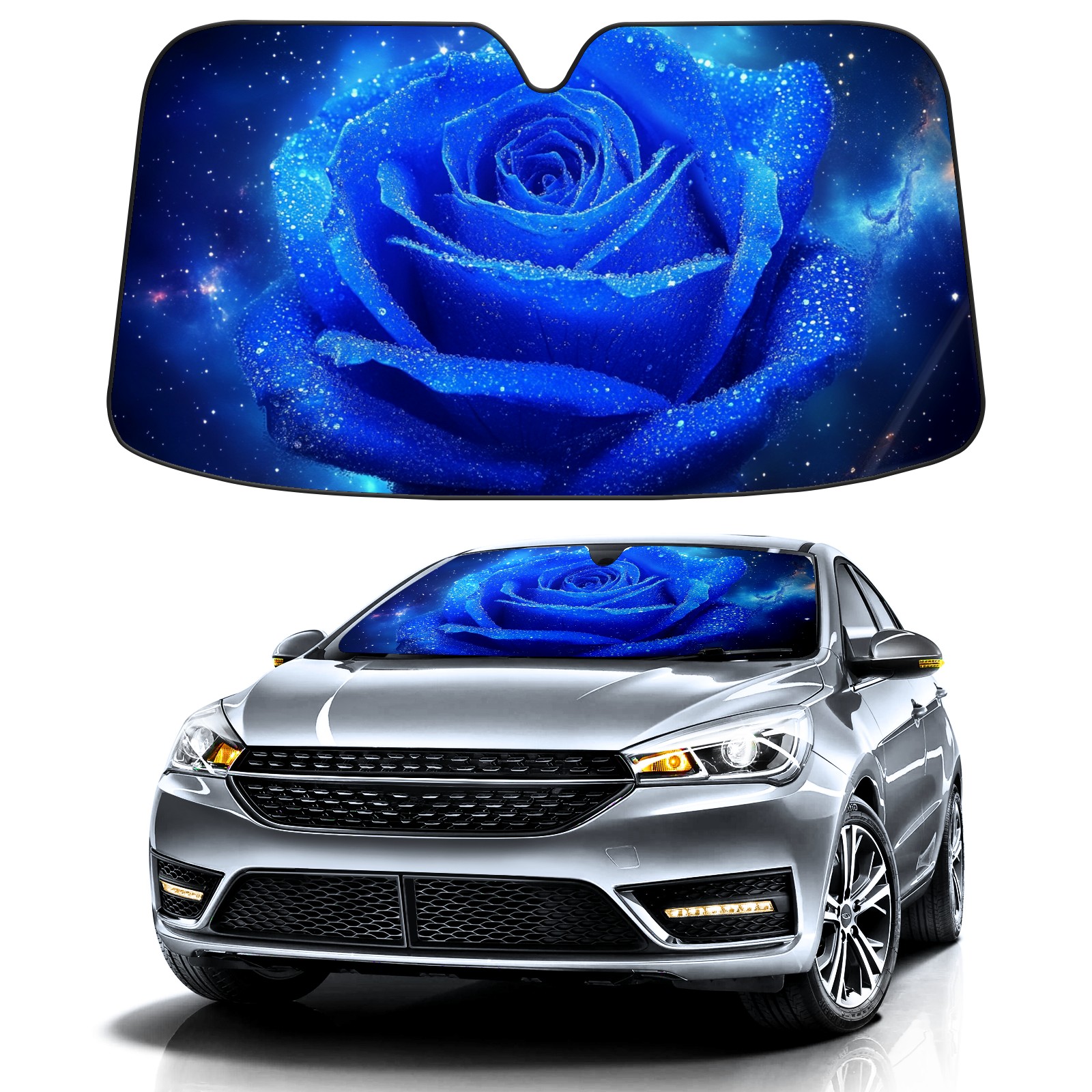 SAVHOQIR Car Sun Shade Foldable Blue Rose Windshield Sun Shade 55''x30'' Vehicle Front Window Shade Protector for SUV Truck Car Sun Visor Blocks UV Rays