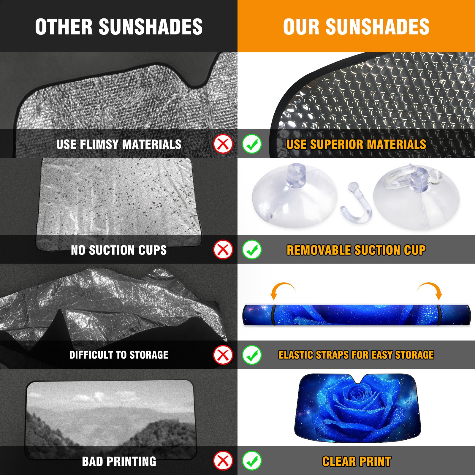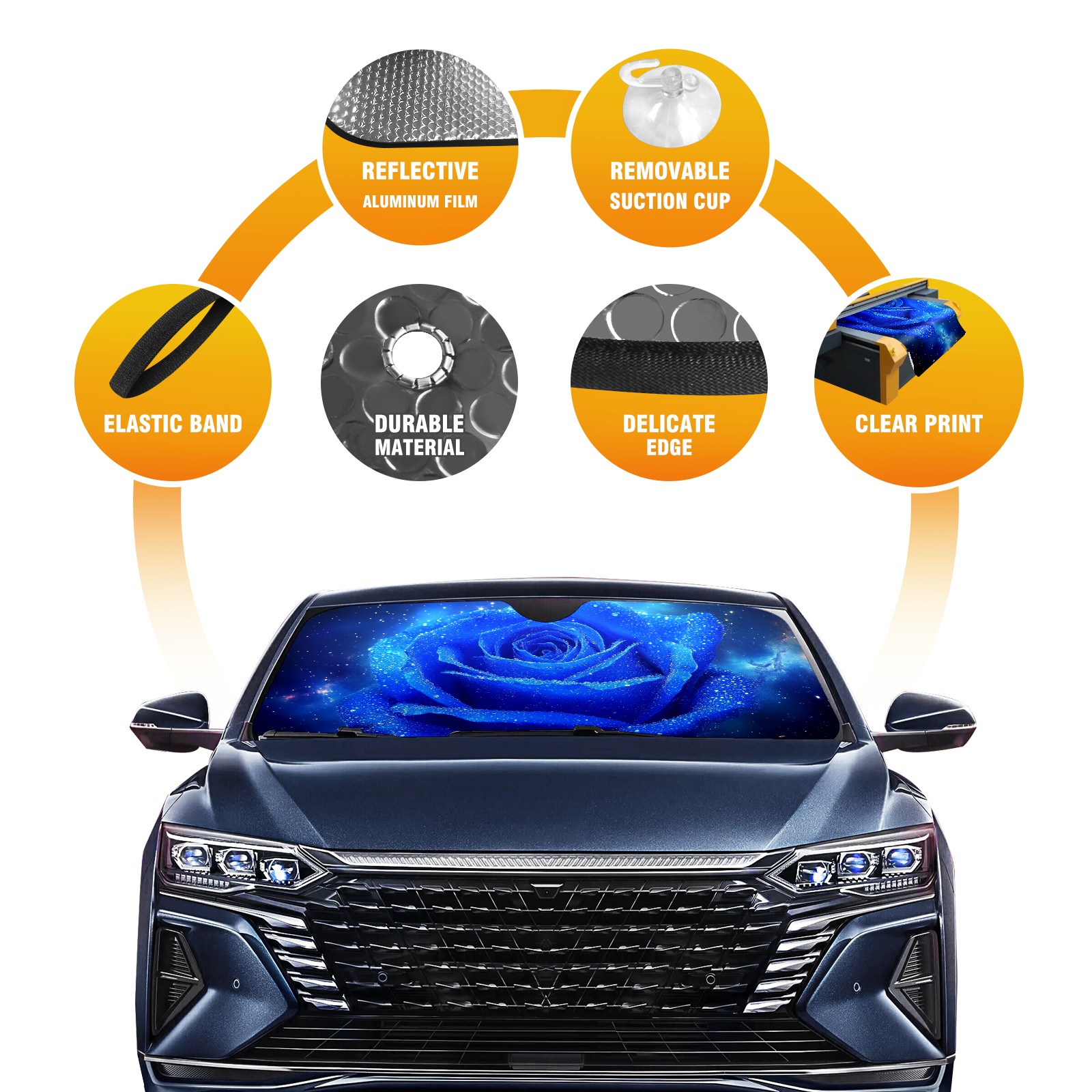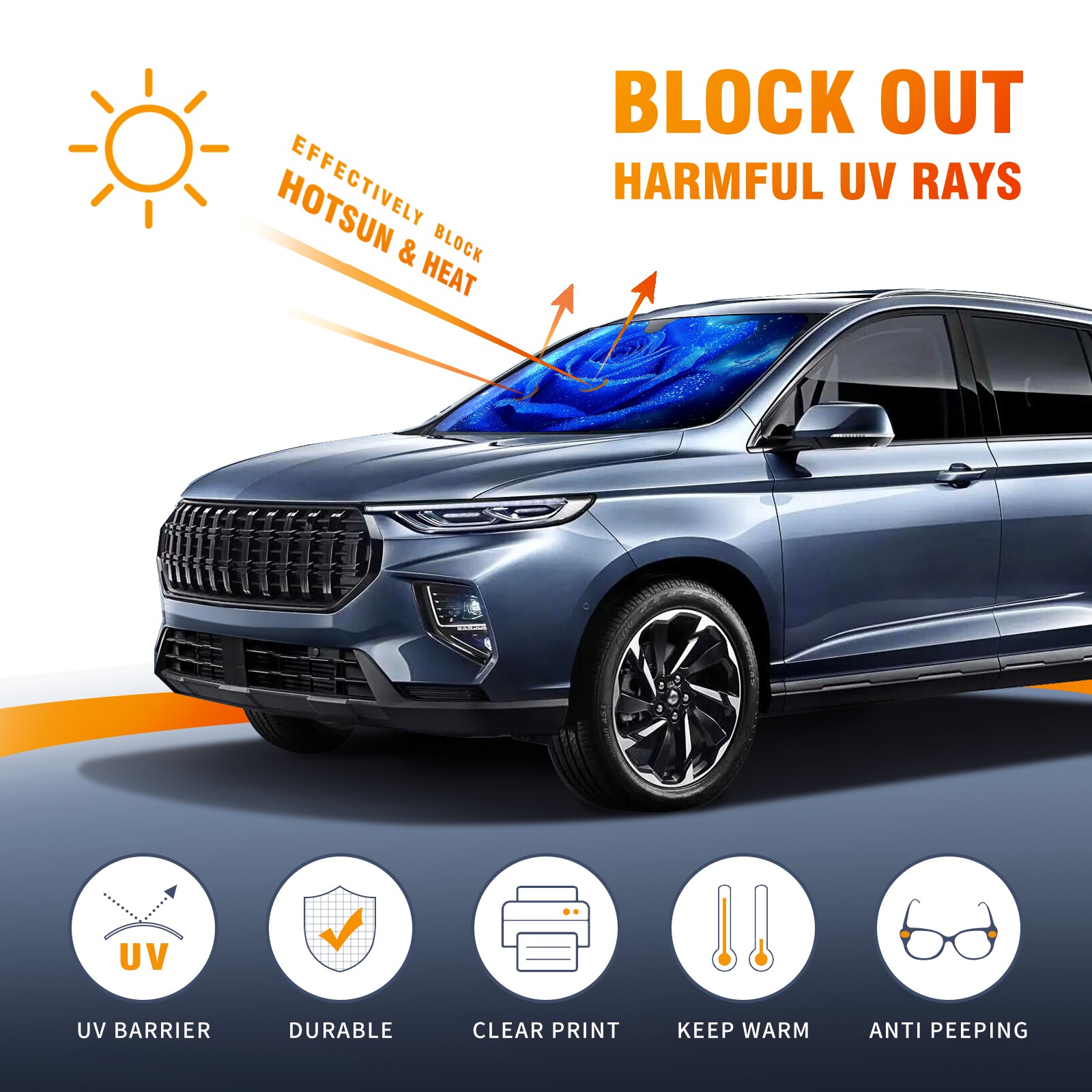 SAVHOQIR Car Sun Shade Foldable Blue Rose Windshield Sun Shade 55''x30'' Vehicle Front Window Shade Protector for SUV Truck Car Sun Visor Blocks UV Rays