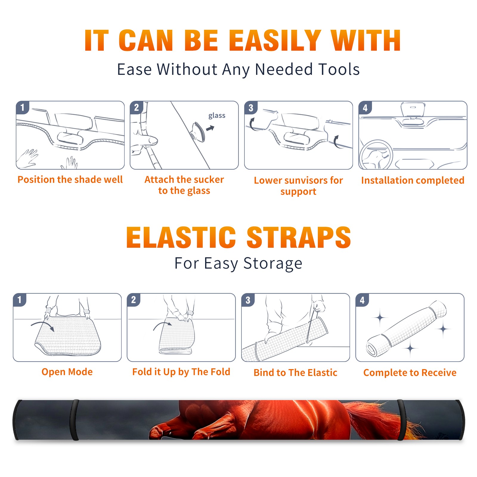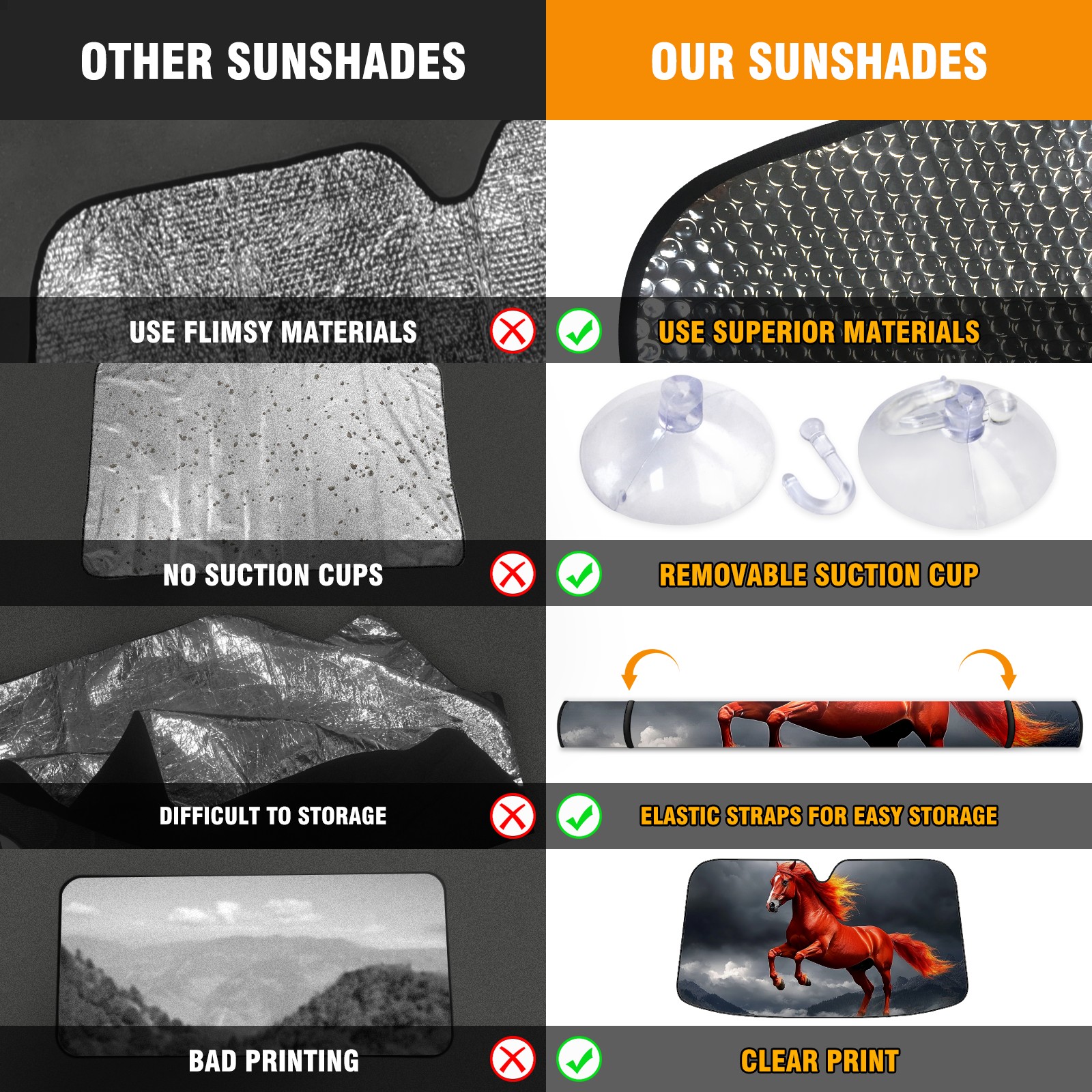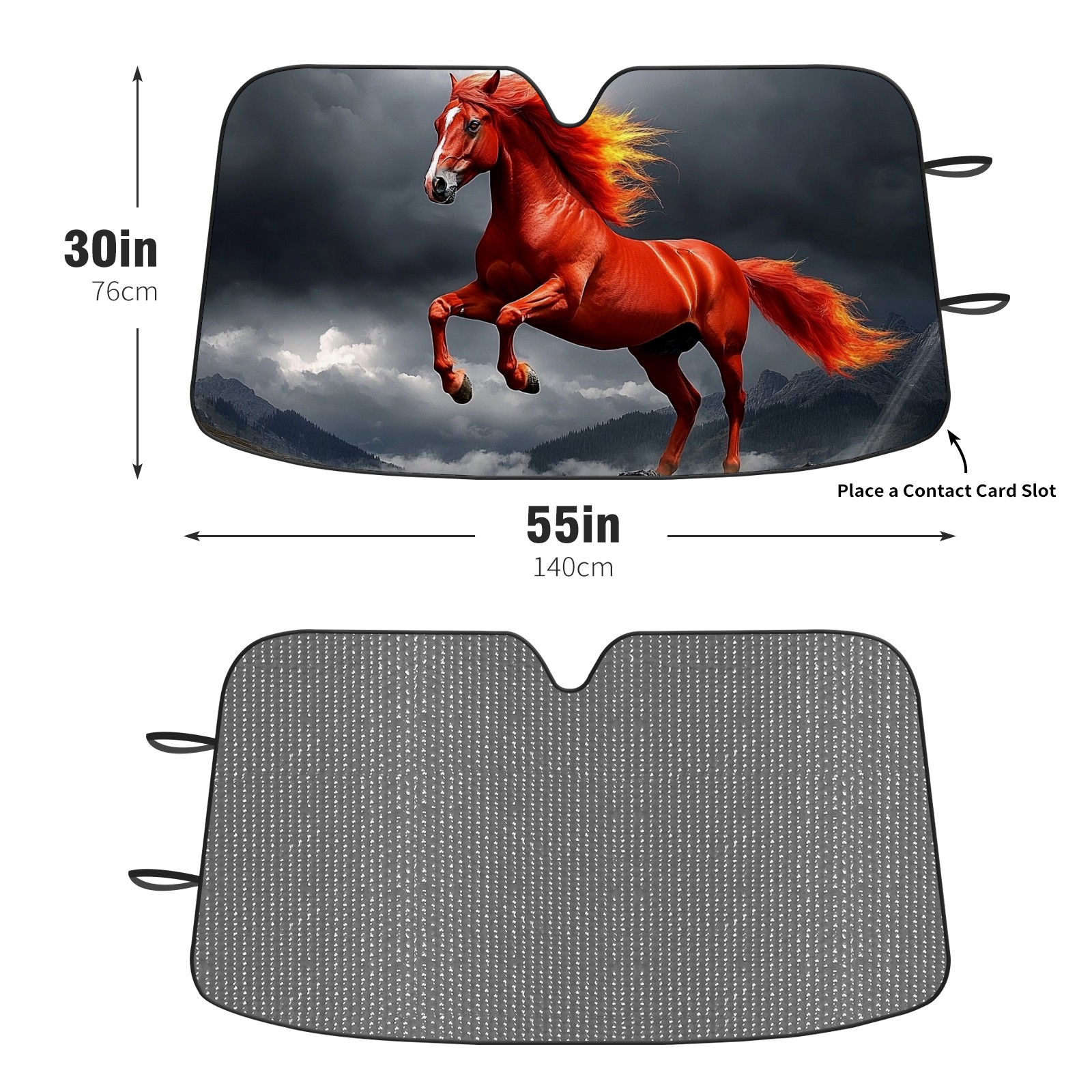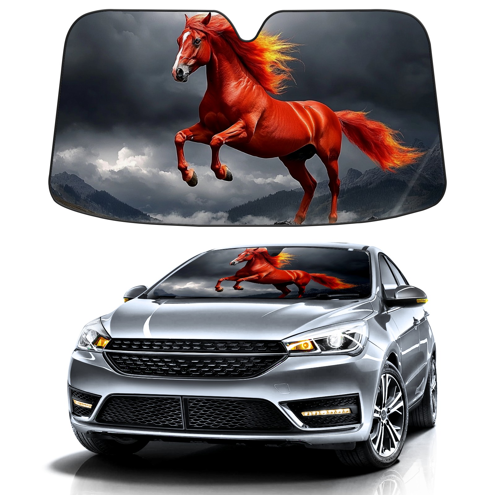 SAVHOQIR Car Sun Shade Foldable Red Horse Windshield Sun Shade 55''x30'' Vehicle Front Window Shade Protector for SUV Truck Car Sun Visor Blocks UV Rays