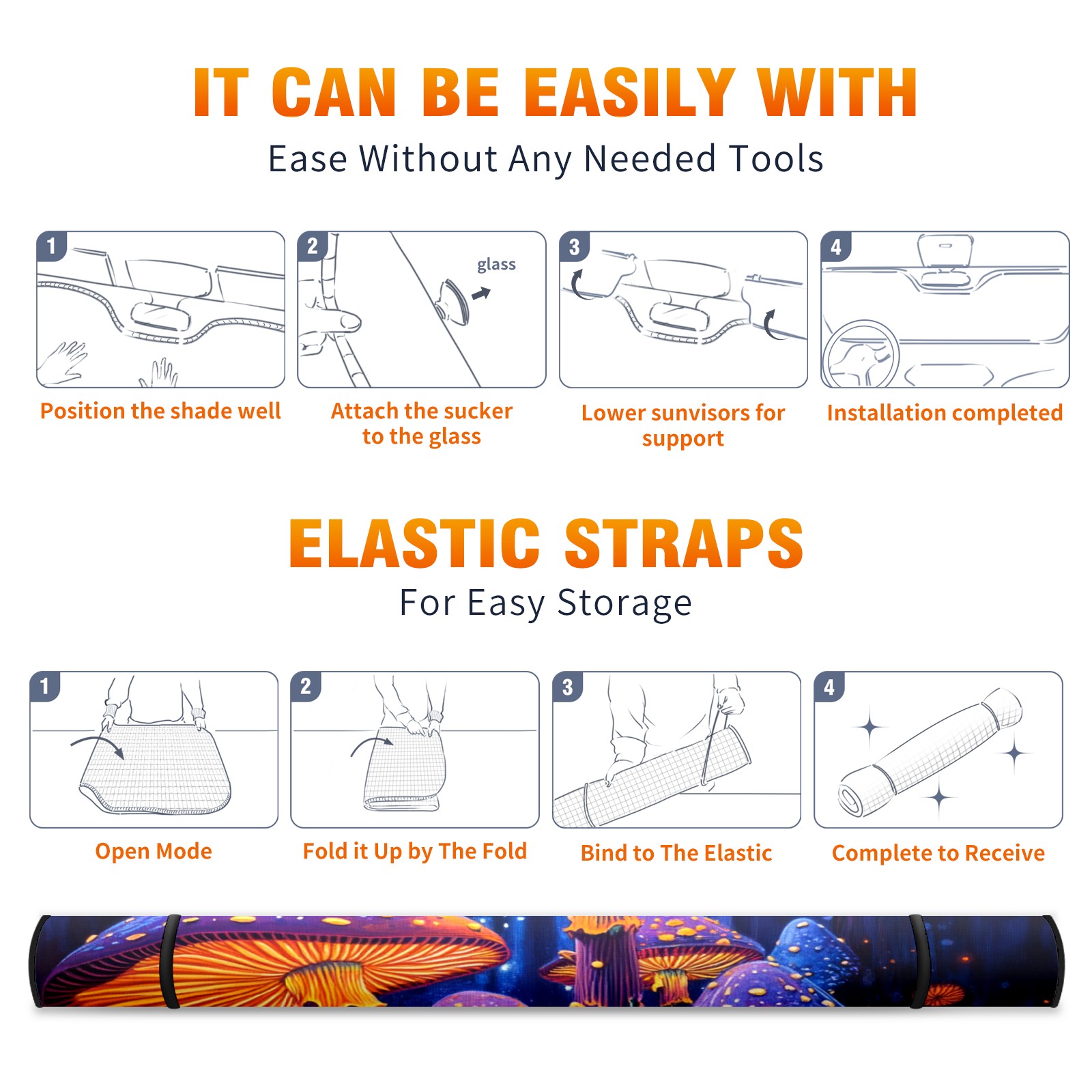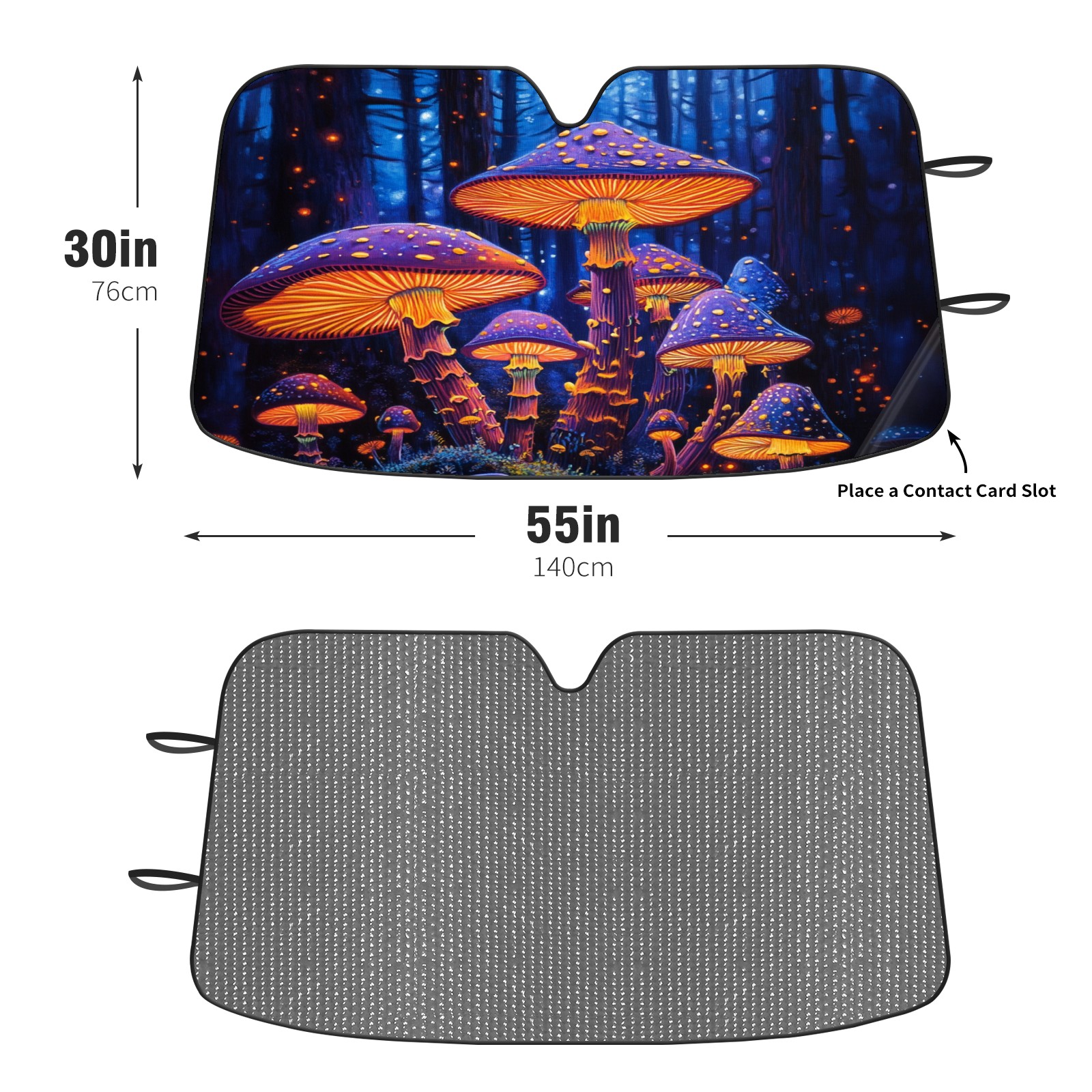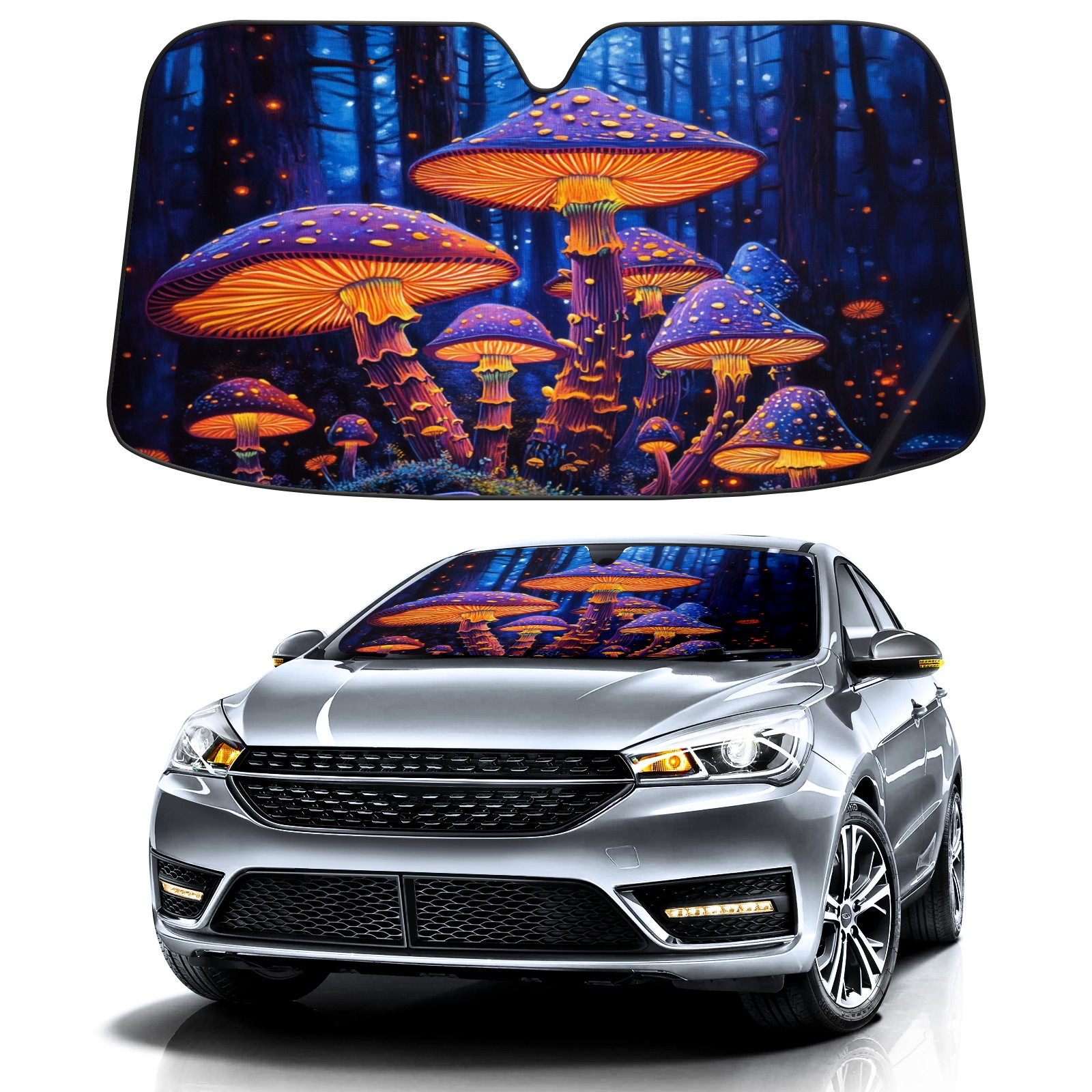 SAVHOQIR Car Sun Shade Foldable Colorful Forest Neon Mushrooms Windshield Sun Shade 55''x30'' Vehicle Front Window Shade Protector for SUV Truck Car Sun Visor Blocks UV Rays