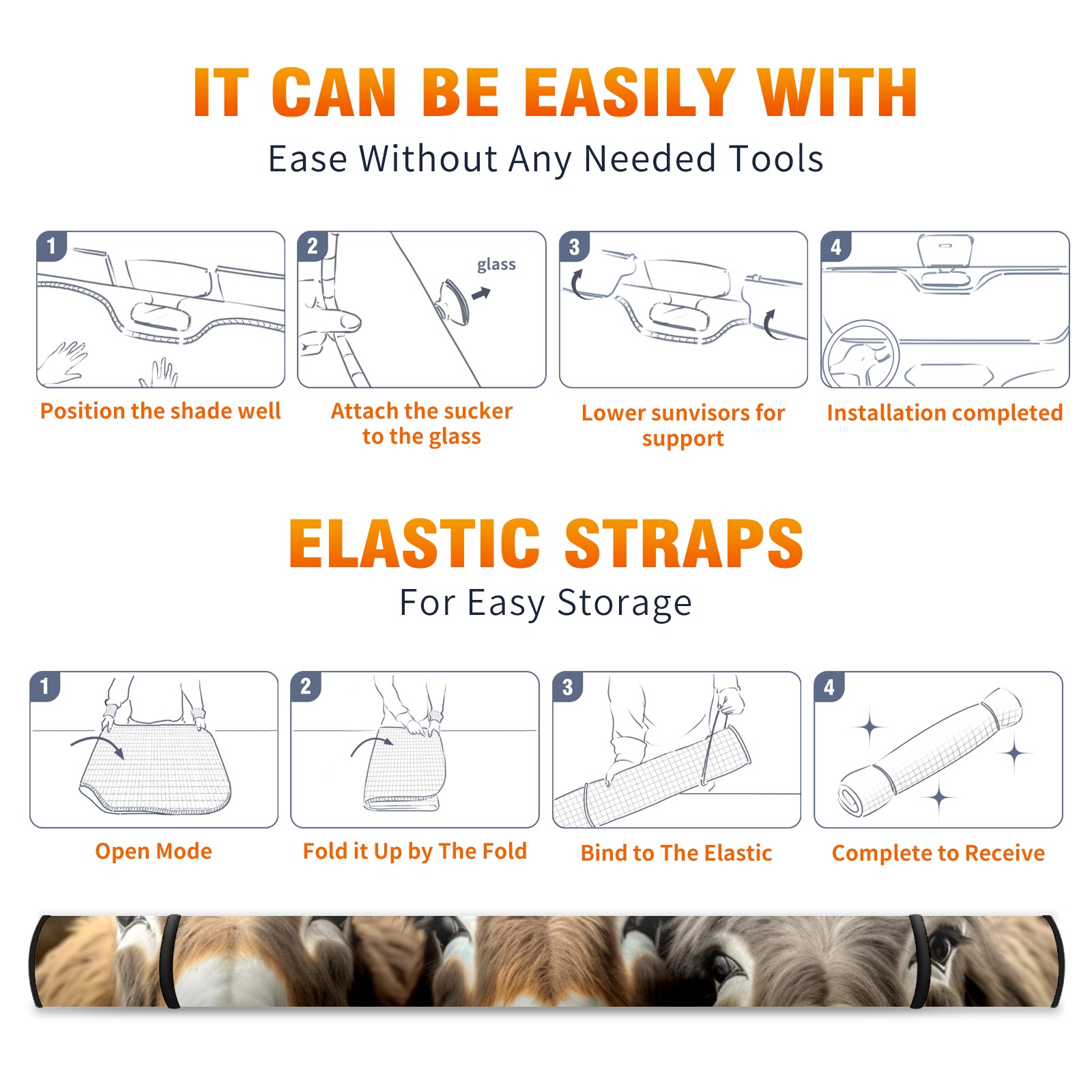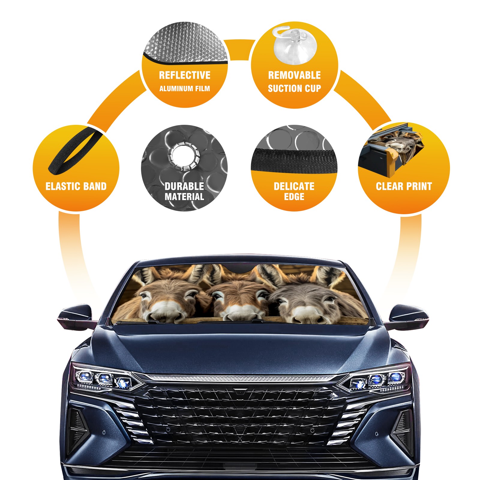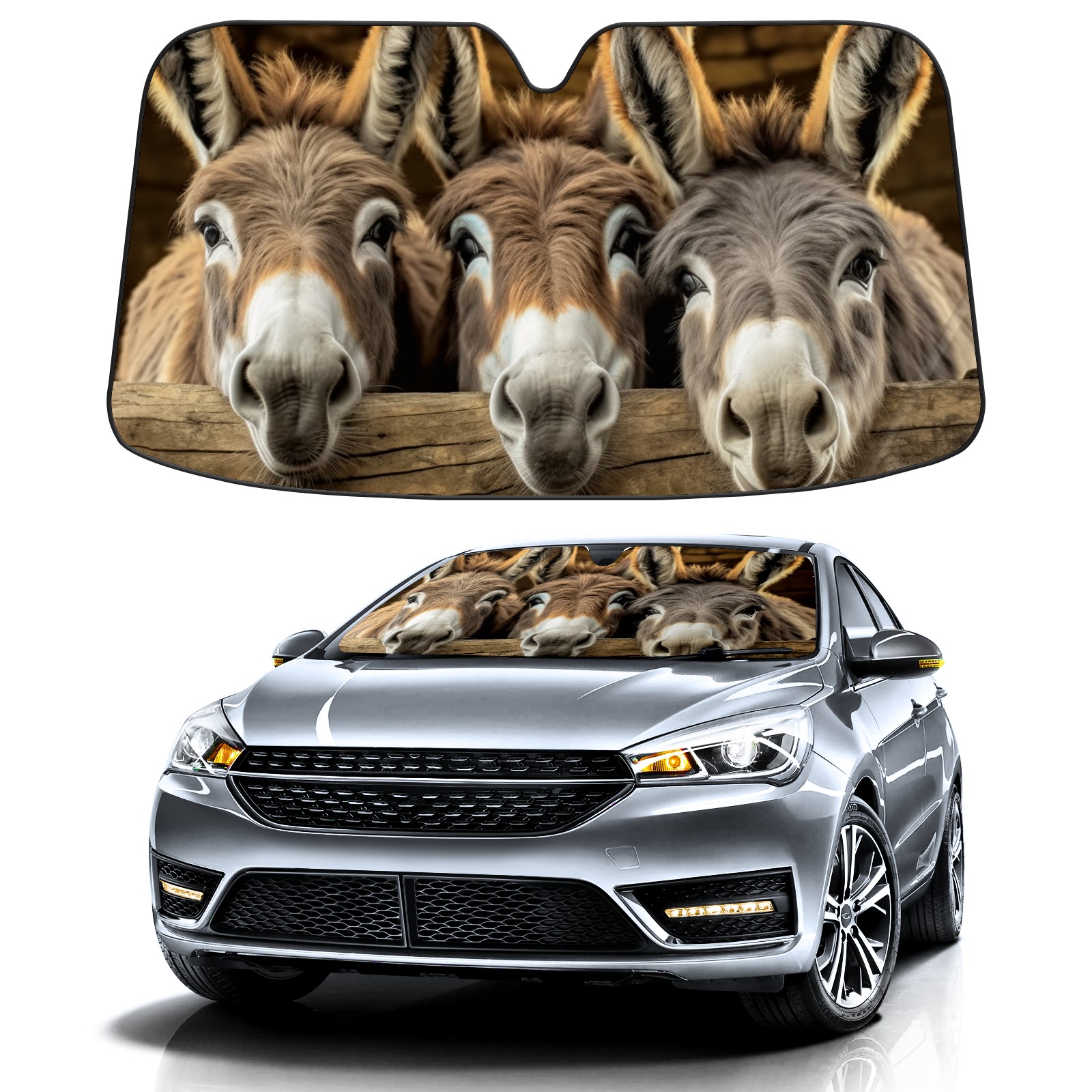 SAVHOQIR Car Sun Shade Foldable Donkeys Windshield Sun Shade 55''x30'' Vehicle Front Window Shade Protector for SUV Truck Car Sun Visor Blocks UV Rays
