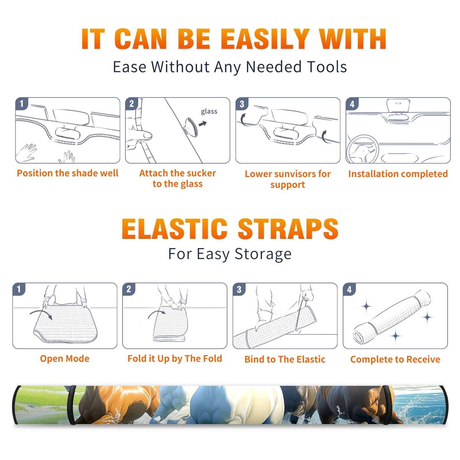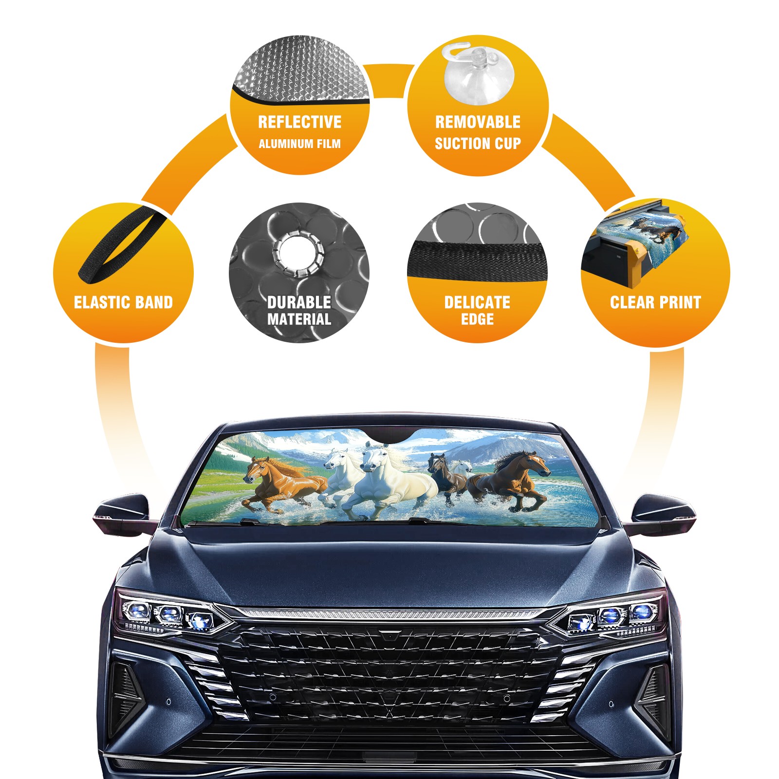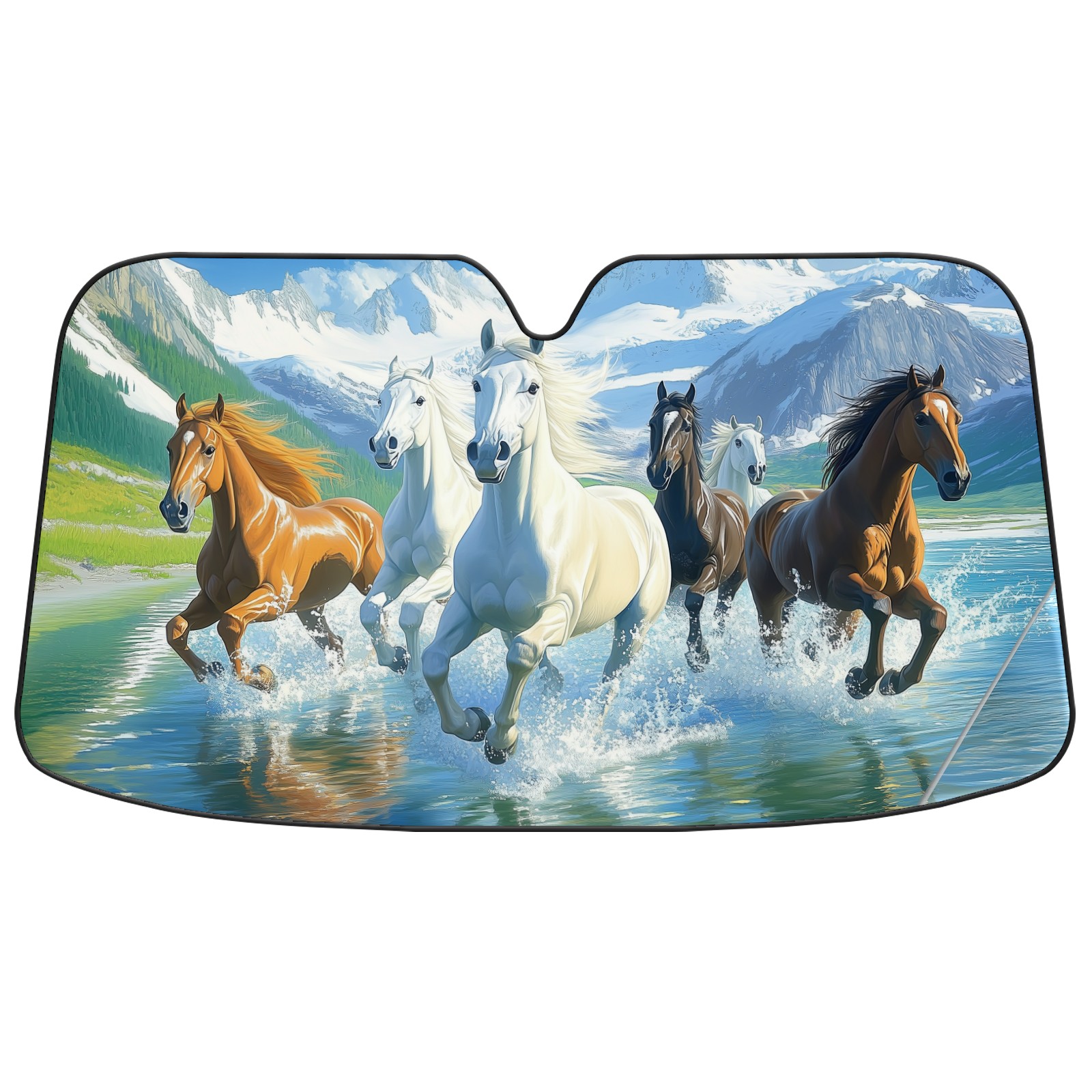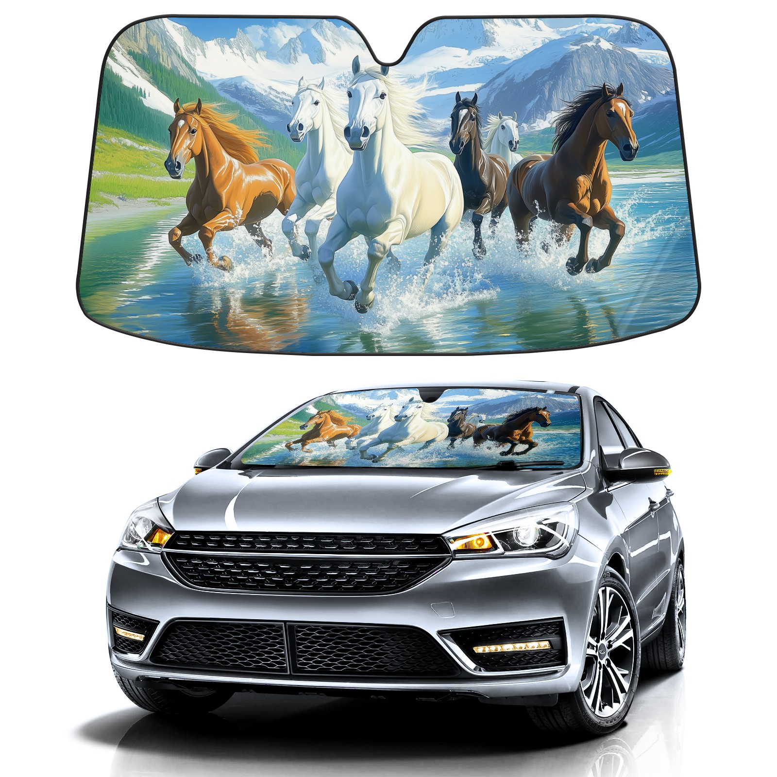 SAVHOQIR Car Sun Shade Foldable Horses Running Windshield Sun Shade 55''x30'' Vehicle Front Window Shade Protector for SUV Truck Car Sun Visor Blocks UV Rays