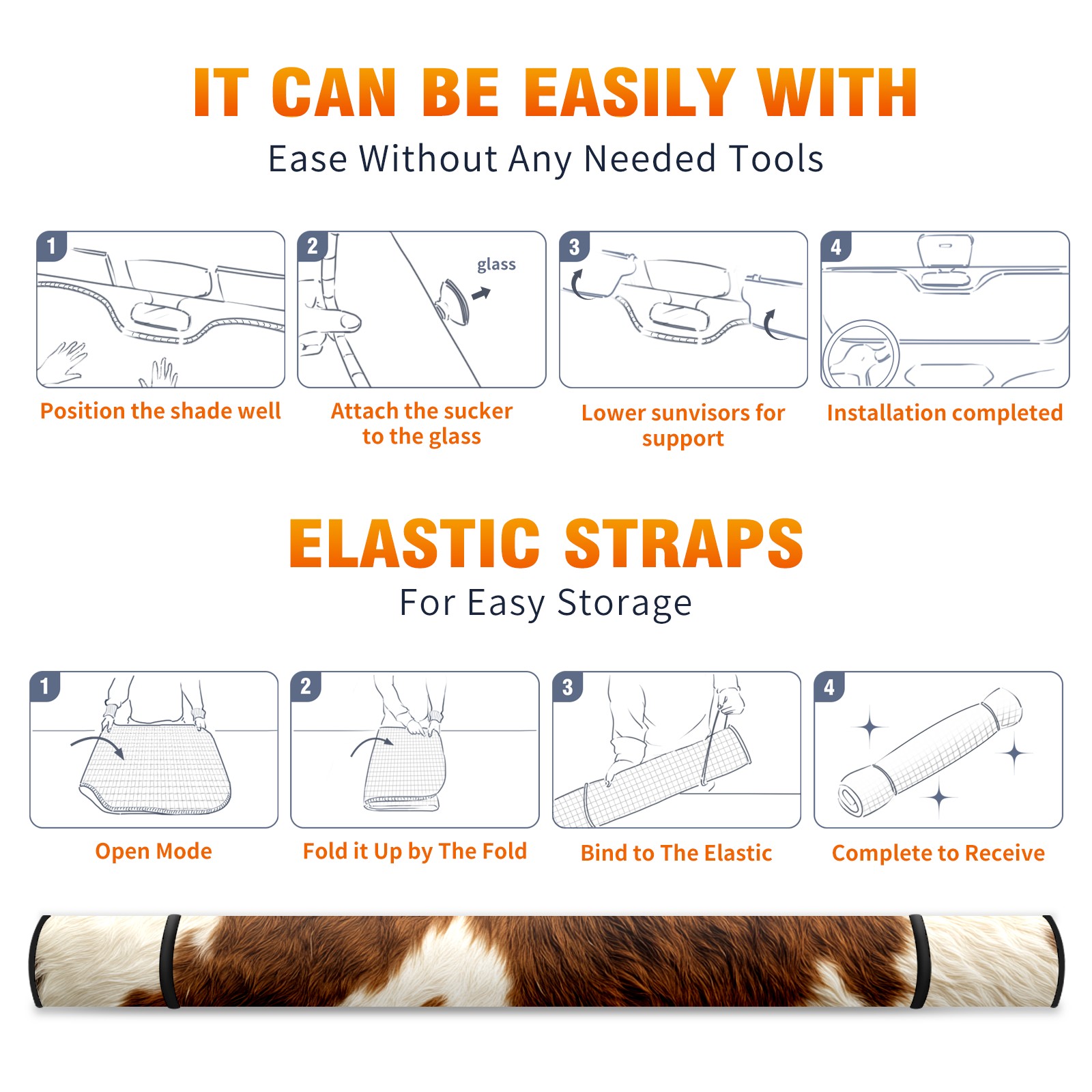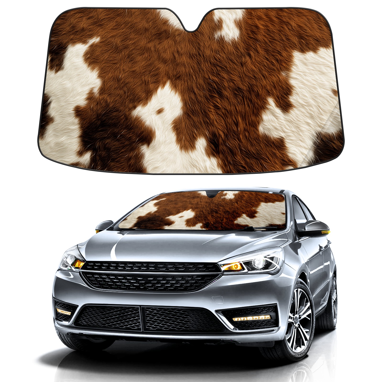SAVHOQIR Car Sun Shade Foldable Western Cowhide Print Windshield Sun Shade 55''x30'' Vehicle Front Window Shade Protector for SUV Truck Car Sun Visor Blocks UV Rays