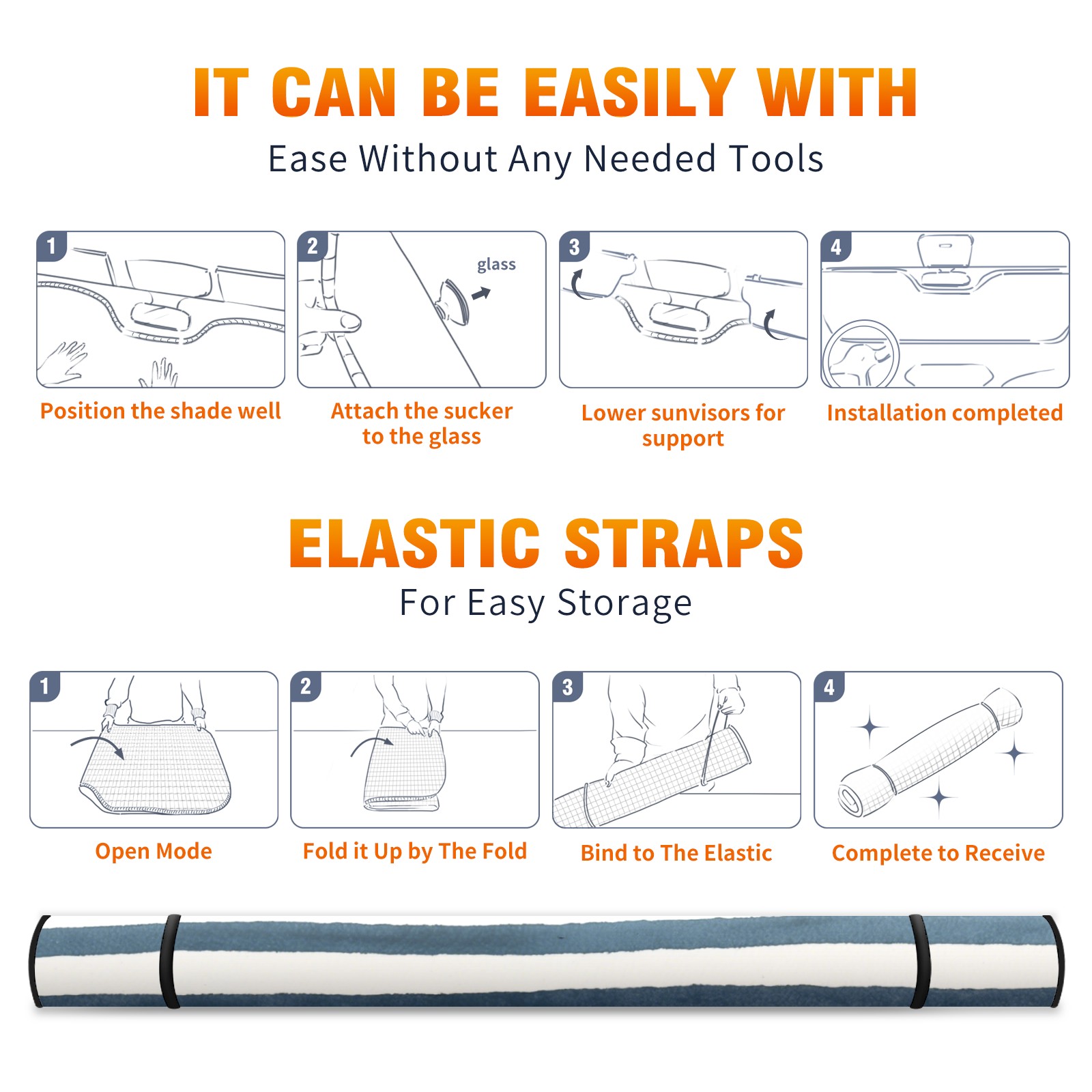 • <p><b>Foldable Premium Car Windshield Sunshade is your great solution to reduce your car’s interior temperature dramatically! This is definitely a must-have item for your summer travel!</b></p><p><b>【Precision Fit, Stylish Protection】</b></p><p>55"x30" (140x76cm) universal size with 3cm flexible margins fits curved windshields of most sedans/SUVs.</p><p><b>【Blocking Uv Rays &amp; Heat Insulation】</b></p><p>Our vehicle sunshade provides effective UV, sun, and summer heat protection, preventing leather fading and plastic cracking to keep your car interior pristine.</p><p><b>【Zero-Mark Installation &amp; Space-Saving】</b></p><p>Equipped with dual scratch-free silicone suction cups + adjustable straps: Medical-grade silicone cups hold firmly yet remove cleanly. Folds to A3 size (42x30cm x &lt;2cm thick), tucks discreetly into glove compartments or door pockets.&nbsp;</p>