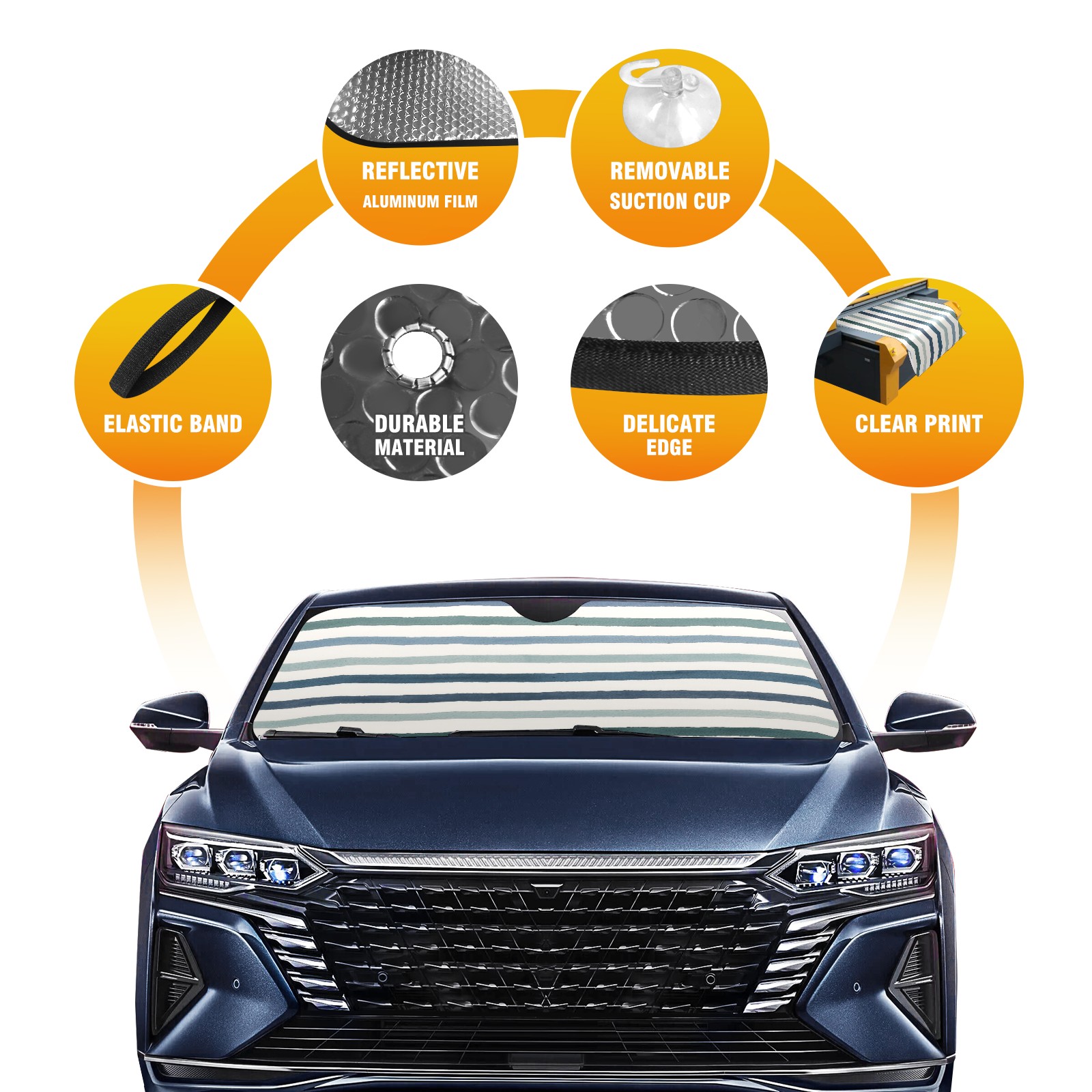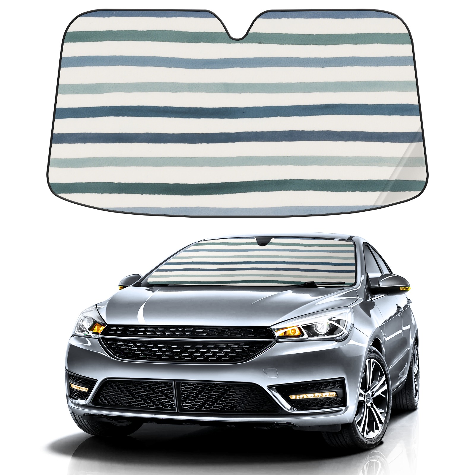 Blue Horizontal Stripe Car Sun Shade UV Protection Foldable Sunshade for Windshield Heat Insulation Portable Sun Shield for Car Interior Protection Automotive Window Protector