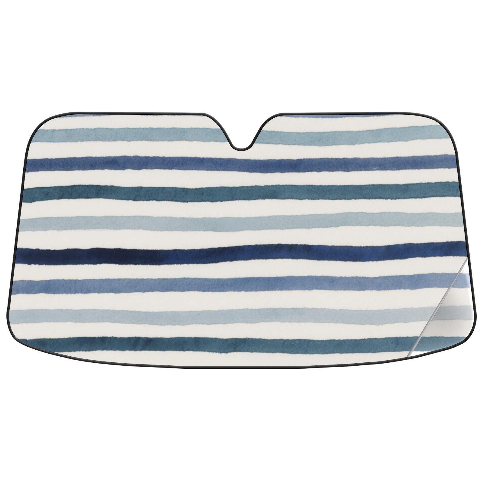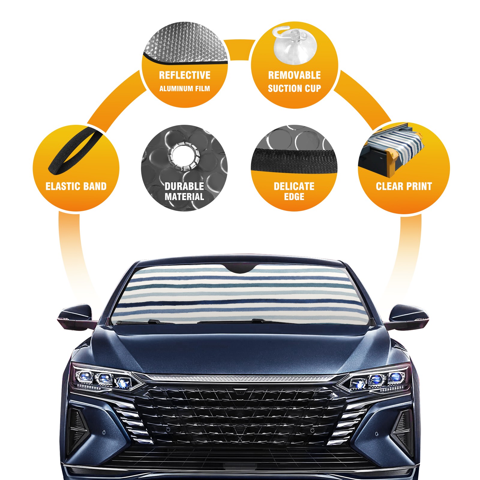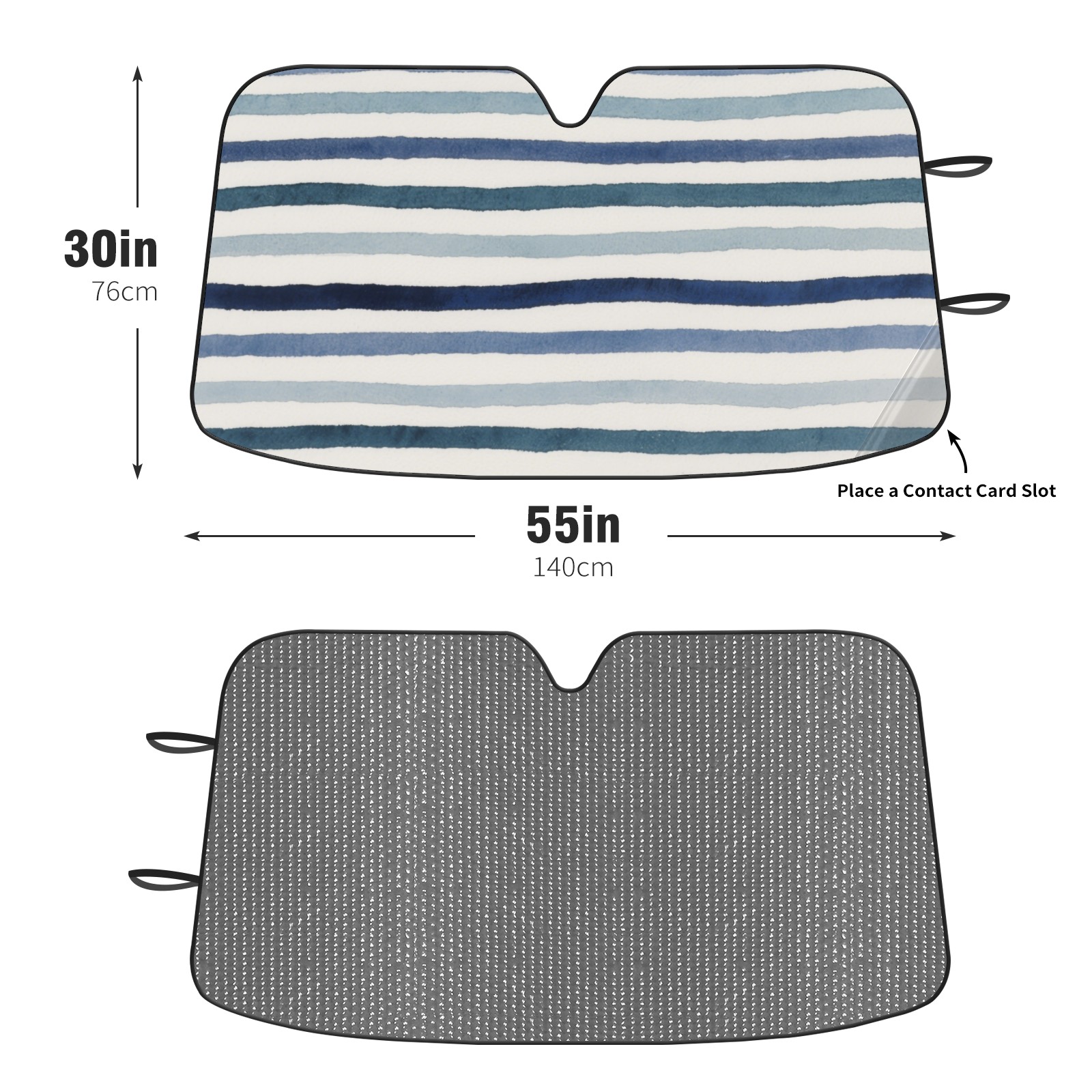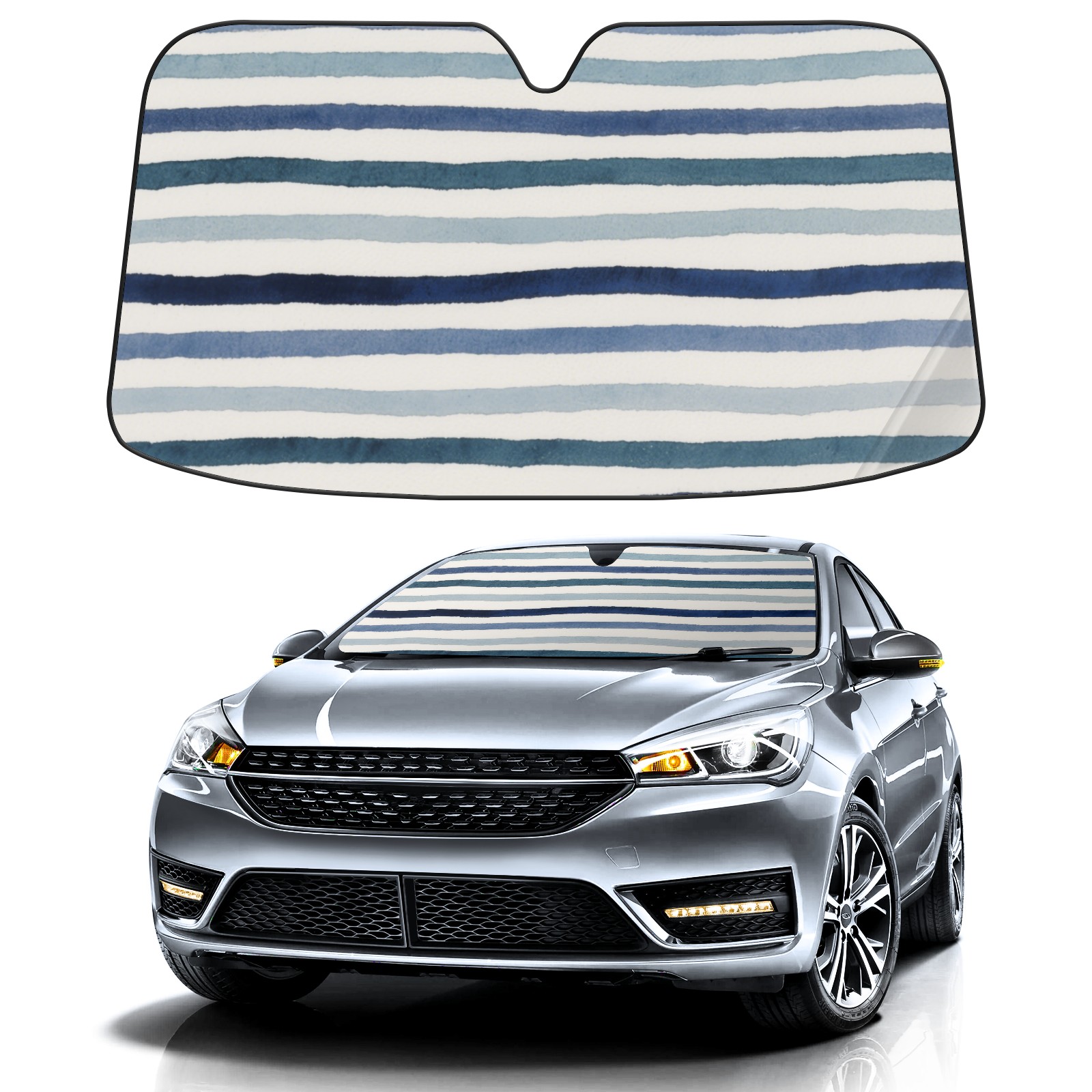 Blue Green Horizontal Stripe Car Sun Shade UV Protection Foldable Sunshade for Windshield Heat Insulation Portable Sun Shield for Car Interior Protection Automotive Window Protector