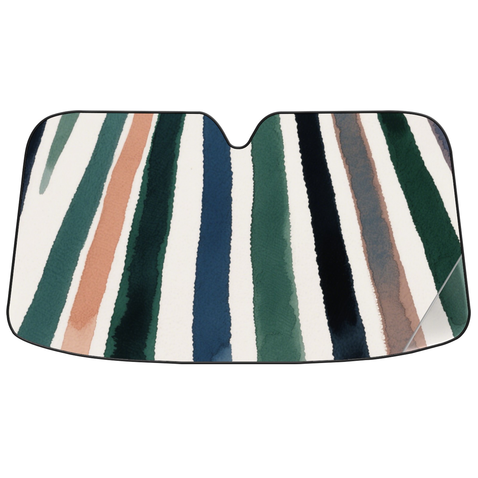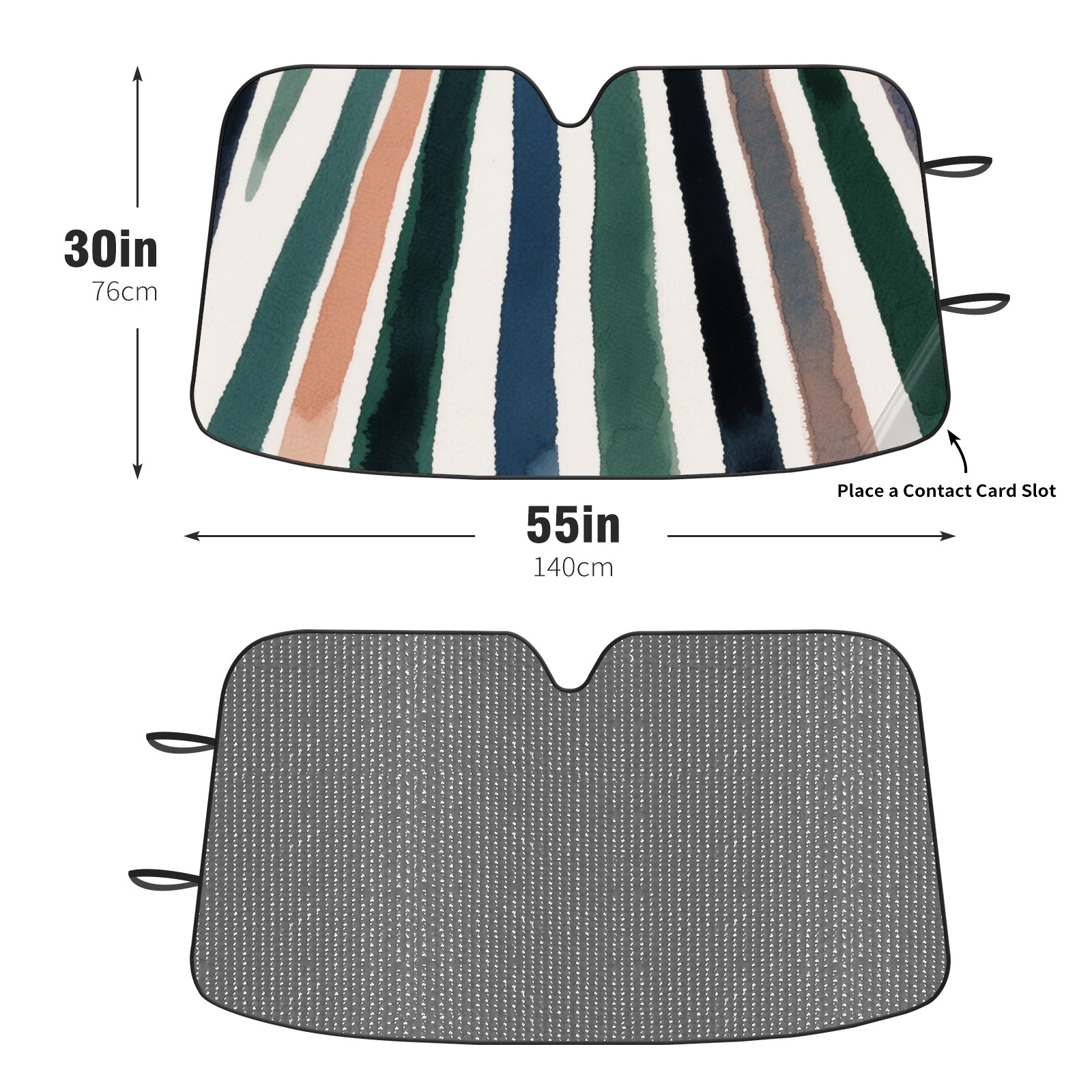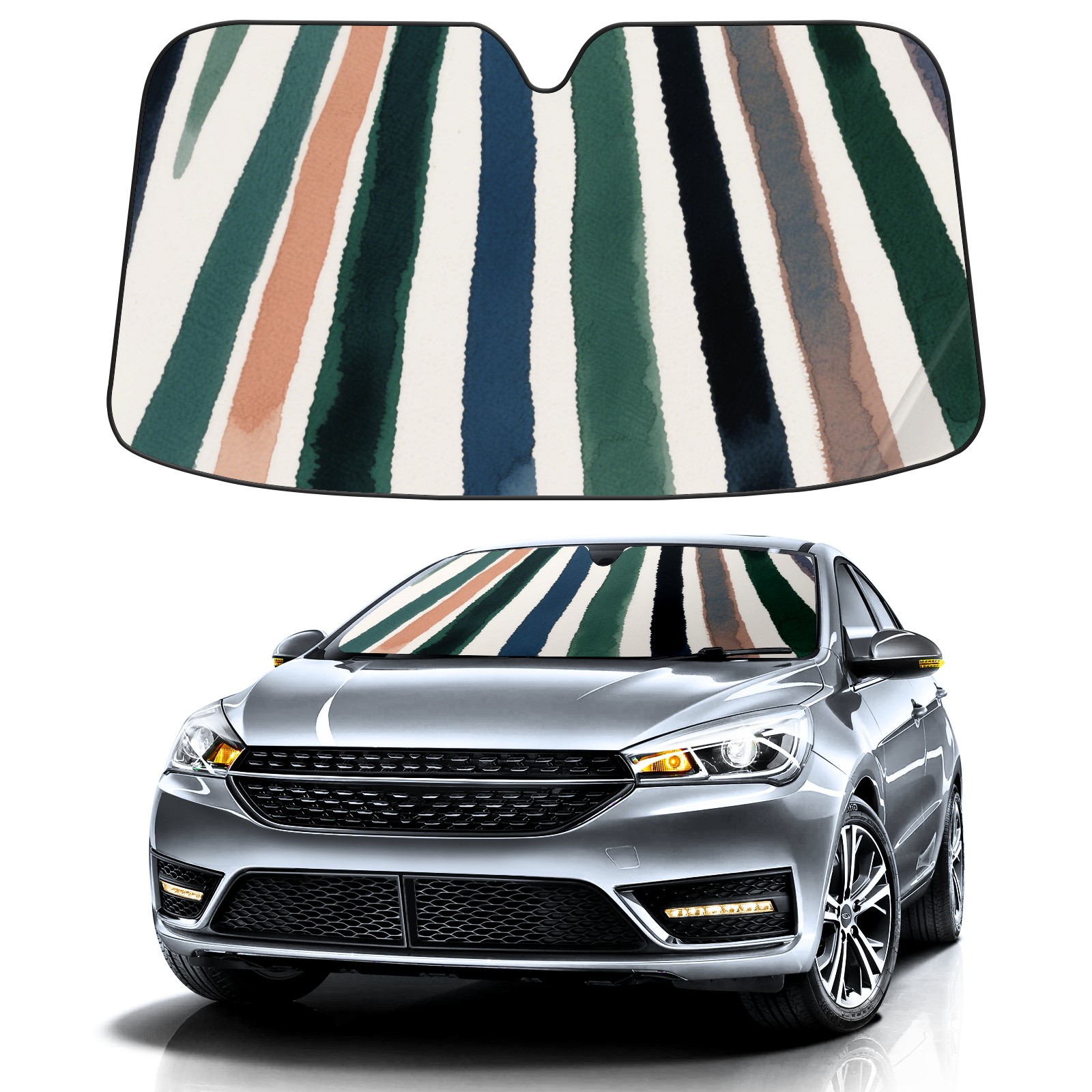 Deep Blue Green Stripes Car Sun Shade UV Protection Foldable Sunshade for Windshield Heat Insulation Portable Sun Shield for Car Interior Protection Automotive Window Protector