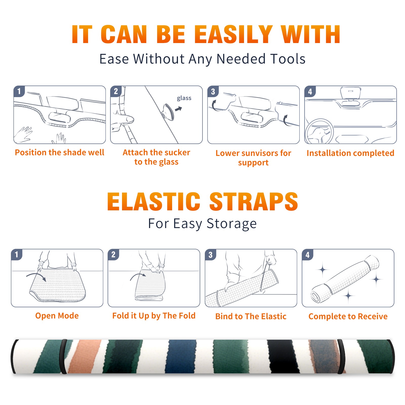 • <p><b>Foldable Premium Car Windshield Sunshade is your great solution to reduce your car’s interior temperature dramatically! This is definitely a must-have item for your summer travel!</b></p><p><b>【Precision Fit, Stylish Protection】</b></p><p>55"x30" (140x76cm) universal size with 3cm flexible margins fits curved windshields of most sedans/SUVs.</p><p><b>【Blocking Uv Rays &amp; Heat Insulation】</b></p><p>Our vehicle sunshade provides effective UV, sun, and summer heat protection, preventing leather fading and plastic cracking to keep your car interior pristine.</p><p><b>【Zero-Mark Installation &amp; Space-Saving】</b></p><p>Equipped with dual scratch-free silicone suction cups + adjustable straps: Medical-grade silicone cups hold firmly yet remove cleanly. Folds to A3 size (42x30cm x &lt;2cm thick), tucks discreetly into glove compartments or door pockets.&nbsp;</p>